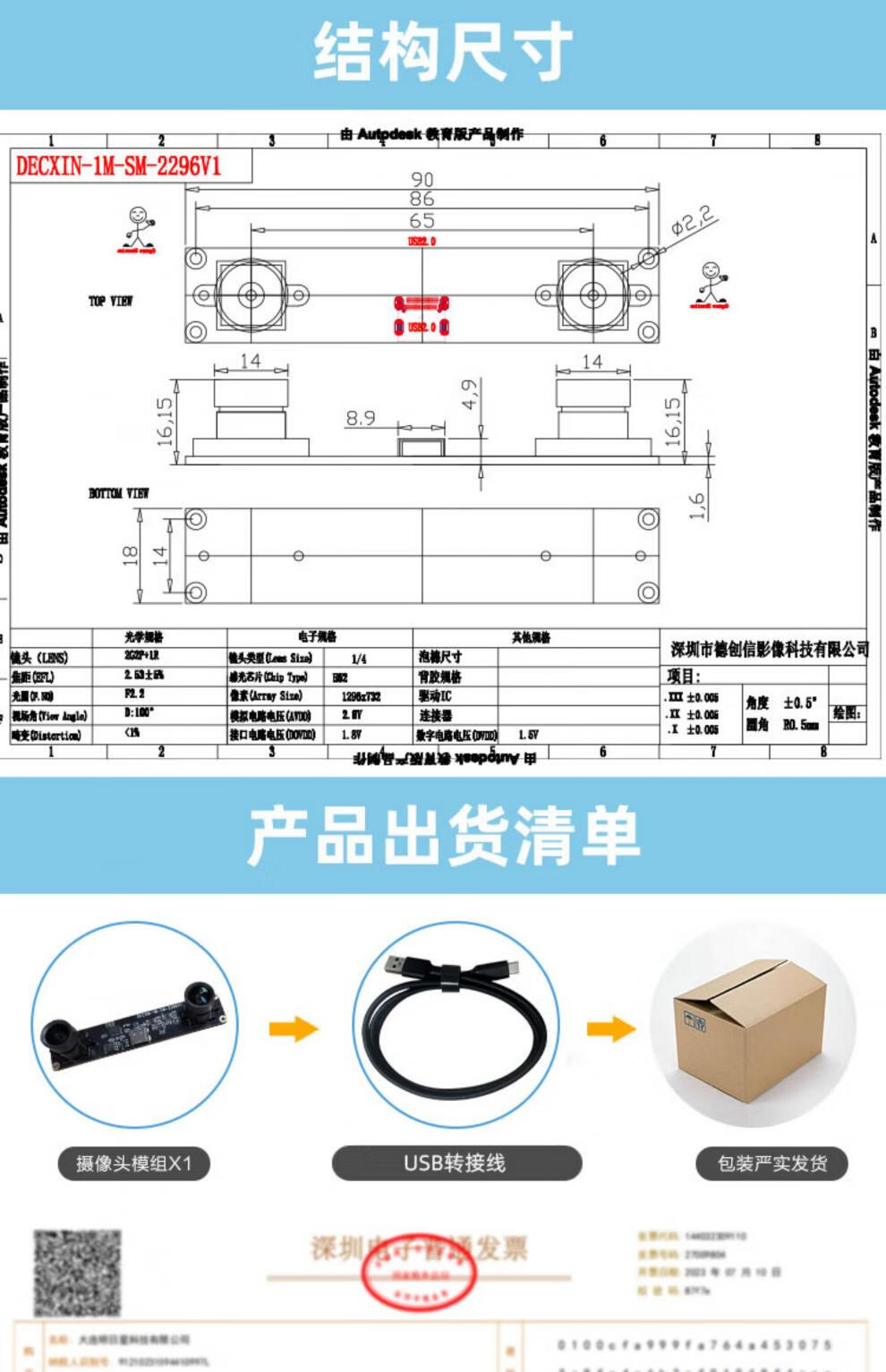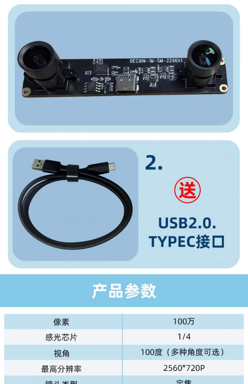 1 million 720P binocular camera with frame synchronization 3D reconstruction depth detection VR ranging USB camera module 3.6mm lens-with bracket