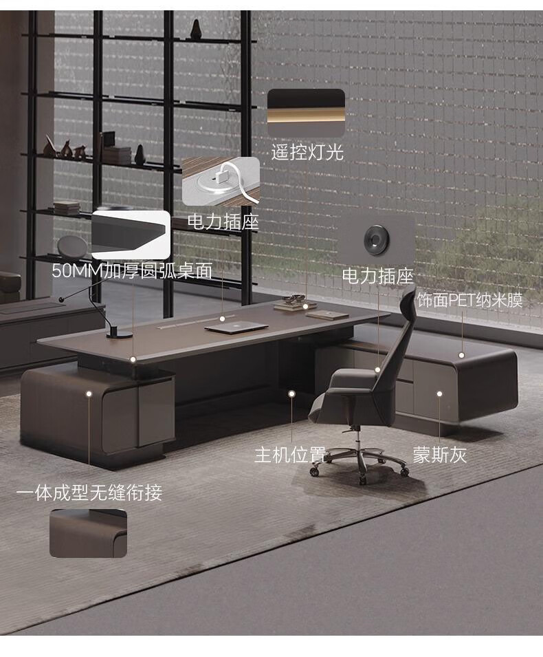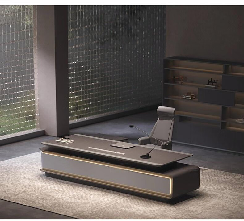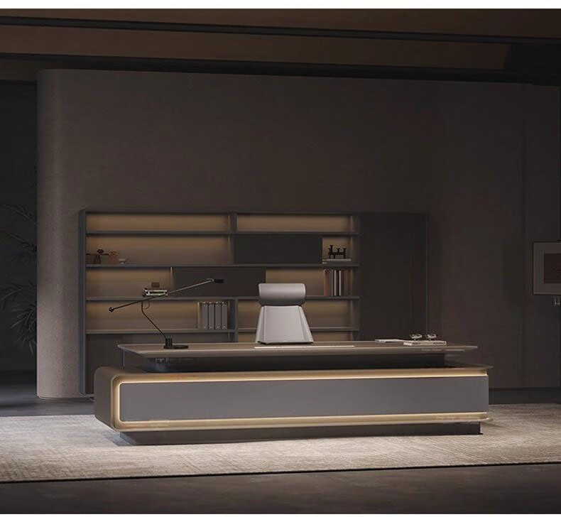 Aosenming luxury president desk high-end boss desk office desk chair chairman office furniture with LED light executive desk 2.4 meters boss desk