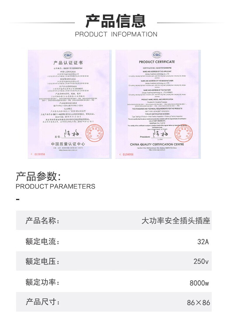 New energy vehicle charging special socket 32A Sihuasheng coupler 7KW high power bull charging gun plug socket one (with back cover)