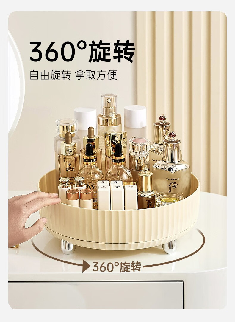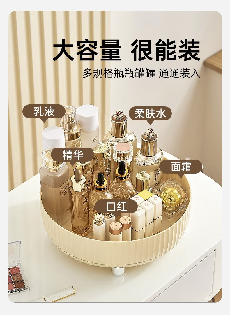 Cosmetic storage box household large-capacity rotatable desktop skin care products eye shadow lipstick plastic storage rack A cream white large size