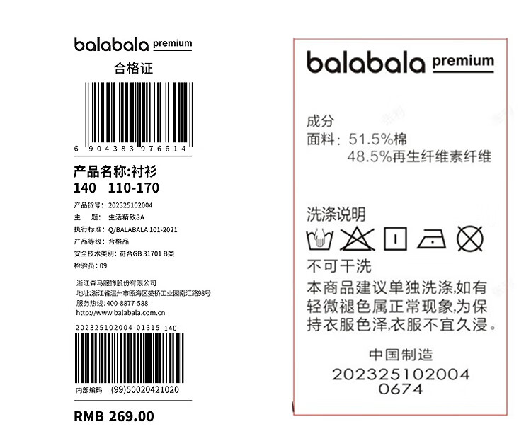 Balabala girls' shirt children's long-sleeved autumn new Chinese style Ruolai IP mall same style pink color 01315 130