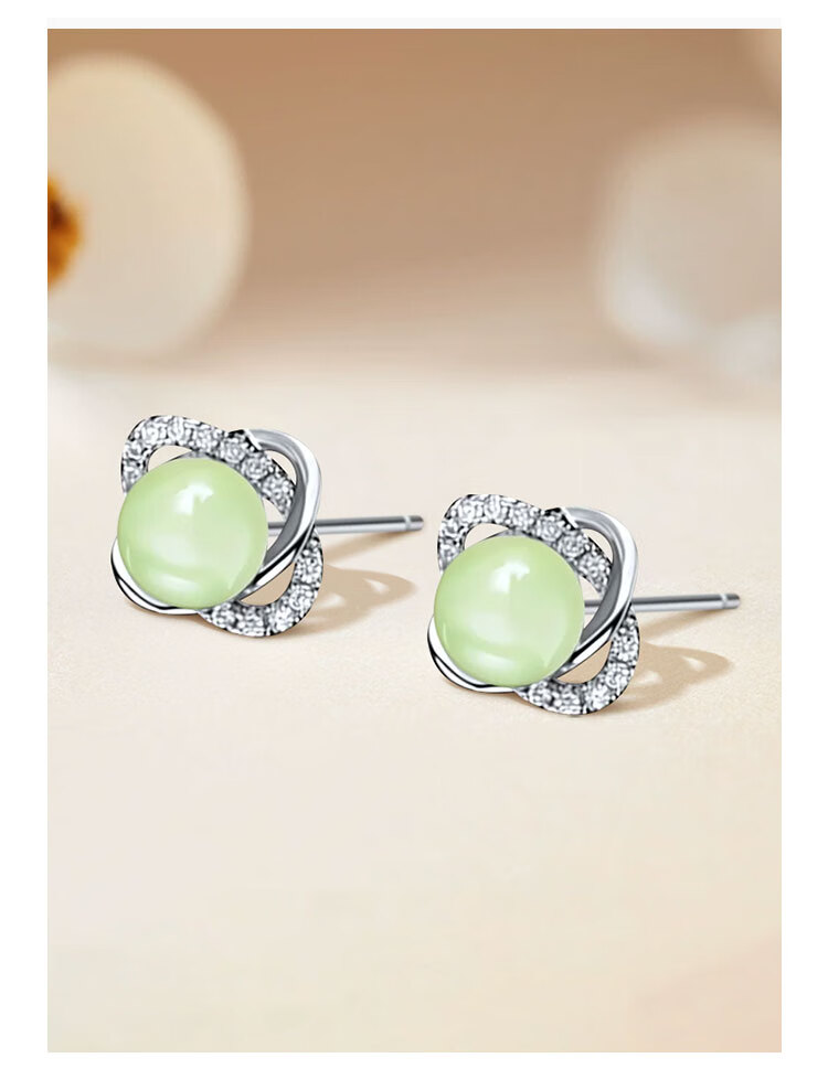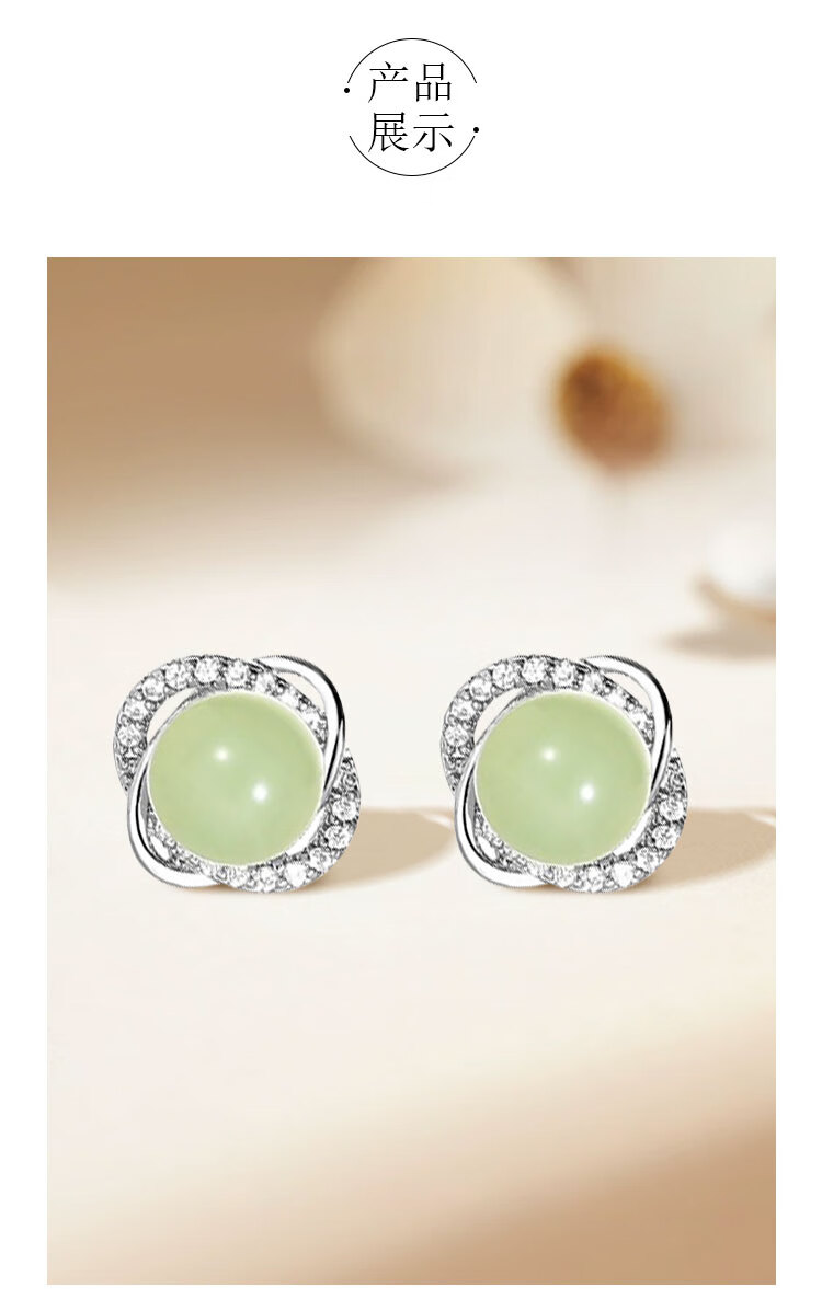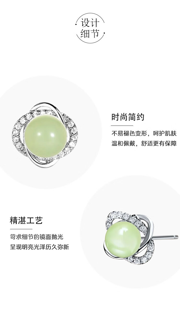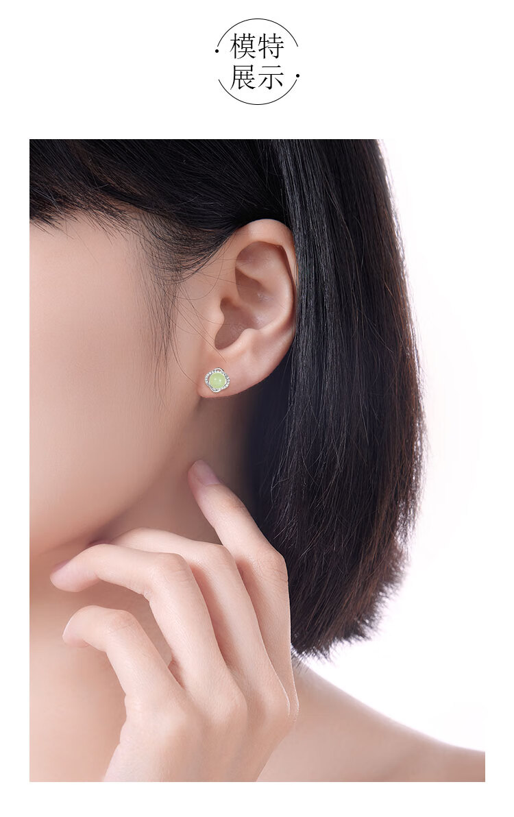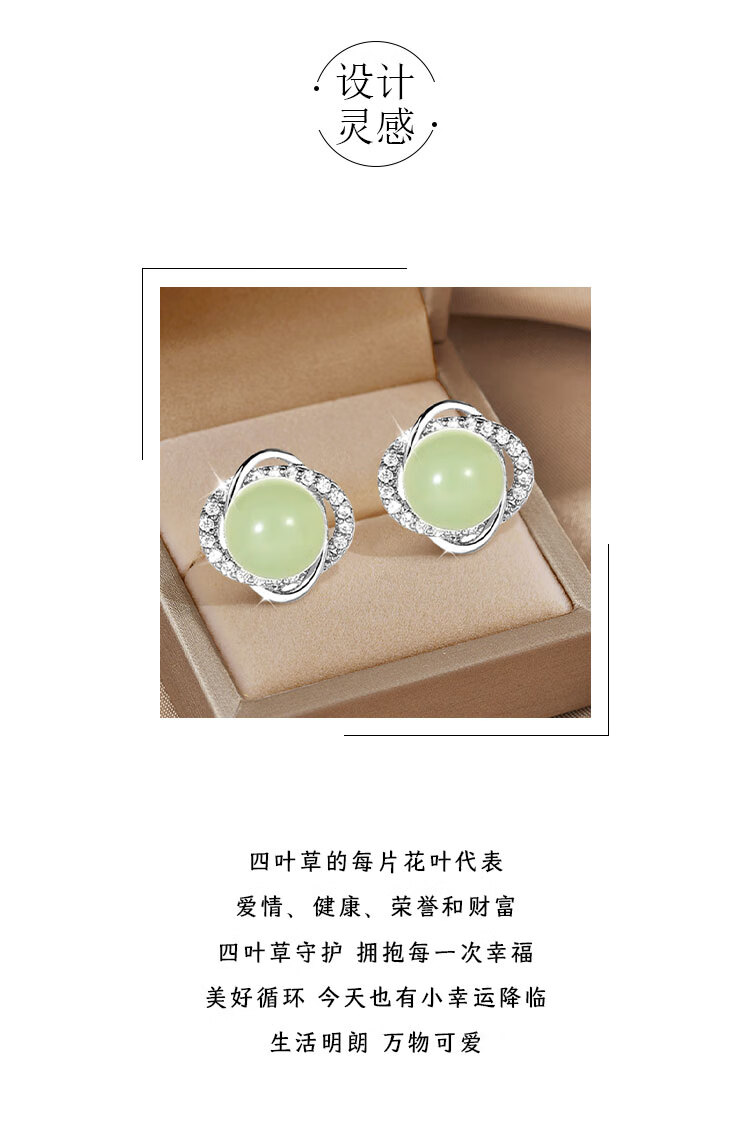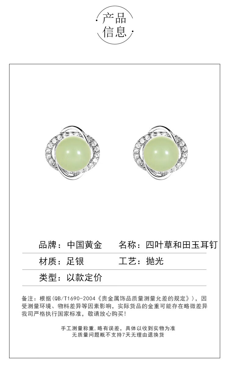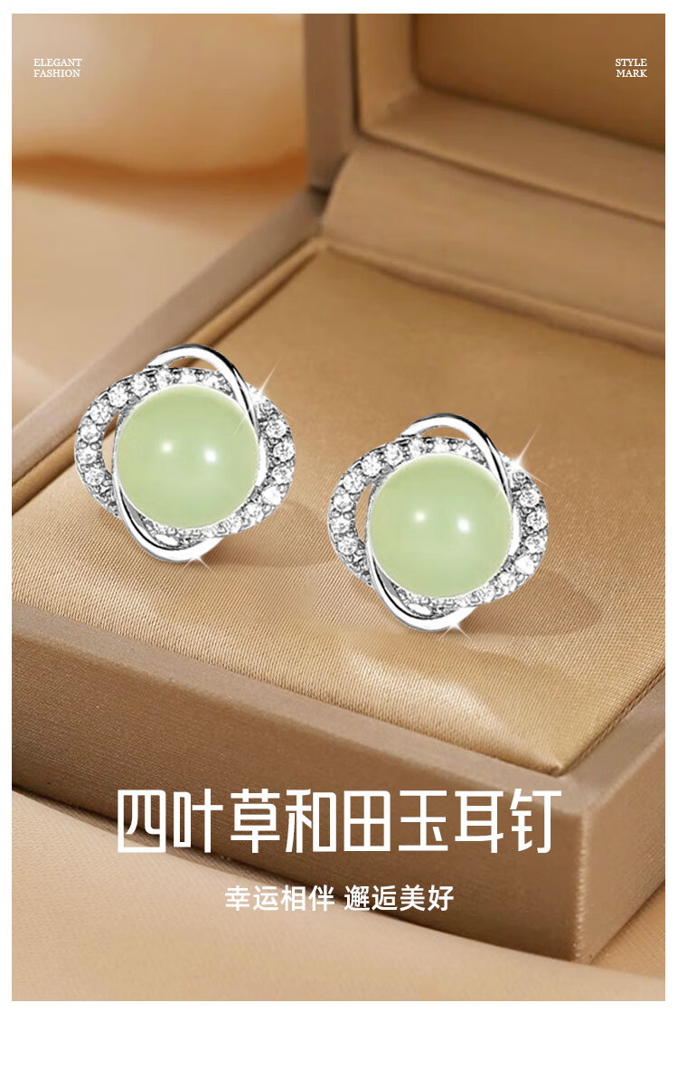CHINA GOLD pure silver earrings for women, light luxury and versatile four-leaf clover and field jade earrings, Valentine's Day birthday gifts for girlfriends and lovers, four-leaf clover and field jade earrings
