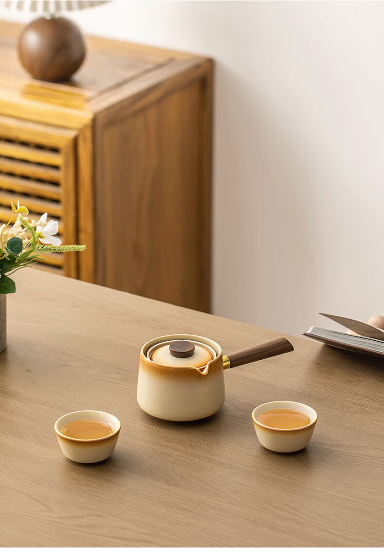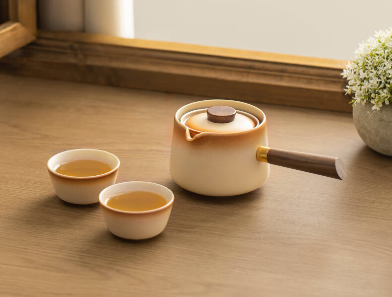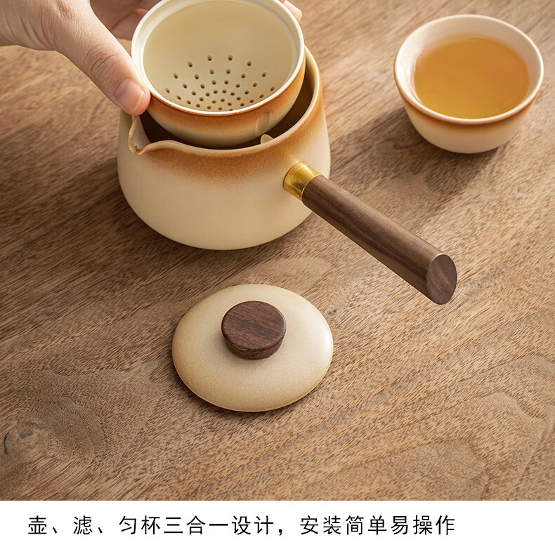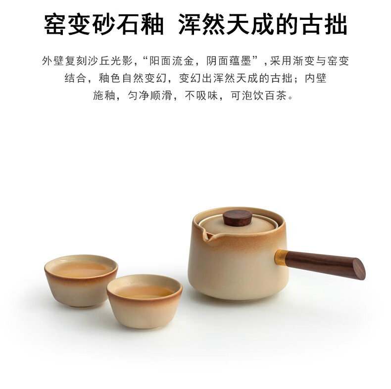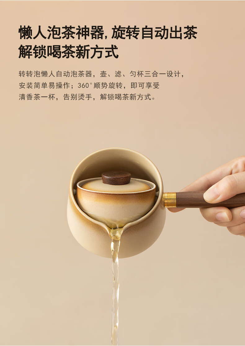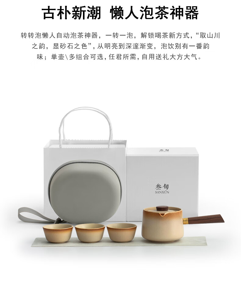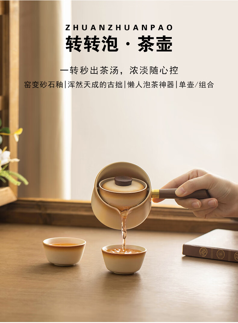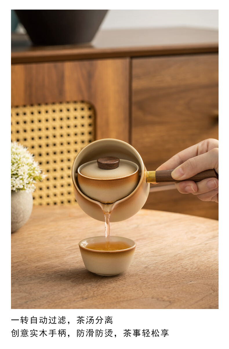 30-year-old Dunhuang sandstone glaze automatic teapot quick cup ceramic household Chinese style lazy travel tea set (sandstone glaze) rotary teapot + 2 tea cups