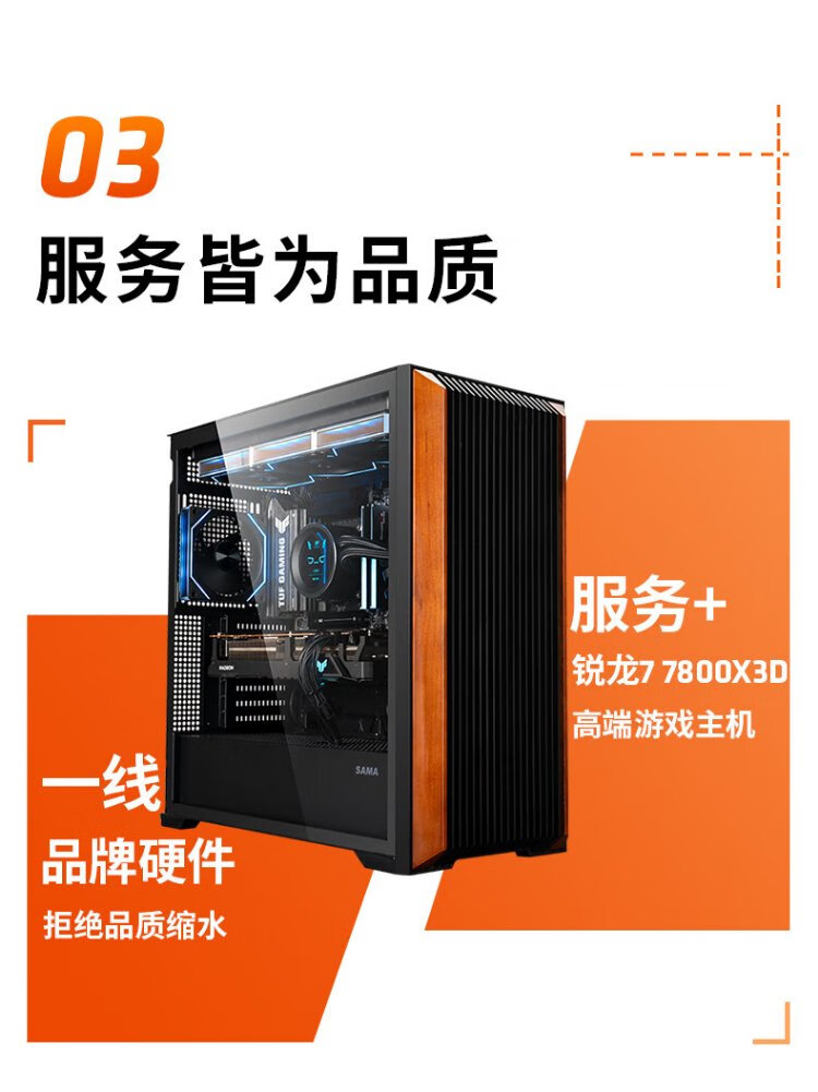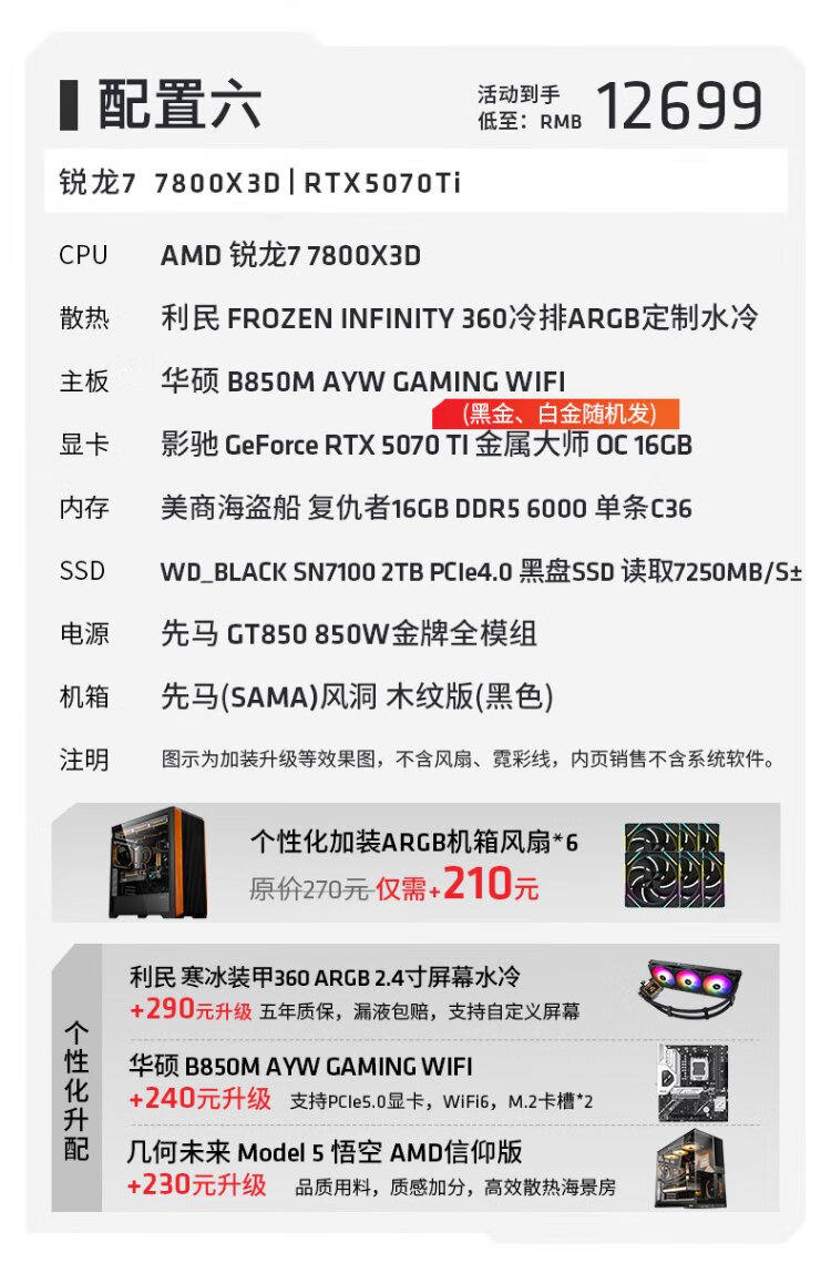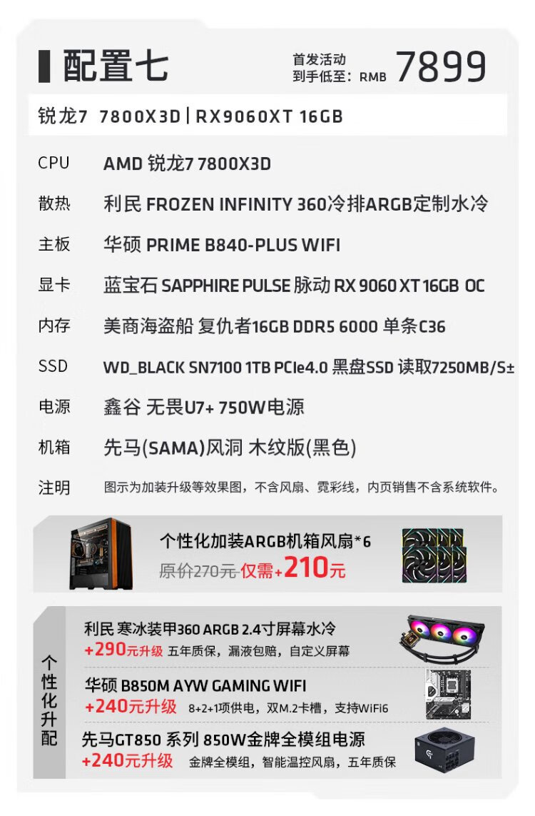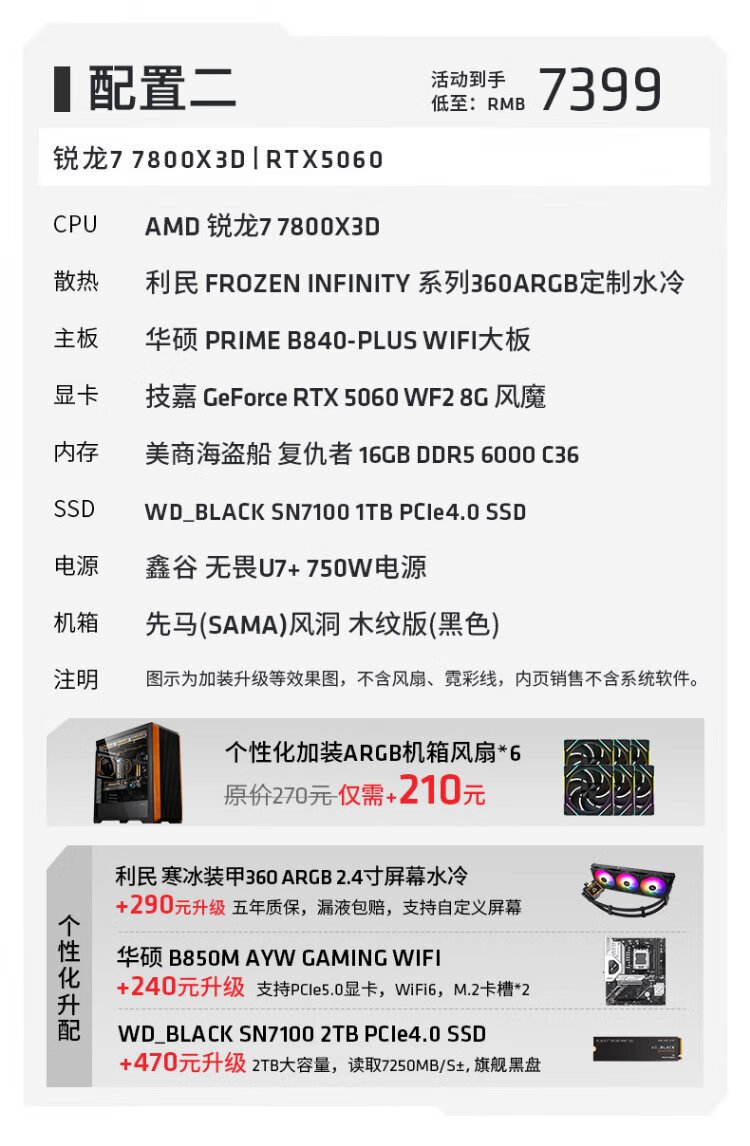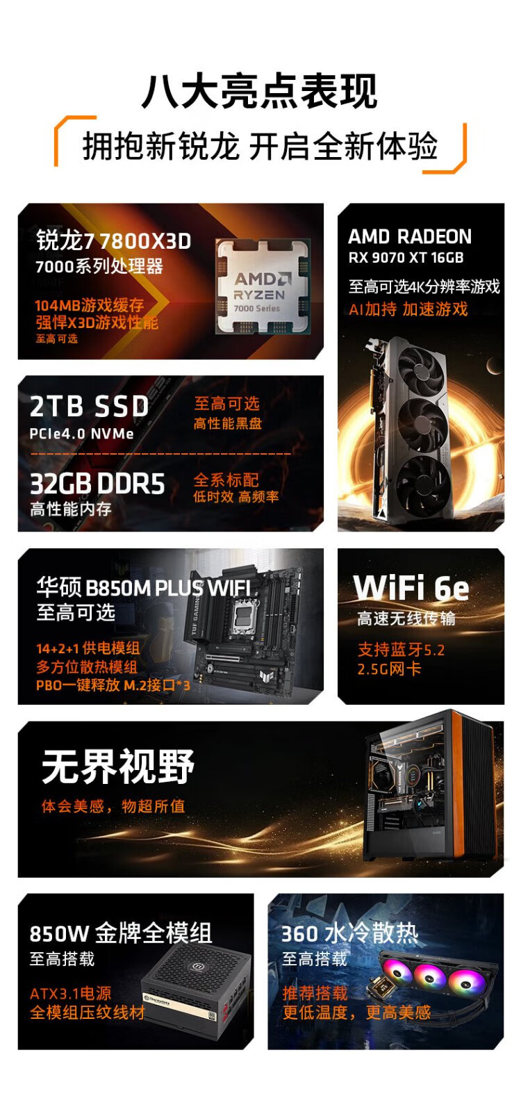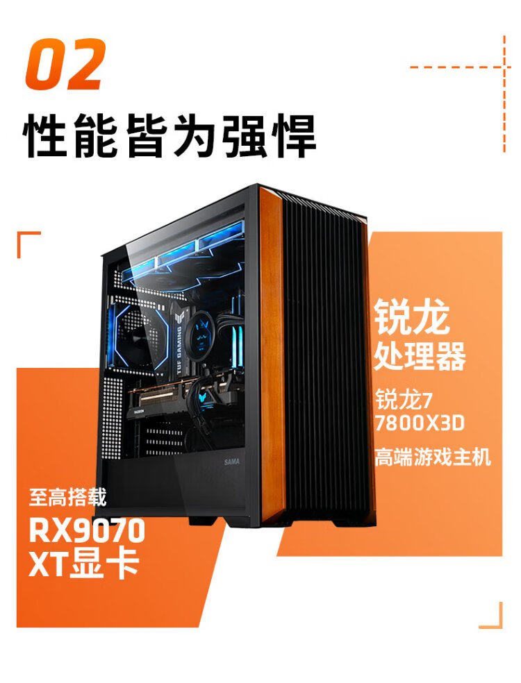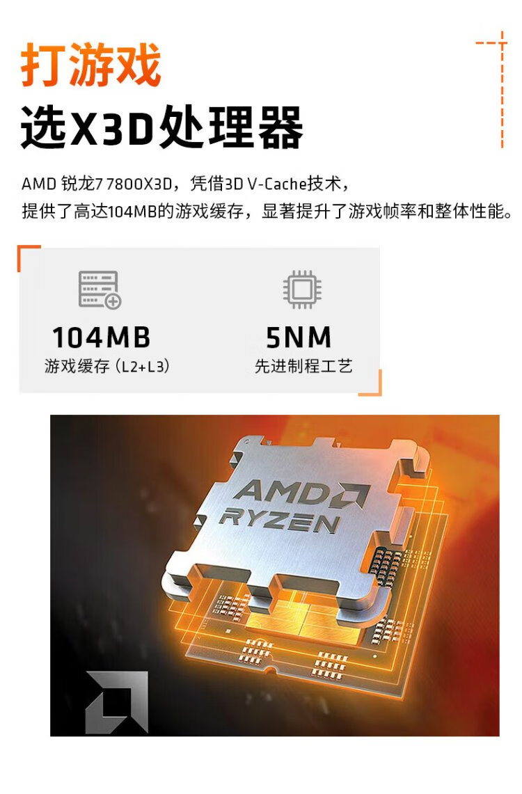 AMD Ryzen 7 7800X3D host RTX5060Ti RX9070XT computer host AI computing rendering computer E-sports live game desktop host DIY assembly machine R7 7800X3D+RTX5060丨Package 2