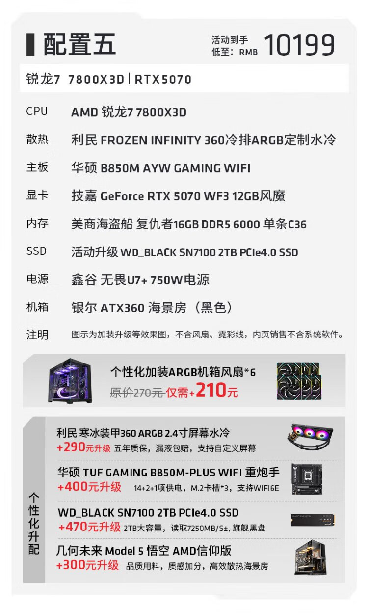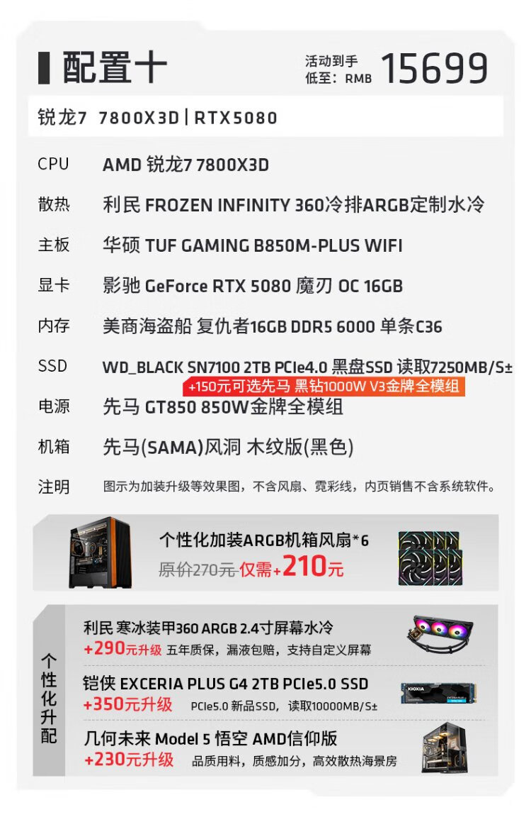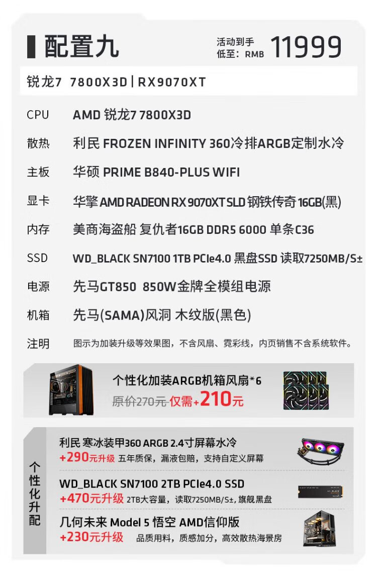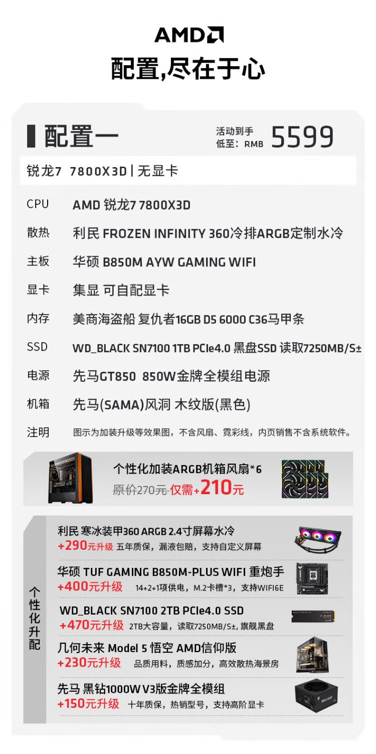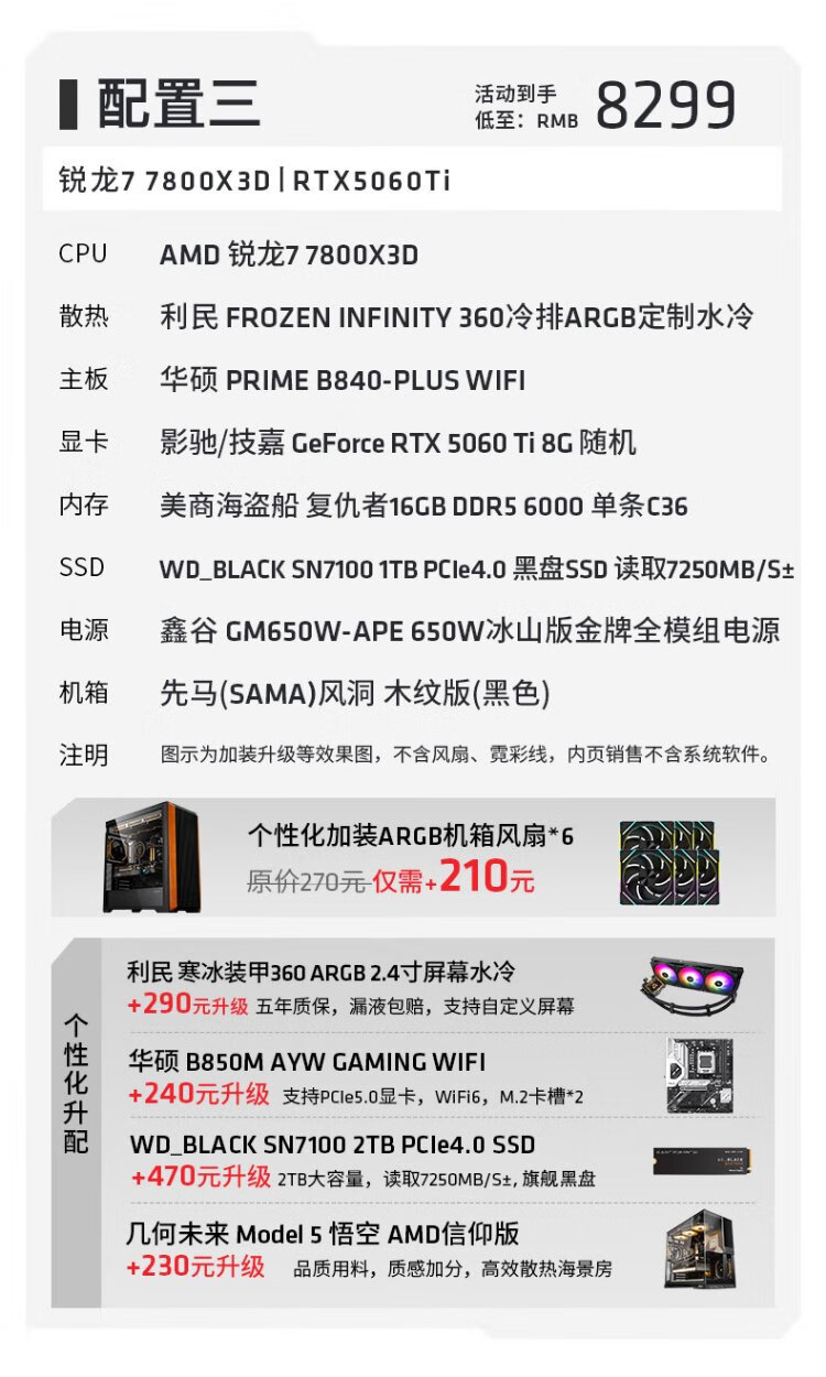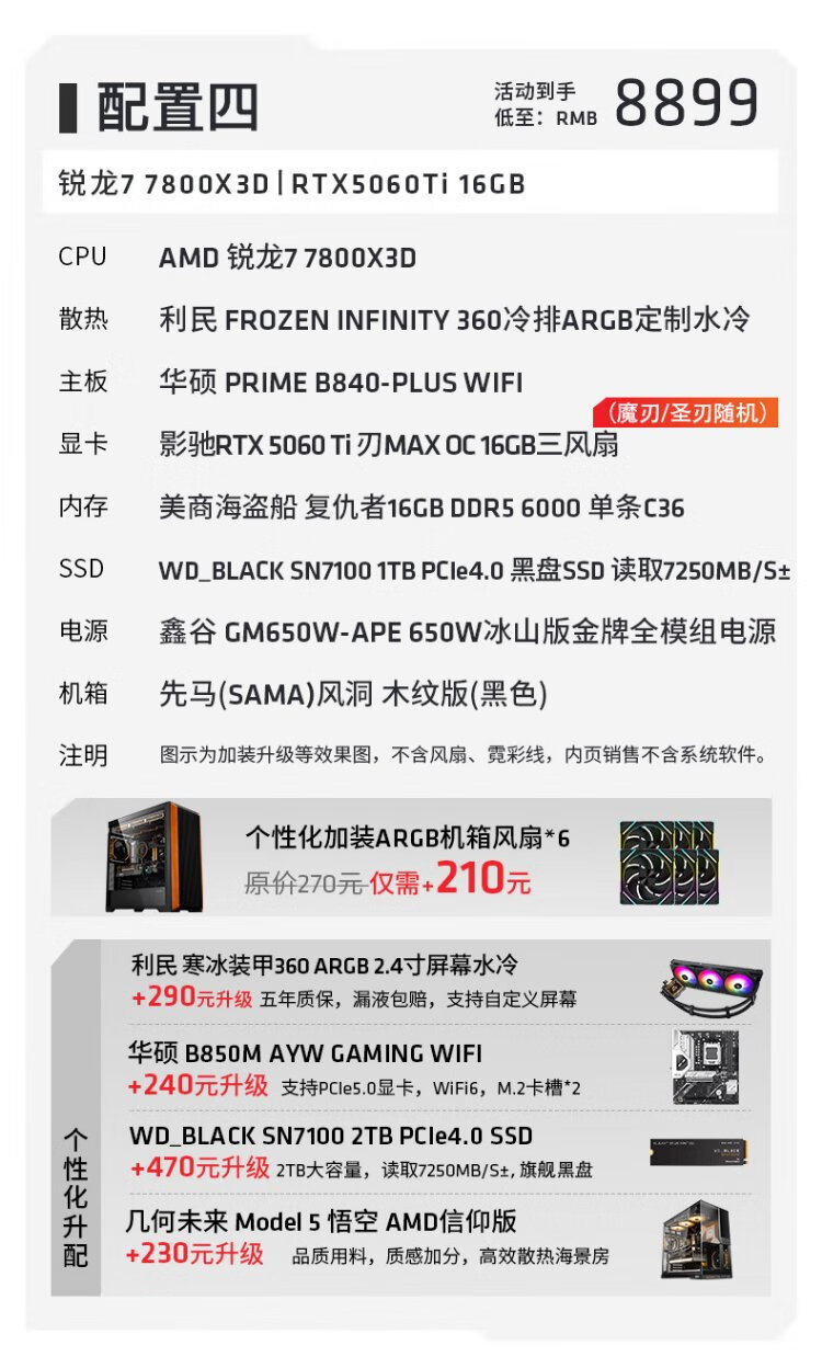 AMD Ryzen 7 7800X3D host RTX5060Ti RX9070XT computer host AI computing rendering computer E-sports live game desktop host DIY assembly machine R7 7800X3D+RTX5060丨Package 2