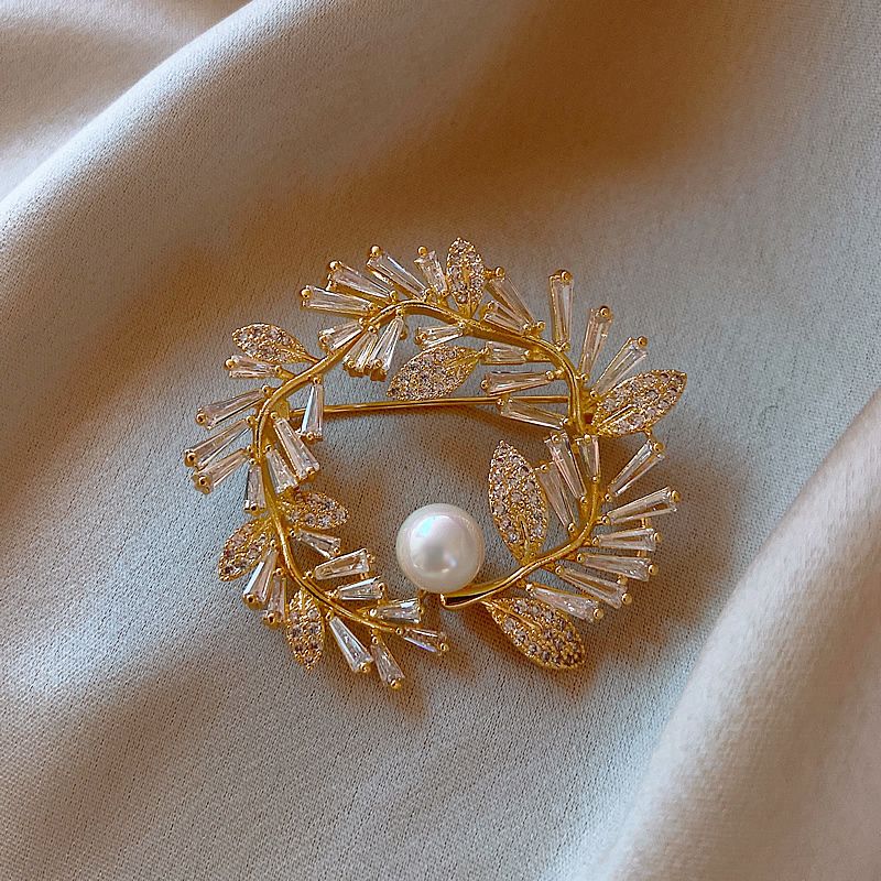 Ao Yan Lai Pearl Brooch Women's Scarf Button 2025 New Trendy Niche Design Decorative Accessories Gold