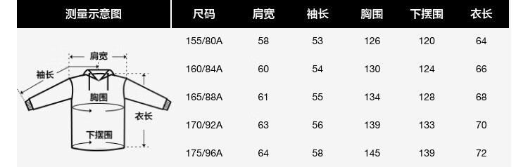 China (cm) 160-165/84-86 165-170 / 88-90 167-172 / 92-96 168-173 / 98-102 170-176 / 106-110