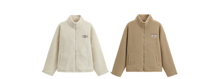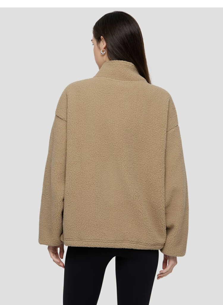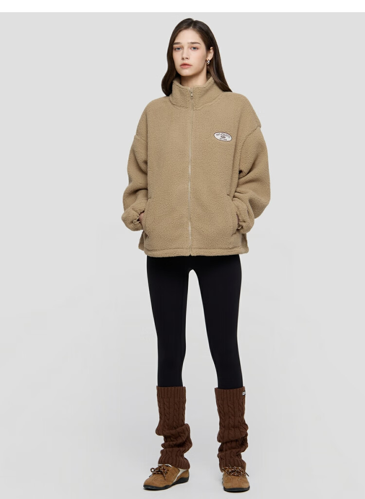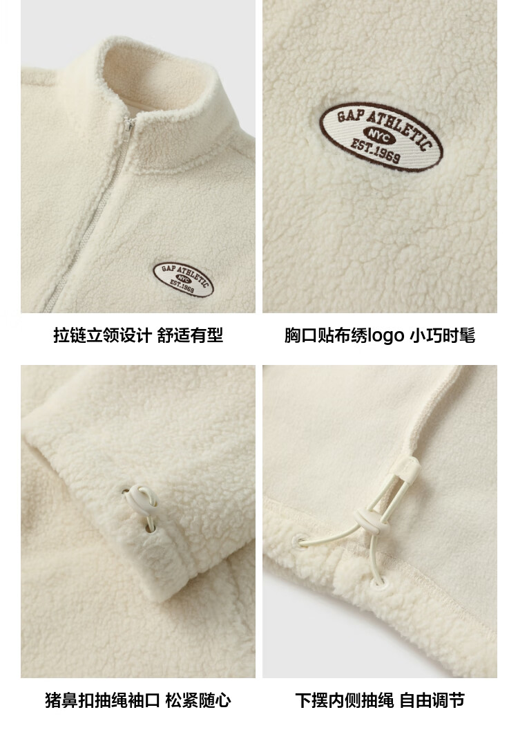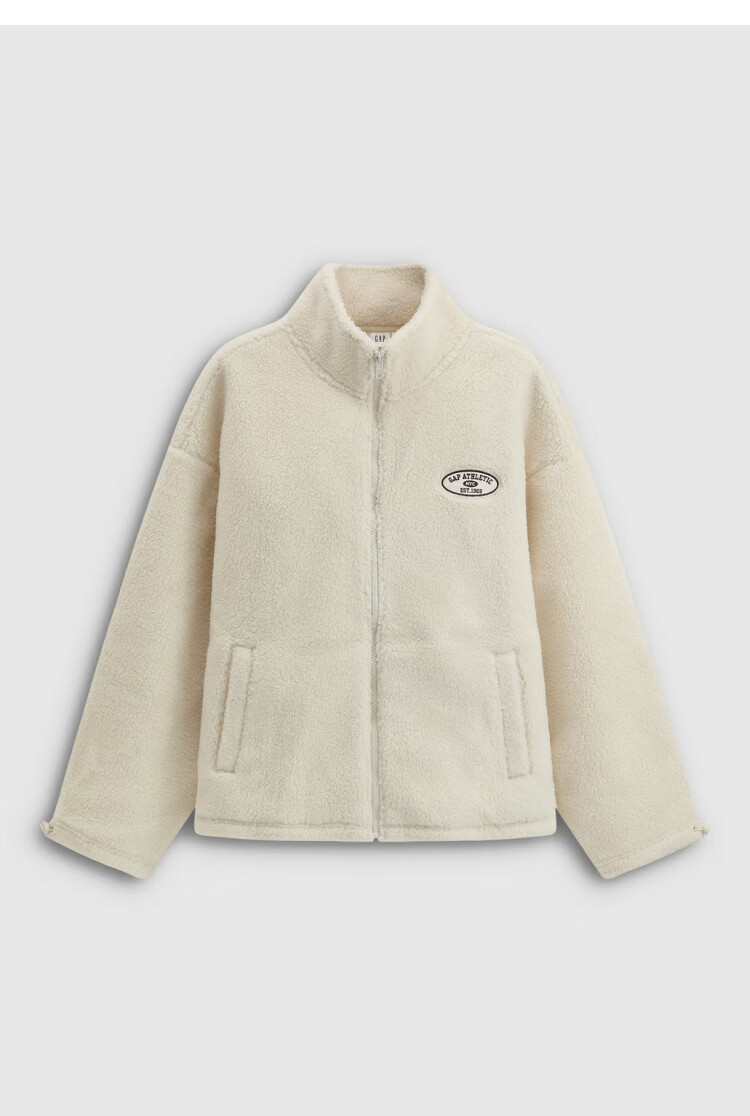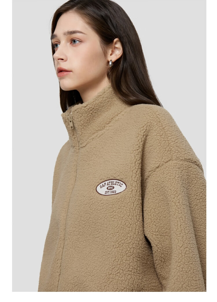 GAP women's 2025 new autumn style appliqué embroidered logo imitation sherpa loose zipper stand collar jacket 843660 Khaki S (160/84A) Asian size