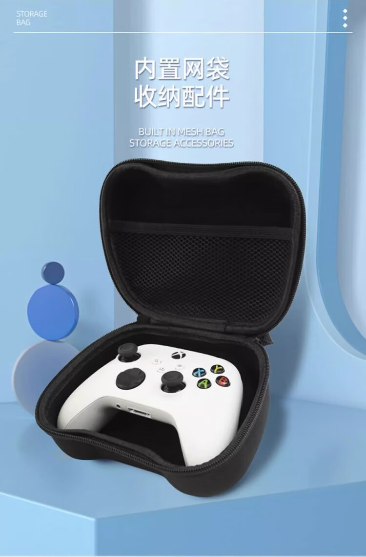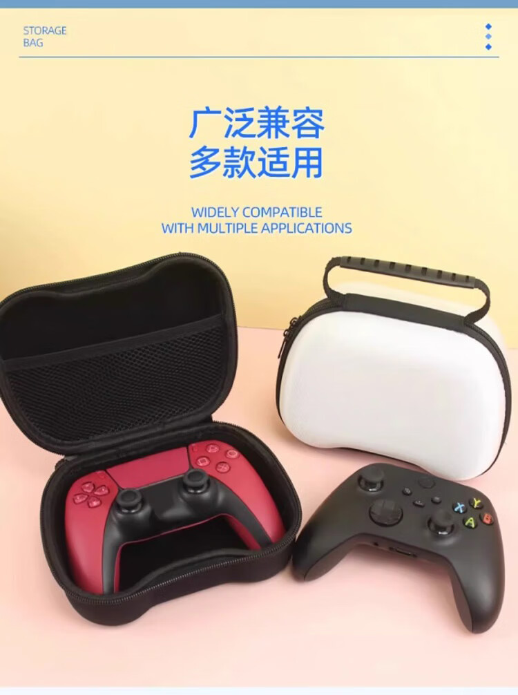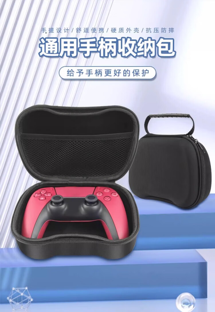 Game equipment storage bag for PS5/PS4/Switch Pro/Xbox EVA game controller storage bag zipper bag protective cover anti-fall waterproof hard box bag with mesh pocket controller universal storage bag black-1 pack