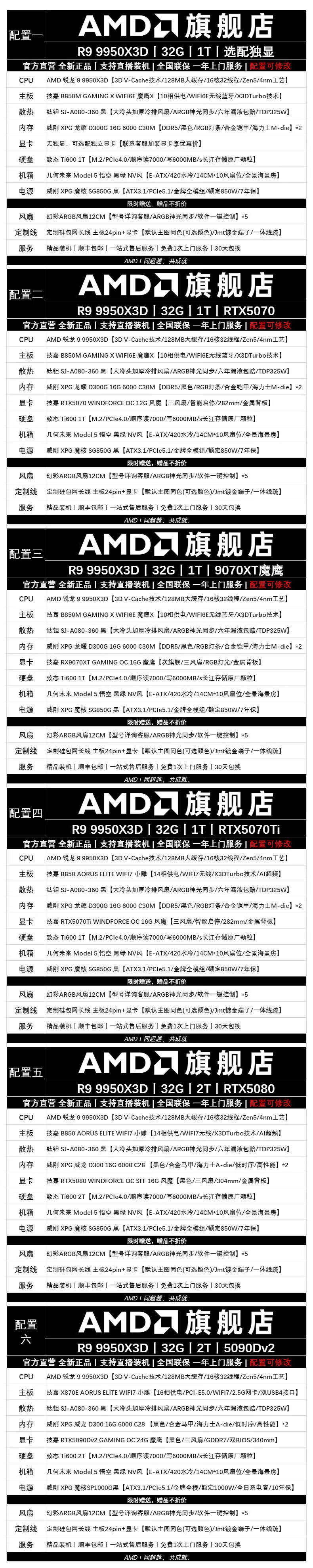 AMD Ryzen R9 9950X3D Desktop Computer 9070XT/5070TI/5080/5090D E-Sports Host Geometry Future M5 Wukong Game DIY Computer Thousand Frames E-Sports 6 R9 9950X3D丨5090Dv2