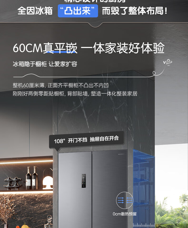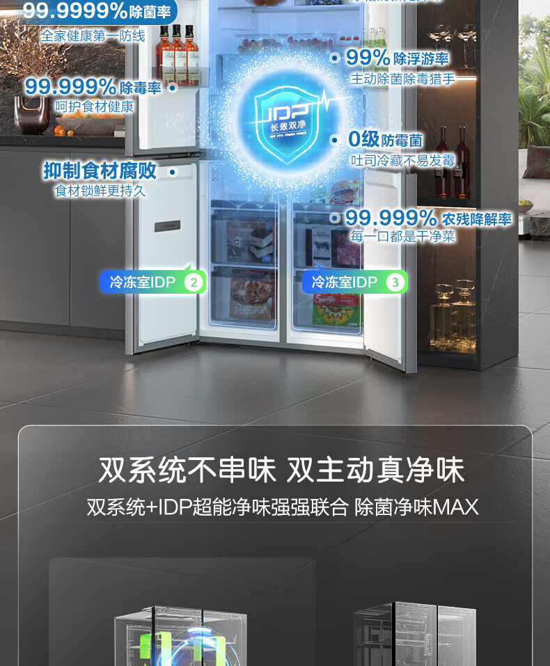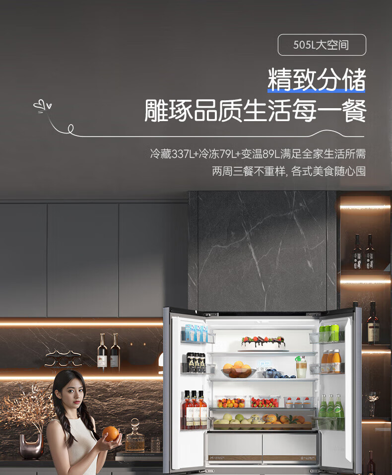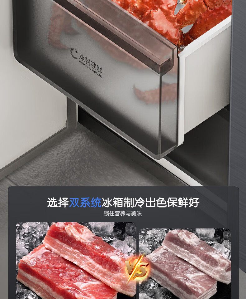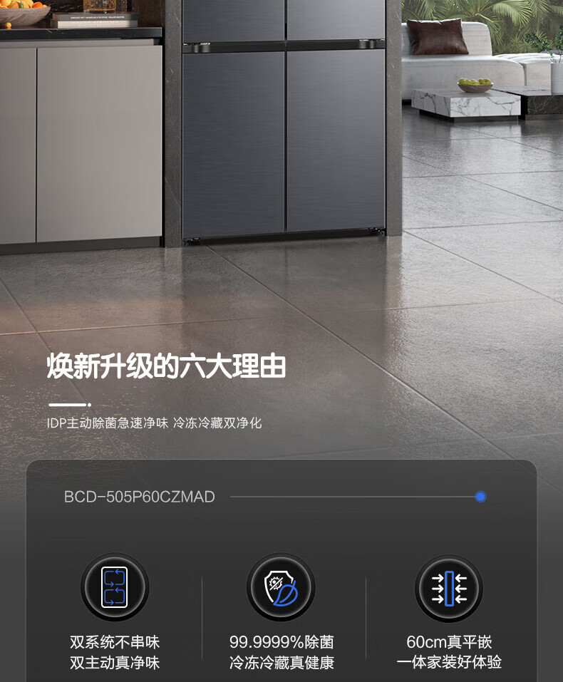 Rongsheng Tangtang 505L Cross Door Refrigerator Dual System Dual Cycle Active Sterilization Ultra-Thin Zero Embedded Household Level One Energy Efficiency BCD-505P60CZMAD Gray National Subsidy World Cup 60cm True Zero Embedded Bottom Cooling Active Sterilization 2.0