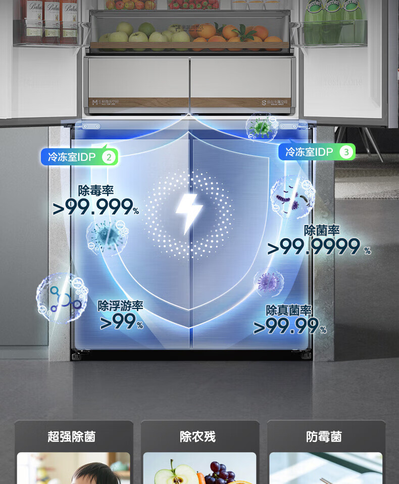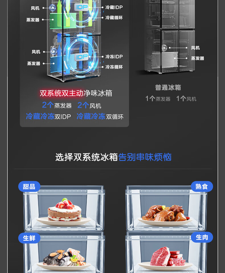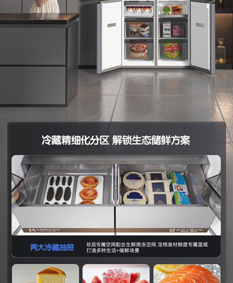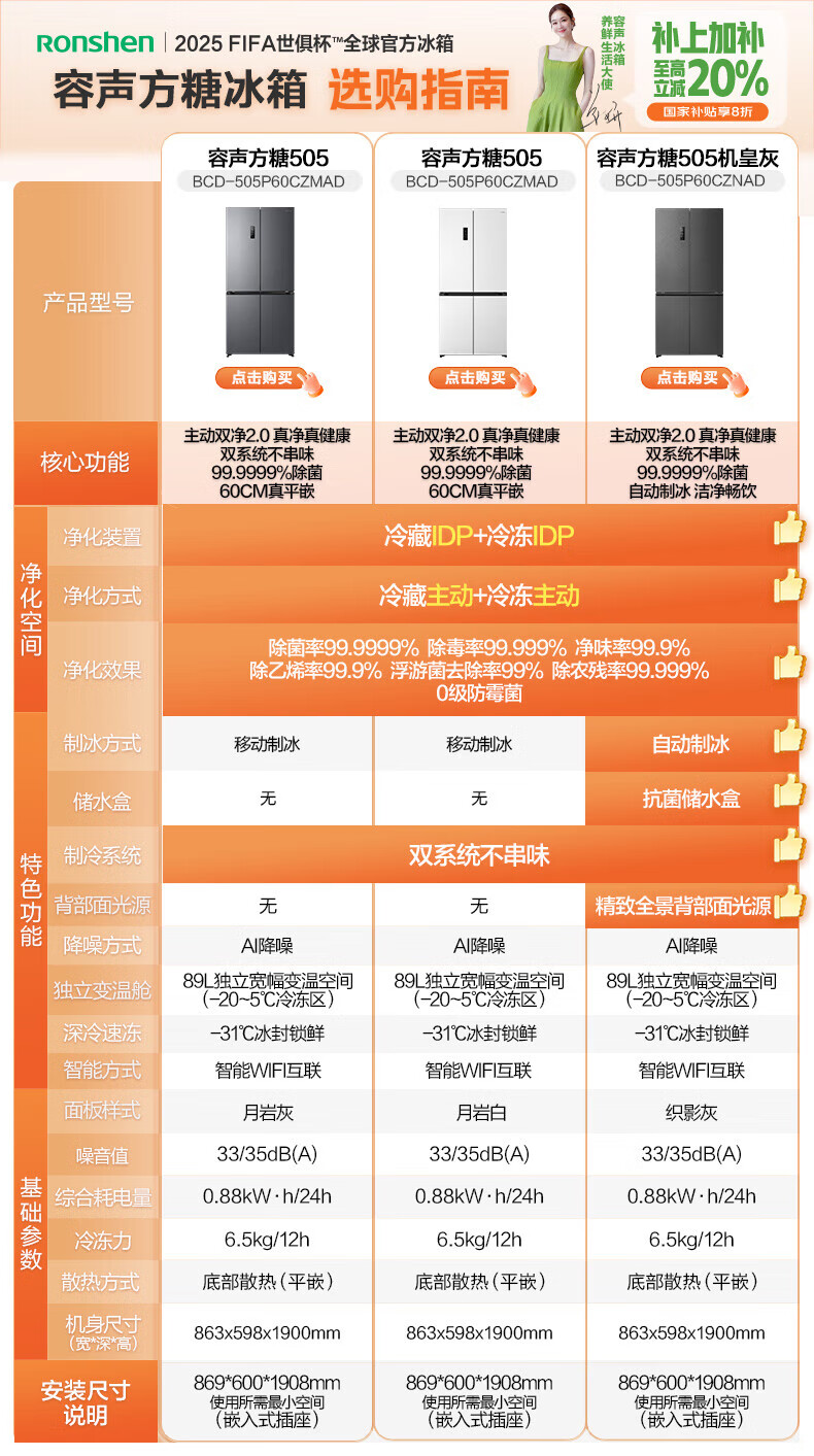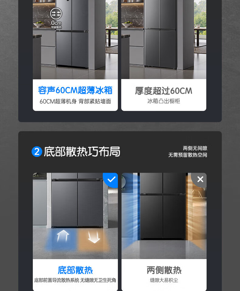 Rongsheng Tangtang 505L Cross Door Refrigerator Dual System Dual Cycle Active Sterilization Ultra-Thin Zero Embedded Household Level One Energy Efficiency BCD-505P60CZMAD Gray National Subsidy World Cup 60cm True Zero Embedded Bottom Cooling Active Sterilization 2.0