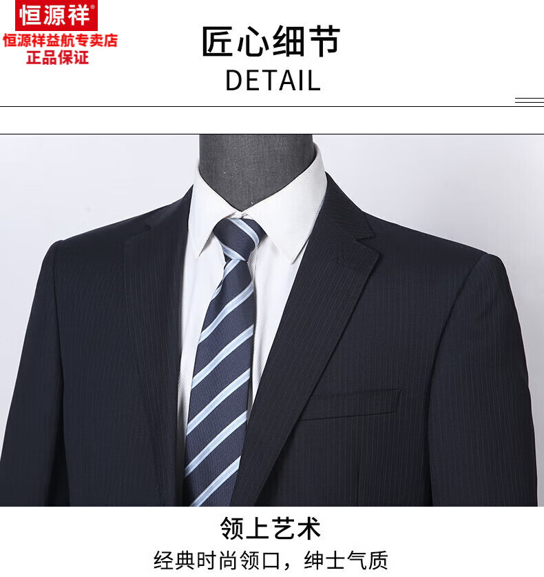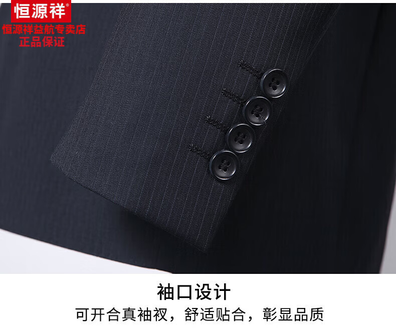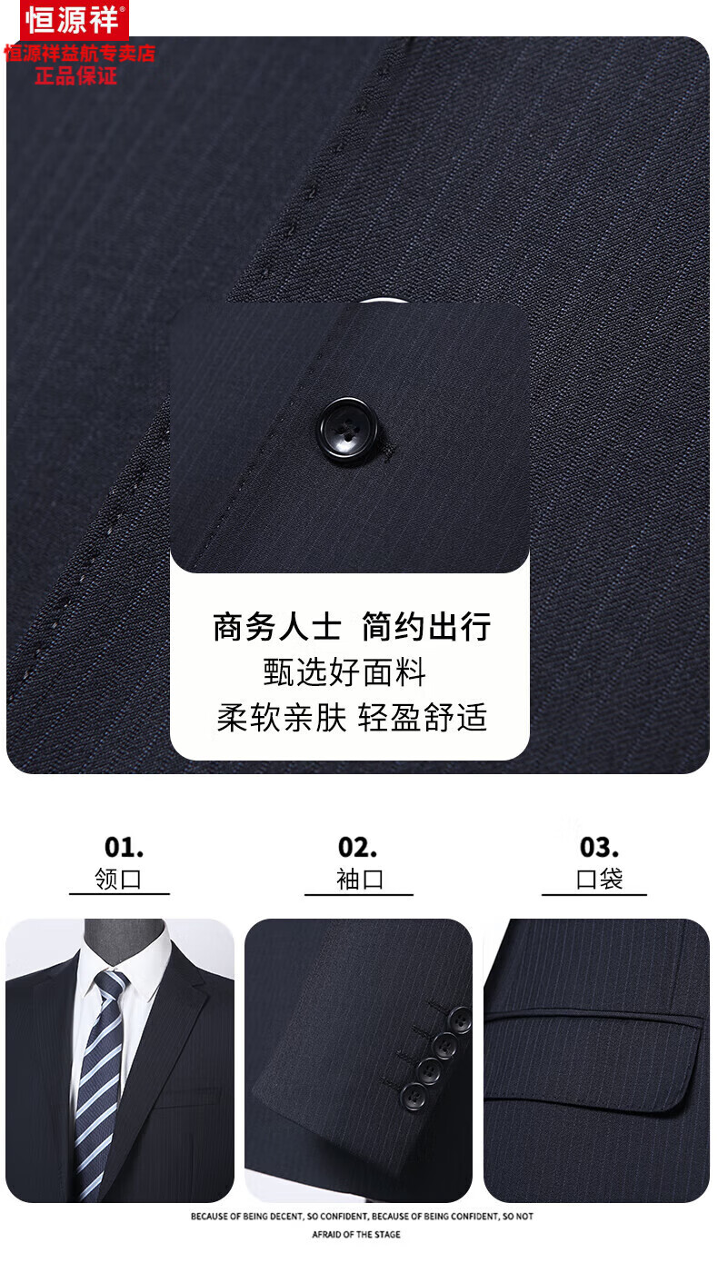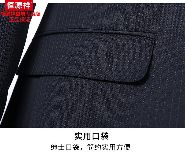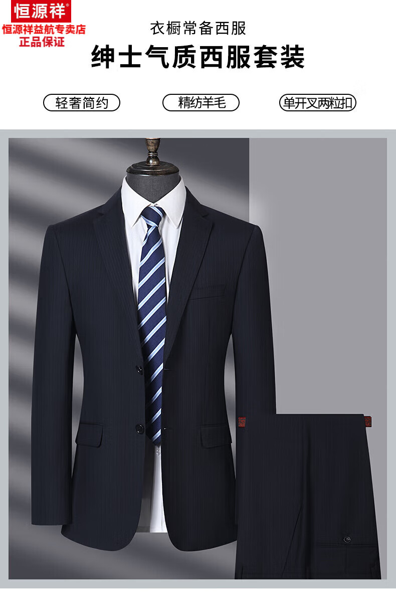 Hengyuanxiang high-end light luxury men's worsted wool suit striped middle-aged business formal suit wedding dress jacket navy blue center back slit M 170/46B