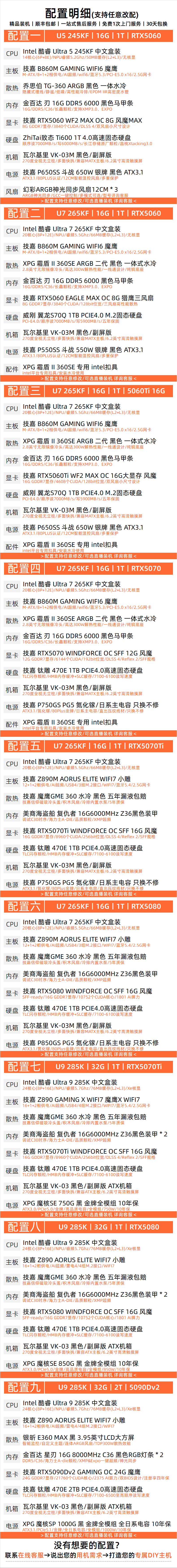 Gigabyte RTX5080/5070TI/5060TI/14700KF Ultra7 265KF Intel computer host e-sports game live broadcast customized DIY desktop machine 5 U7 265KF丨RTX5070Ti
