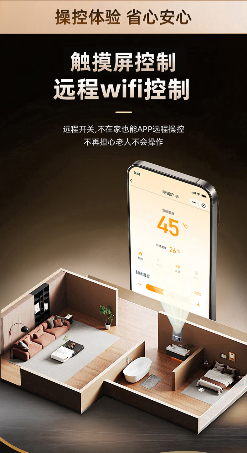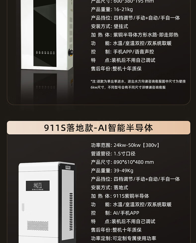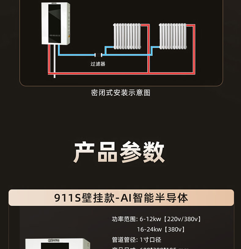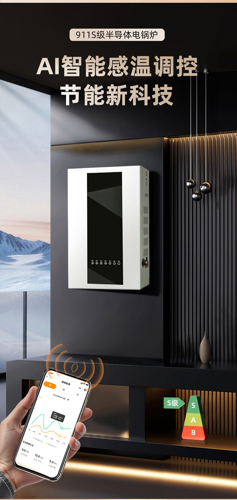 Shen'ao electric boiler household heating furnace semiconductor 220v new 380v heating rural three-phase radiator floor heating coal modification 911S wall-mounted model 8kw emergency dual heating WiFi remote control semiconductor open external pump