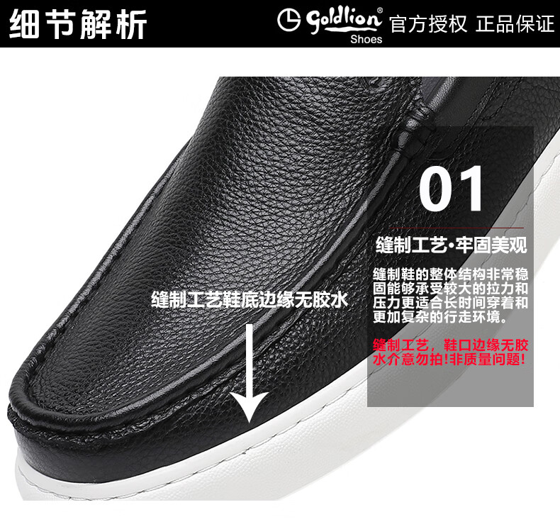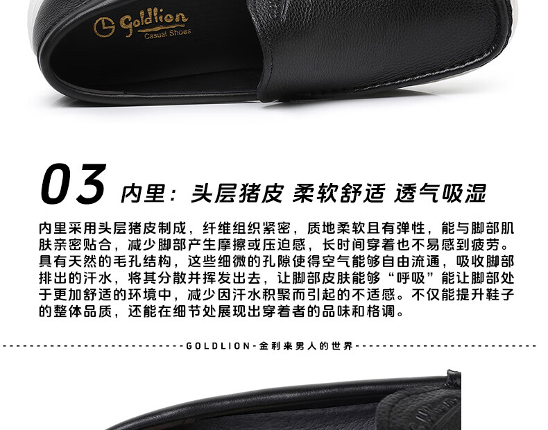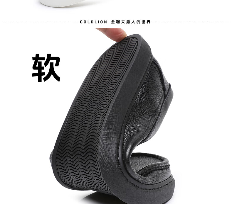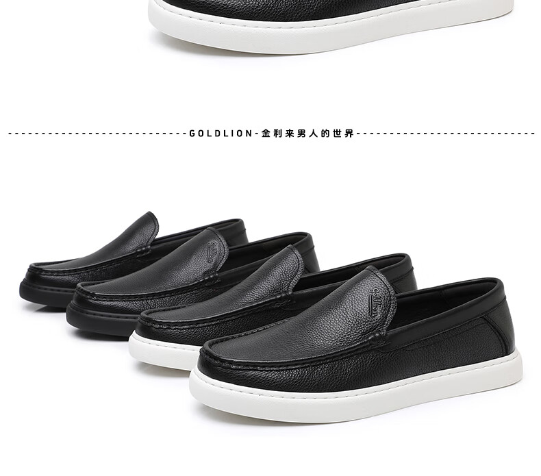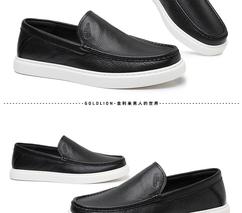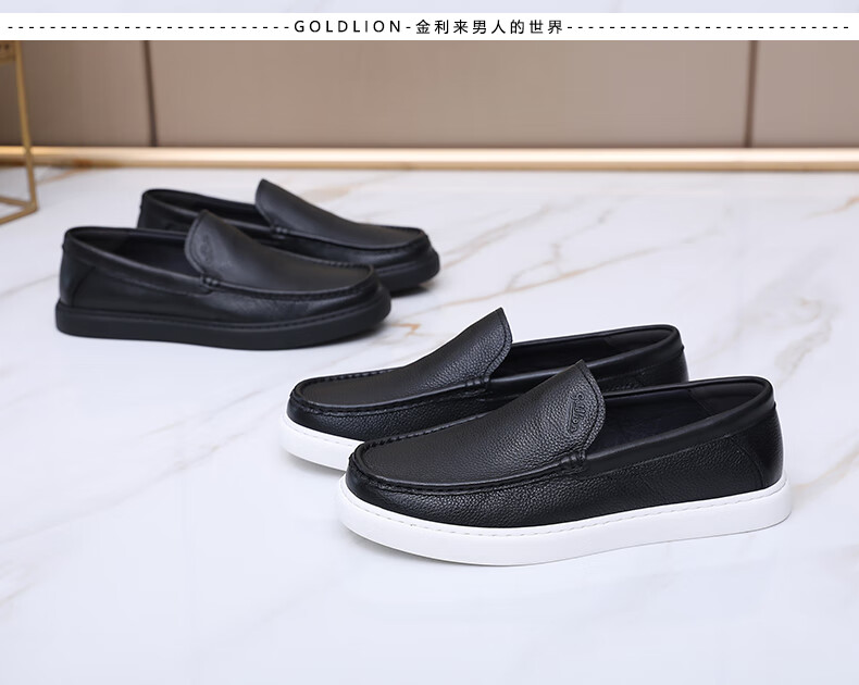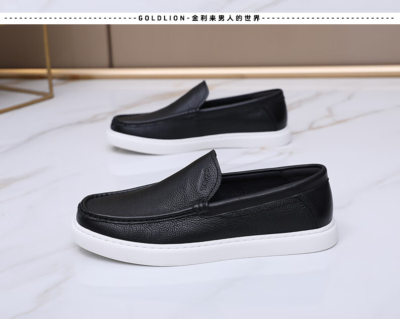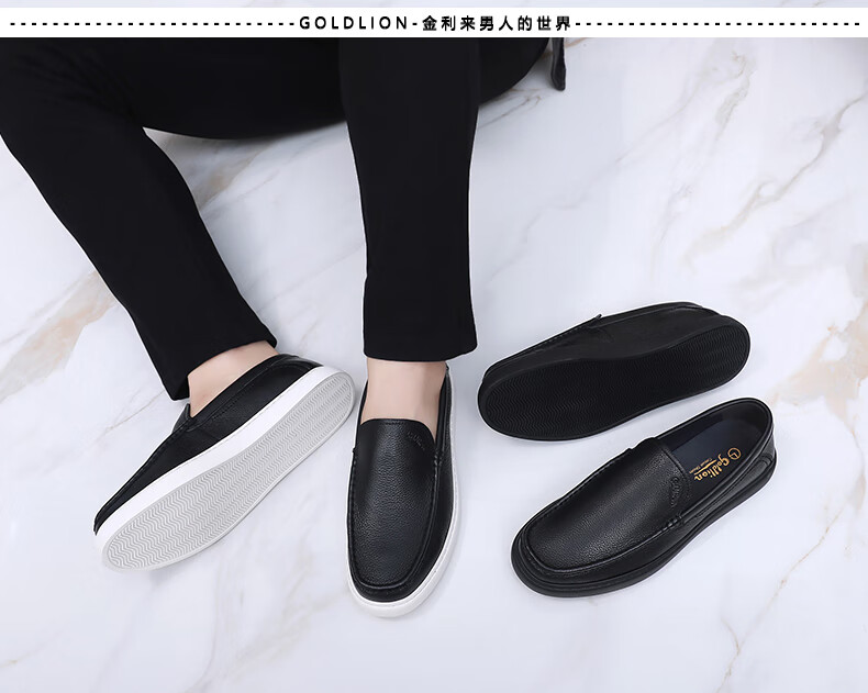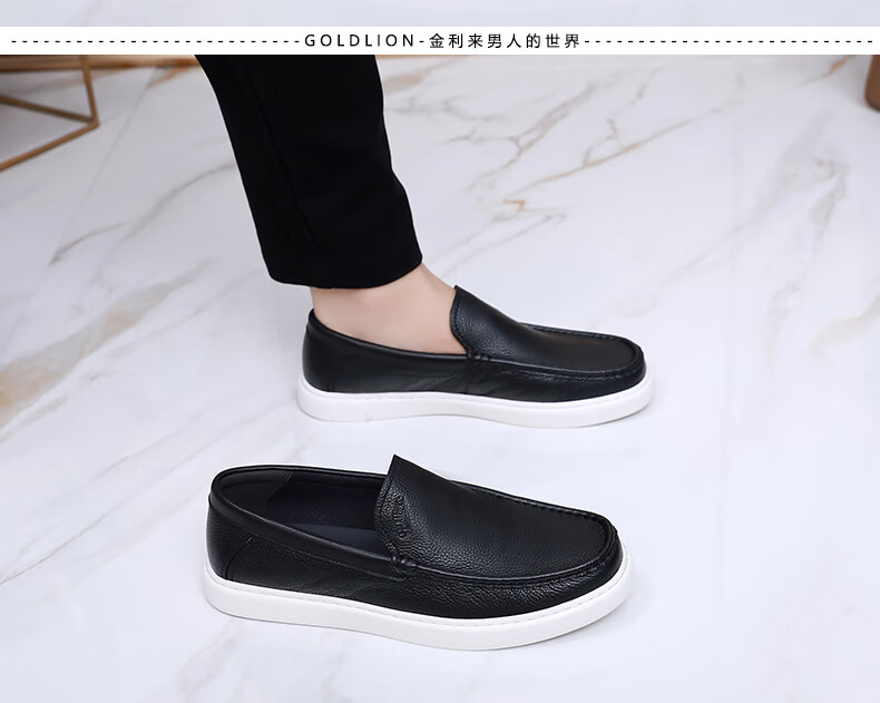 Goldlion Men's Loafers Soft Leather Business Casual Leather Toe Cowhide Men's Flat Shoes Breathable Single Shoes Black 40