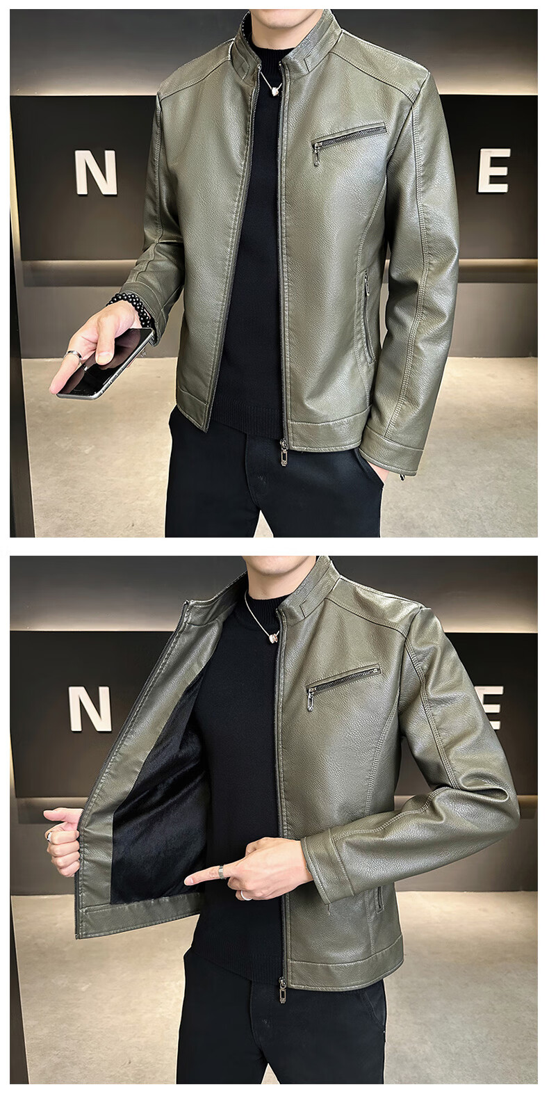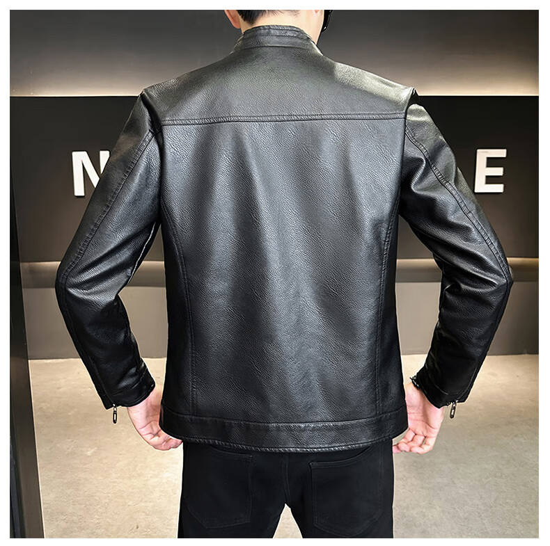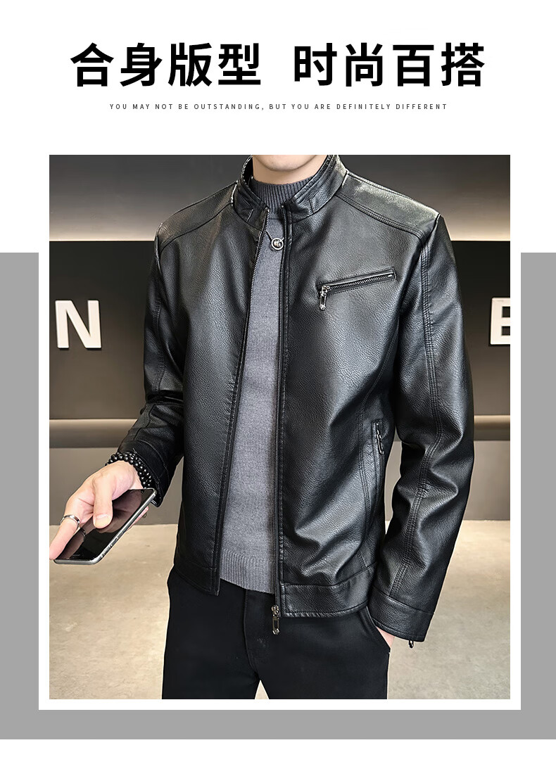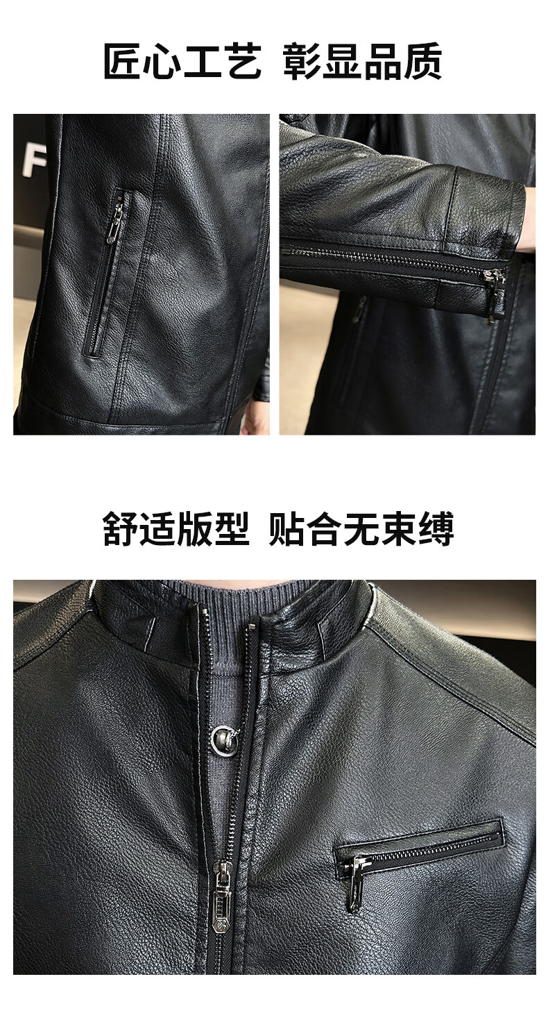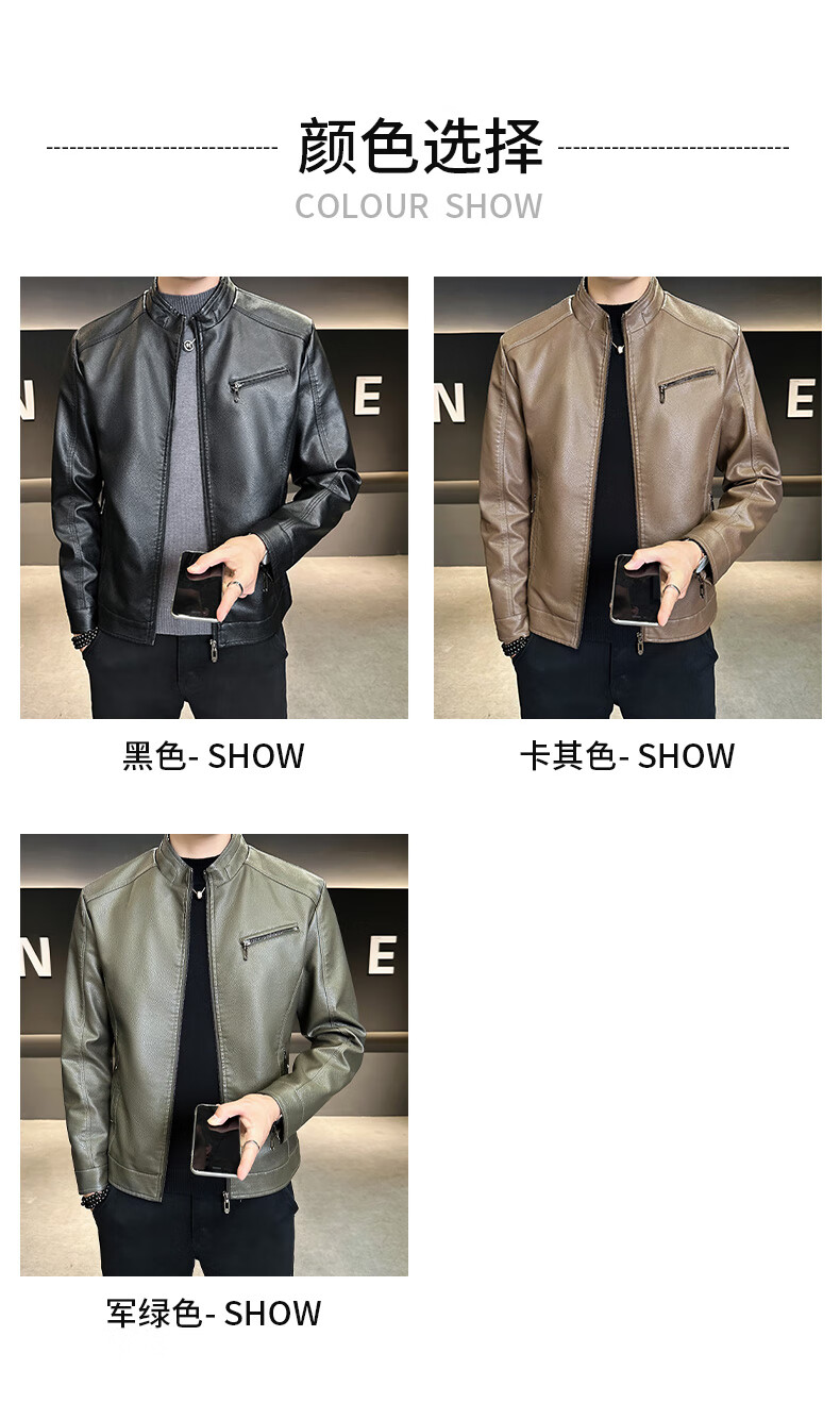 男士高档立领皮衣秋冬季新款时尚痞帅夹克加绒加厚休闲百搭皮夹克 军绿色 【加厚】 L
