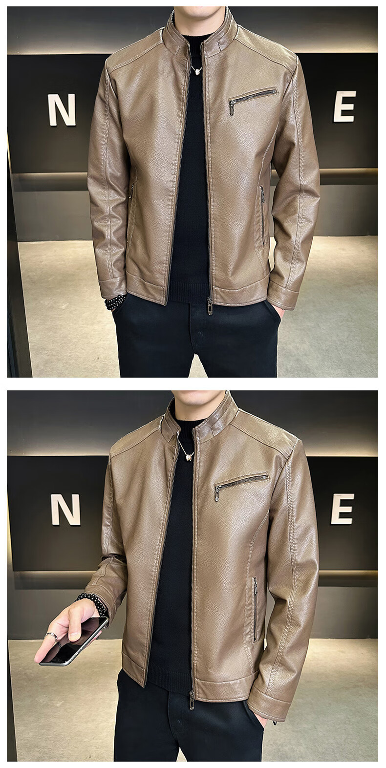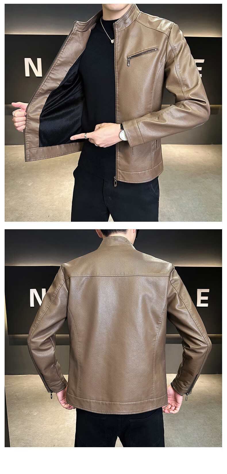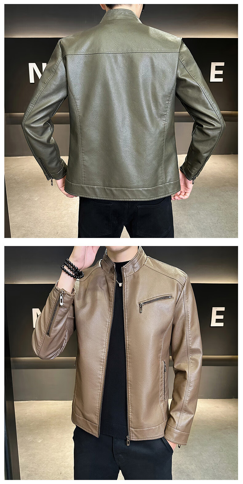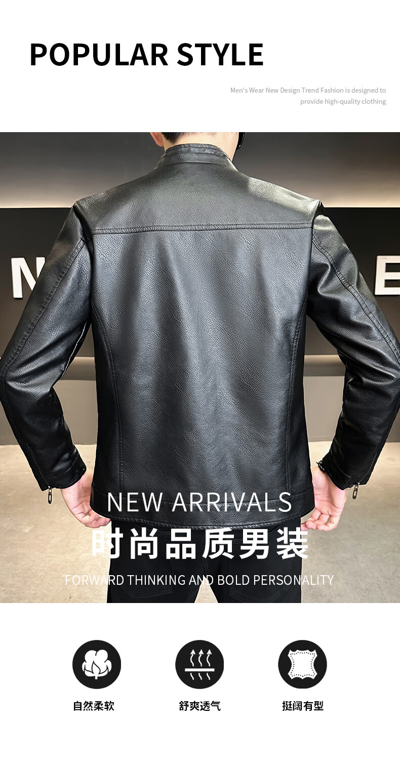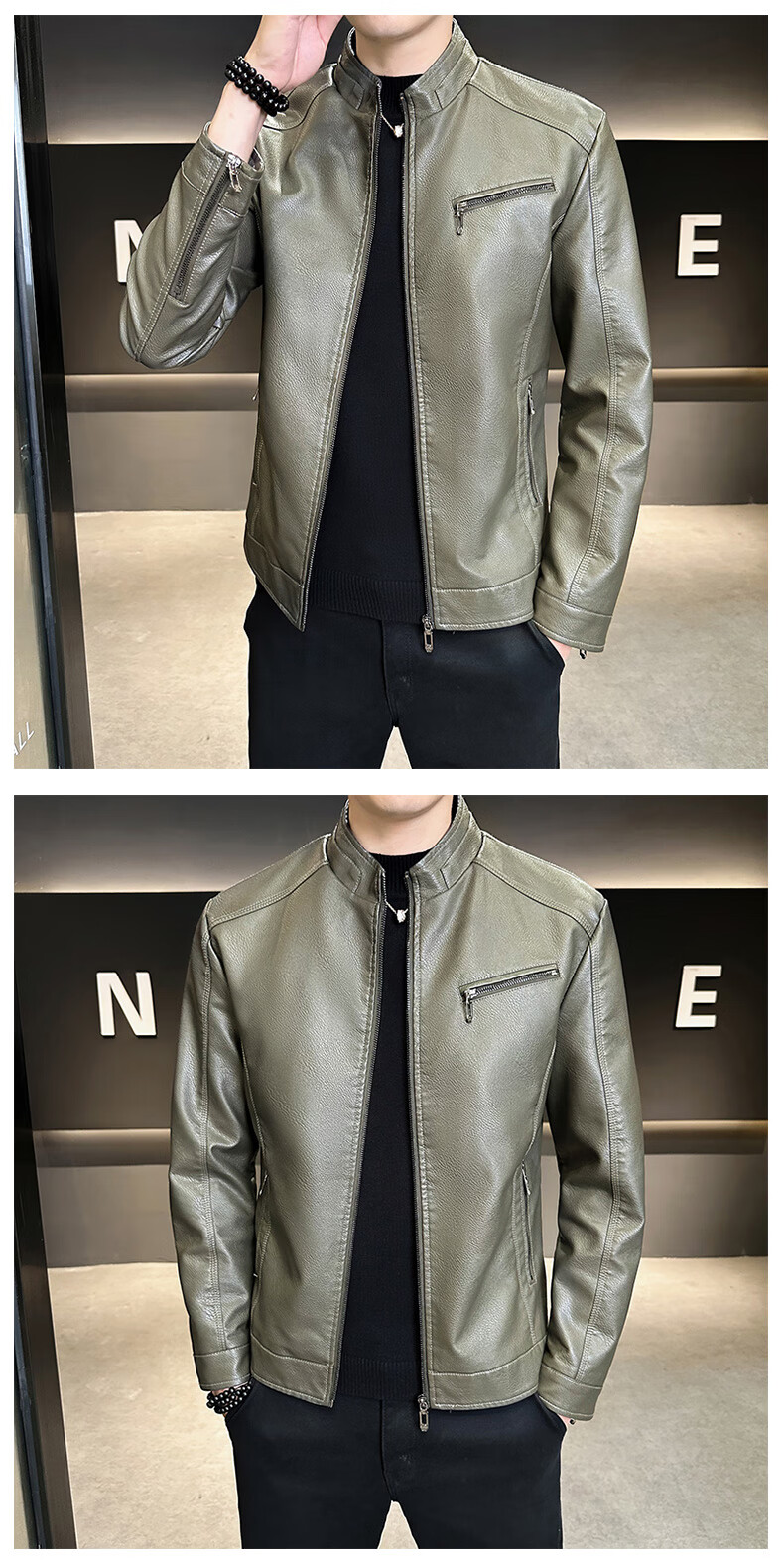 男士高档立领皮衣秋冬季新款时尚痞帅夹克加绒加厚休闲百搭皮夹克 军绿色 【加厚】 L