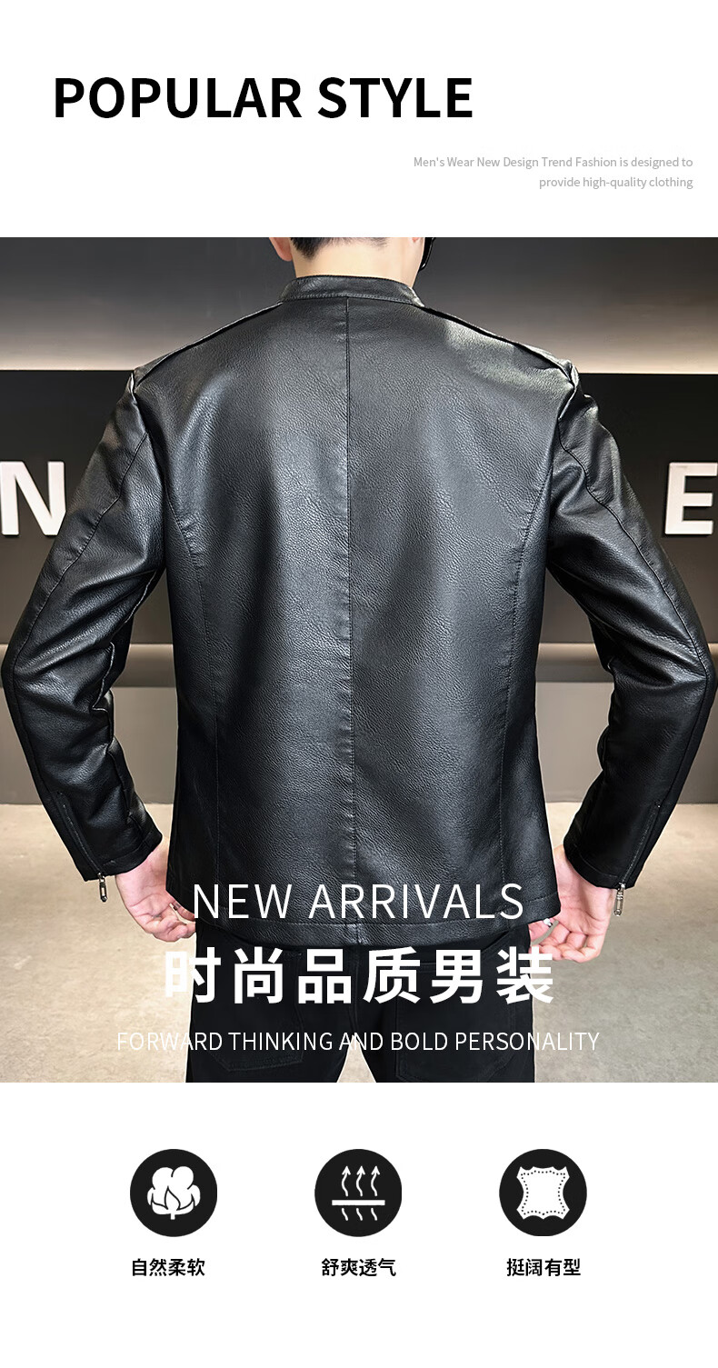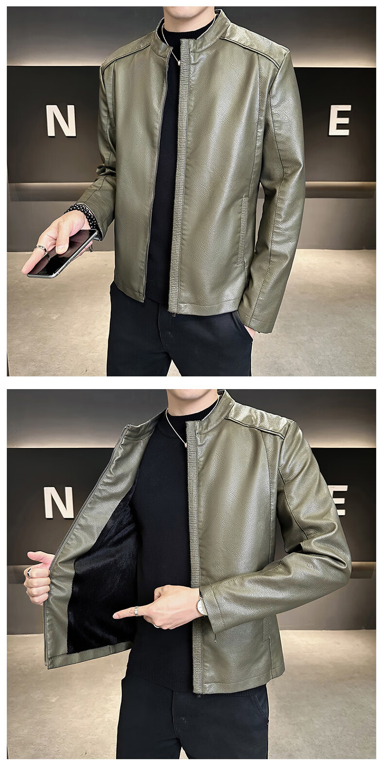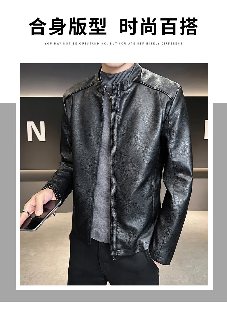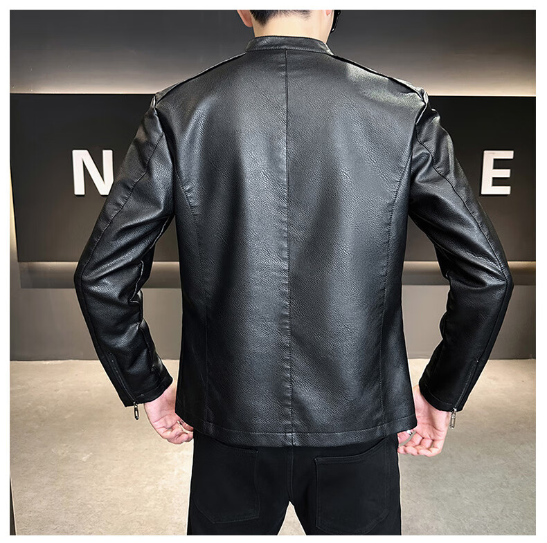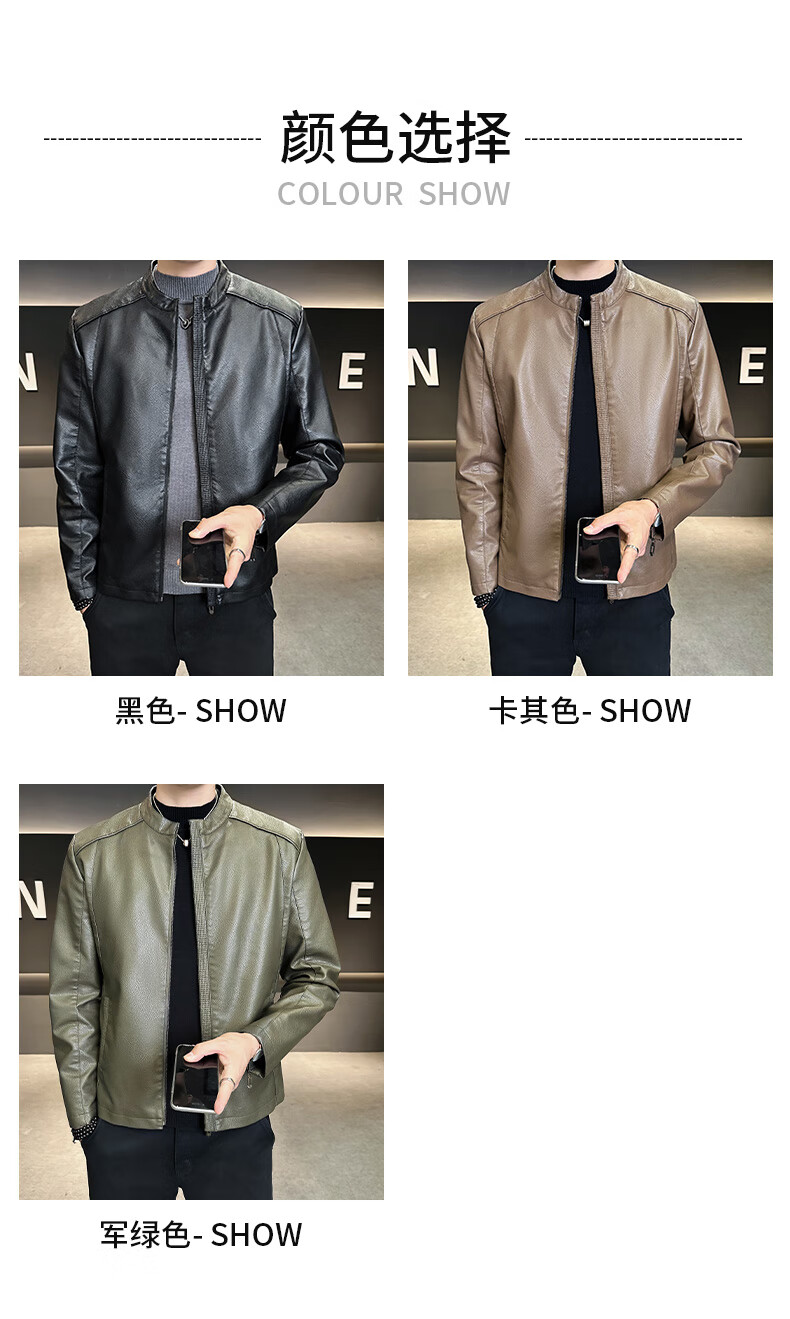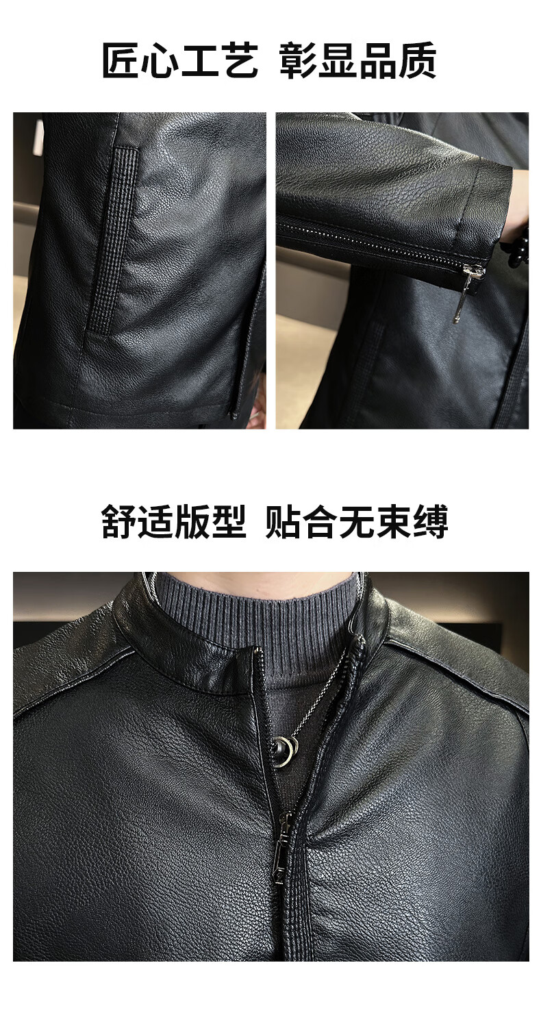 High-end stand-up collar leather jacket for men in autumn and winter new fashion casual black leather jacket velvet thickened versatile jacket military green thickened 3XL