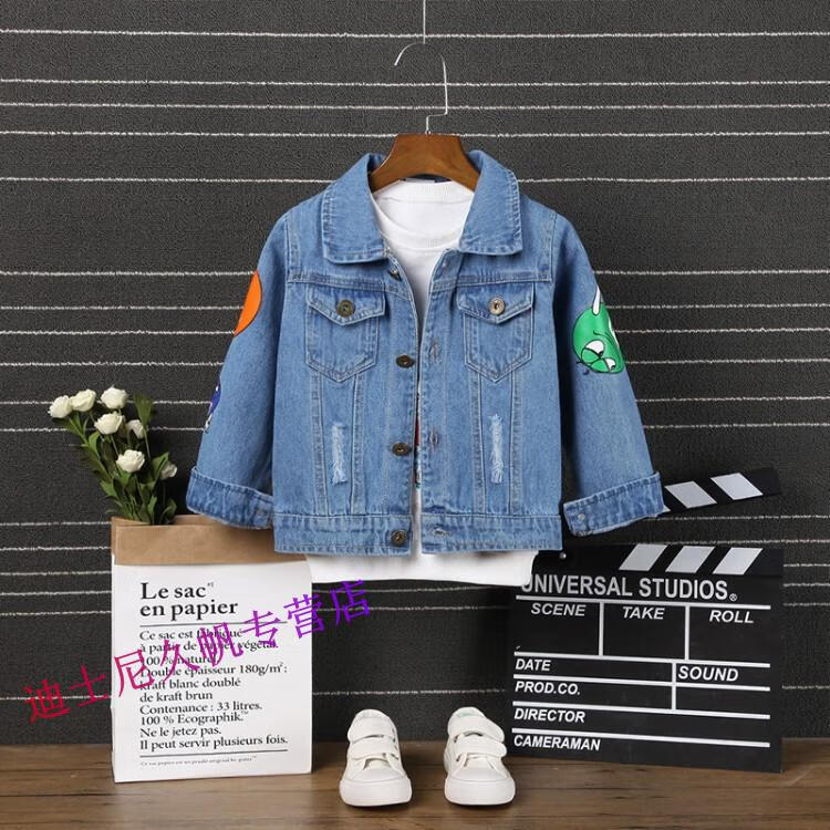 Disney Boys Denim Jacket 2025 New Children's Clothing Children's Lapel Long Sleeve Jacket Baby Spring and Autumn Denim Jacket C212 Spring Denim Jacket 150 cm