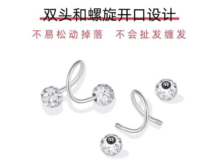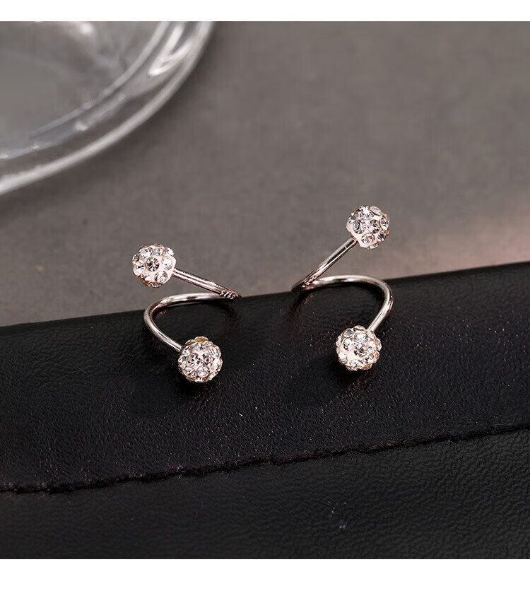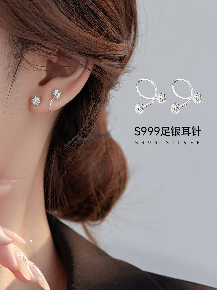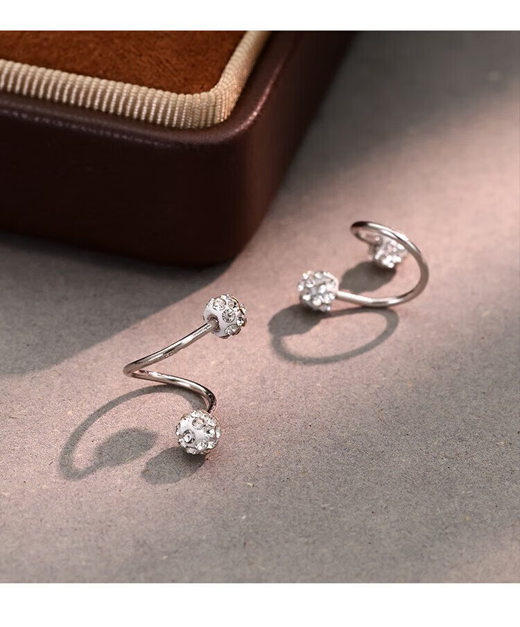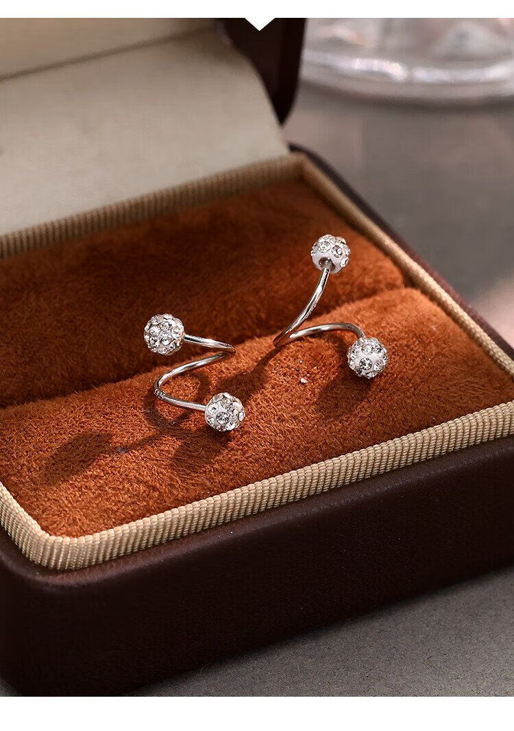 沄汧999 sterling silver earrings earrings birthday gifts for girls 2025 new temperament high-end jewelry silver jewelry S999 spiral rod full diamond ball earrings pair