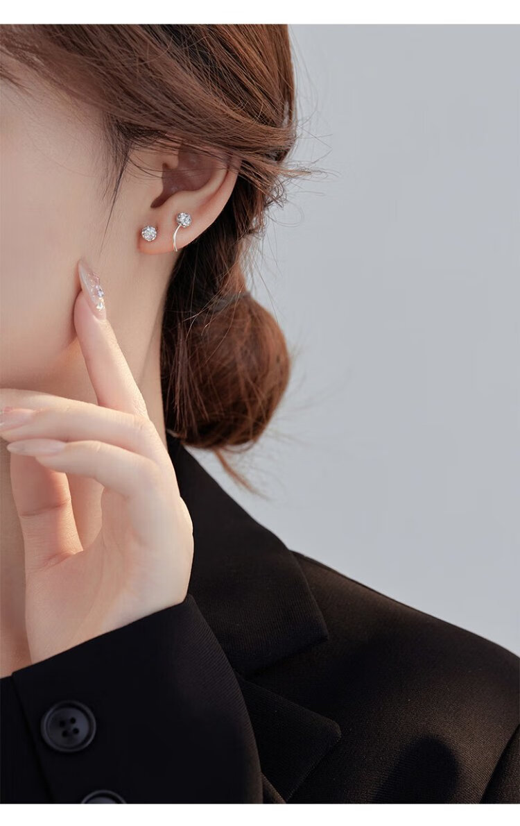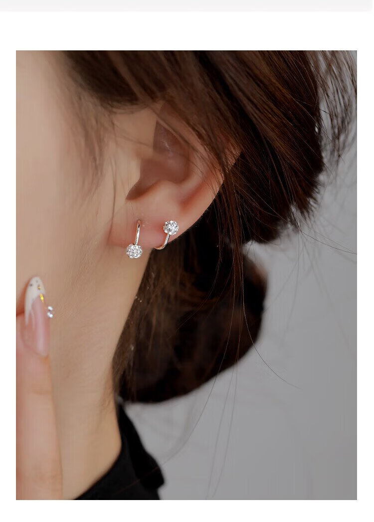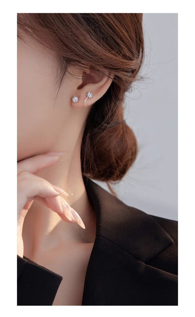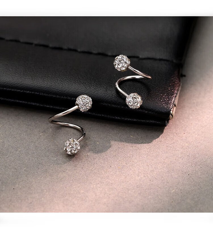 沄汧999 sterling silver earrings earrings birthday gifts for girls 2025 new temperament high-end jewelry silver jewelry S999 spiral rod full diamond ball earrings pair