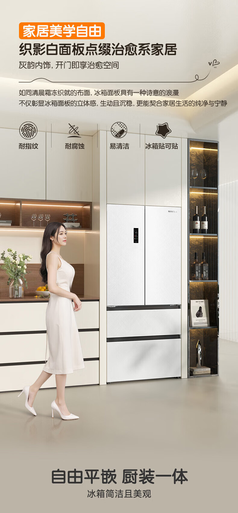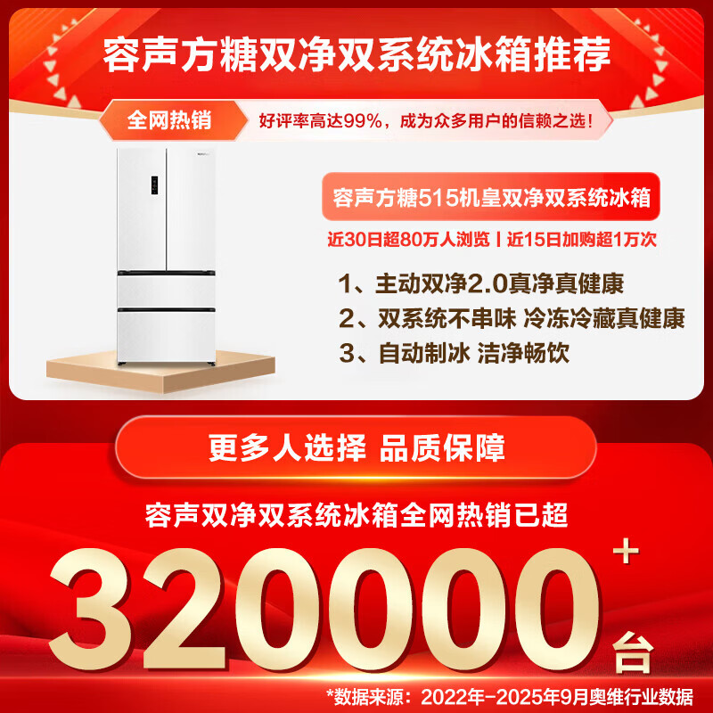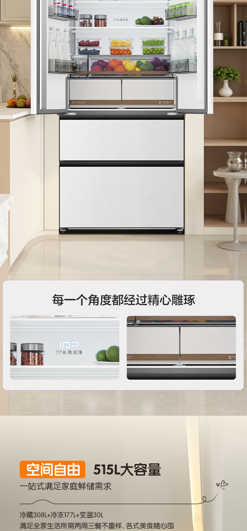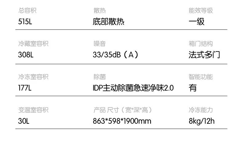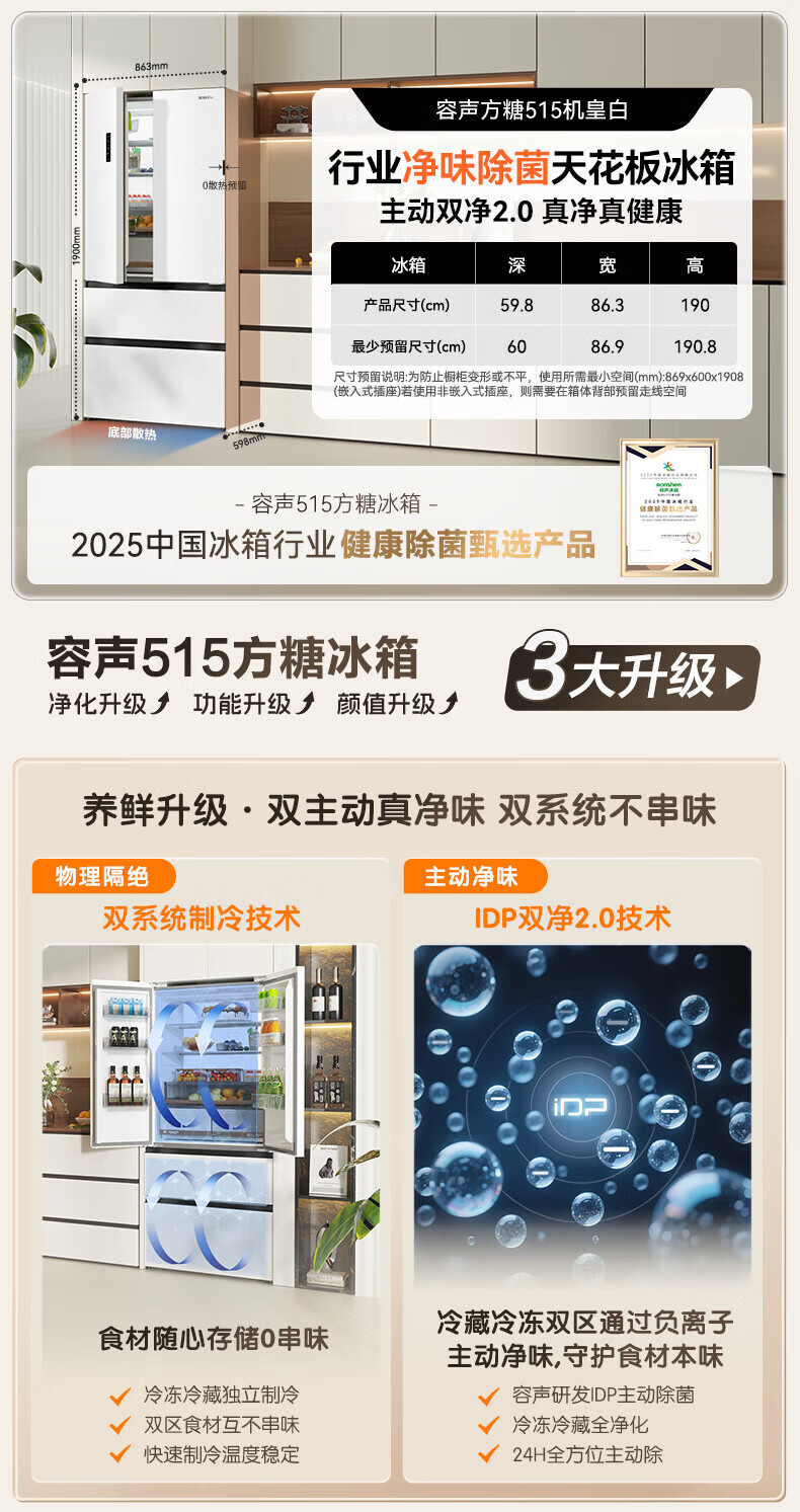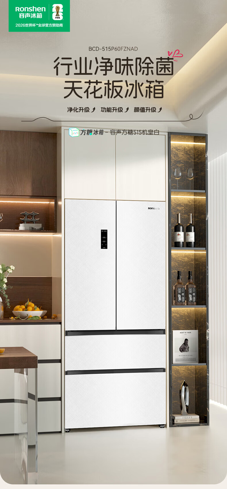 Rongsheng Cube Sugar 515L French-style multi-door refrigerator dual system ultra-thin zero-embedded household automatic ice making first-level energy efficiency BCD-515P60FZNAD white national subsidy World Cup 60cm true zero-embedded | bottom cooling ultra-clean automatic ice making