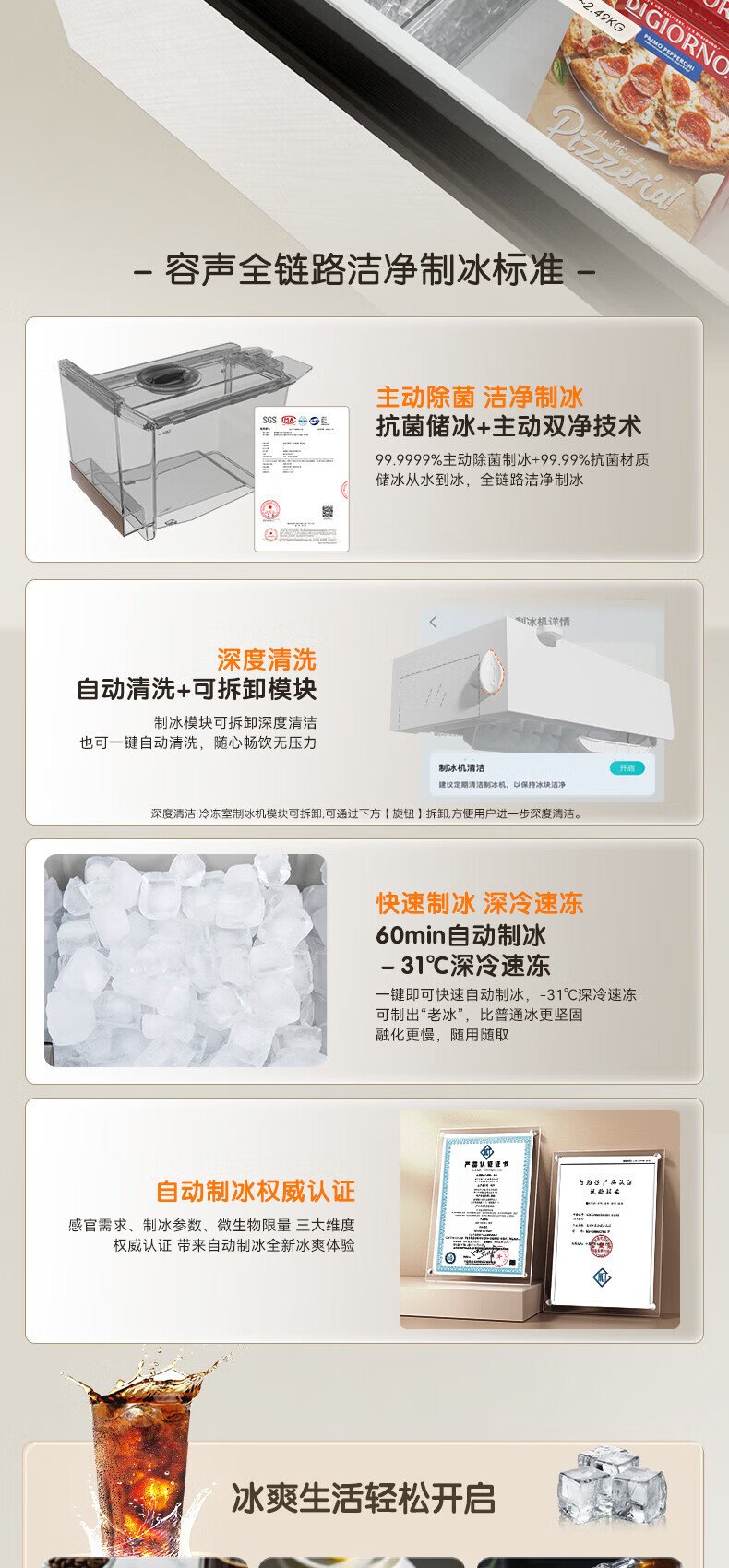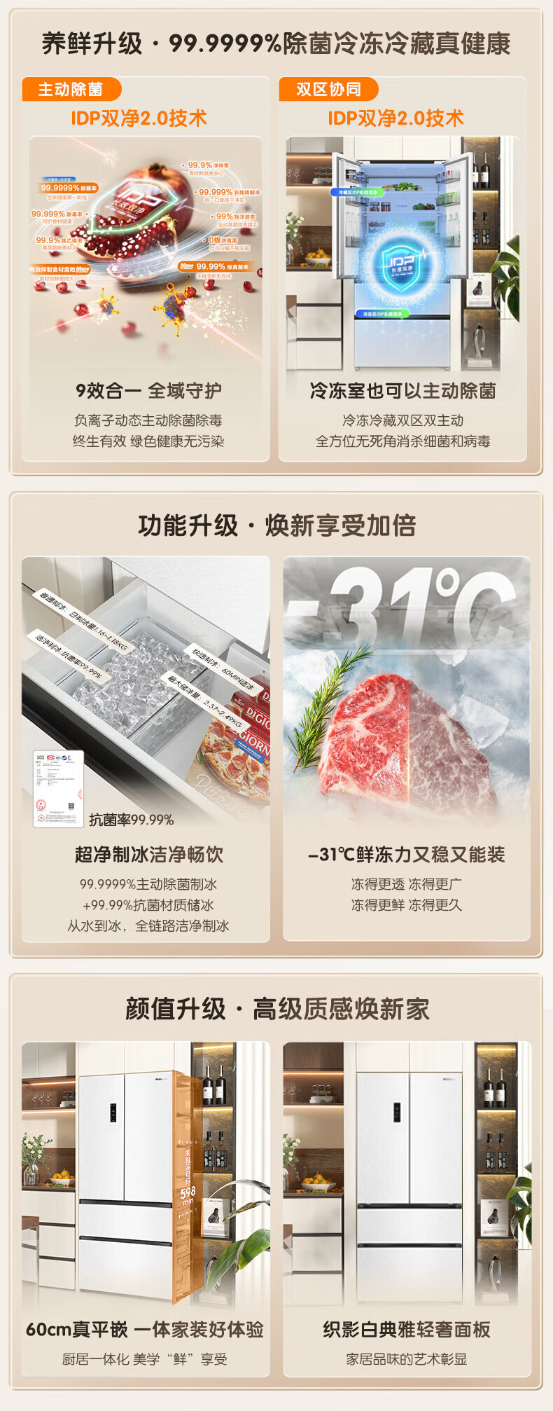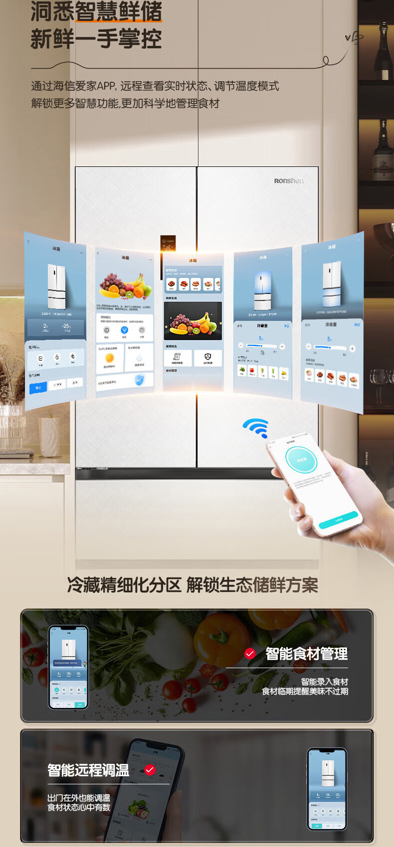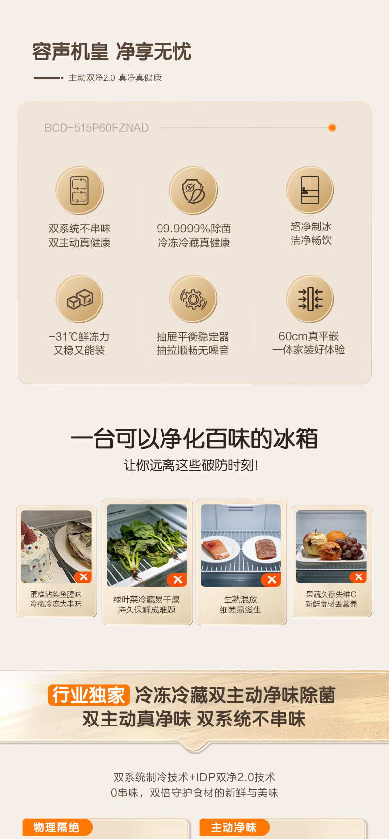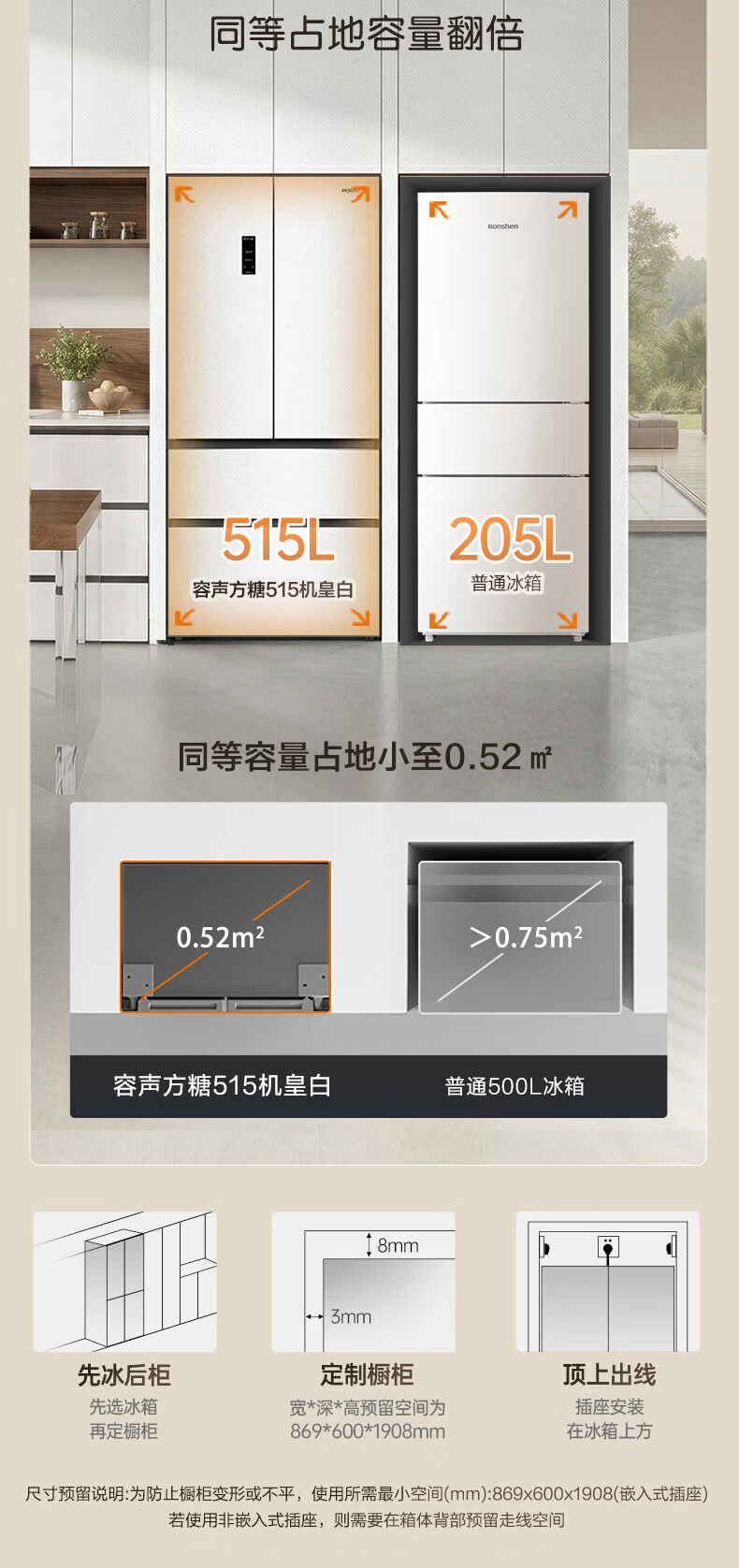 Rongsheng Cube Sugar 515L French-style multi-door refrigerator dual system ultra-thin zero-embedded household automatic ice making first-level energy efficiency BCD-515P60FZNAD white national subsidy World Cup 60cm true zero-embedded | bottom cooling ultra-clean automatic ice making