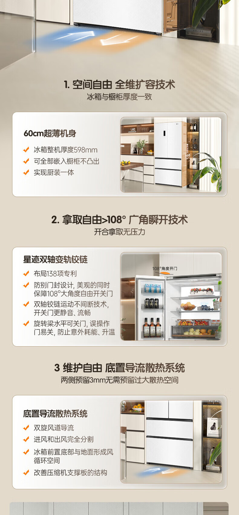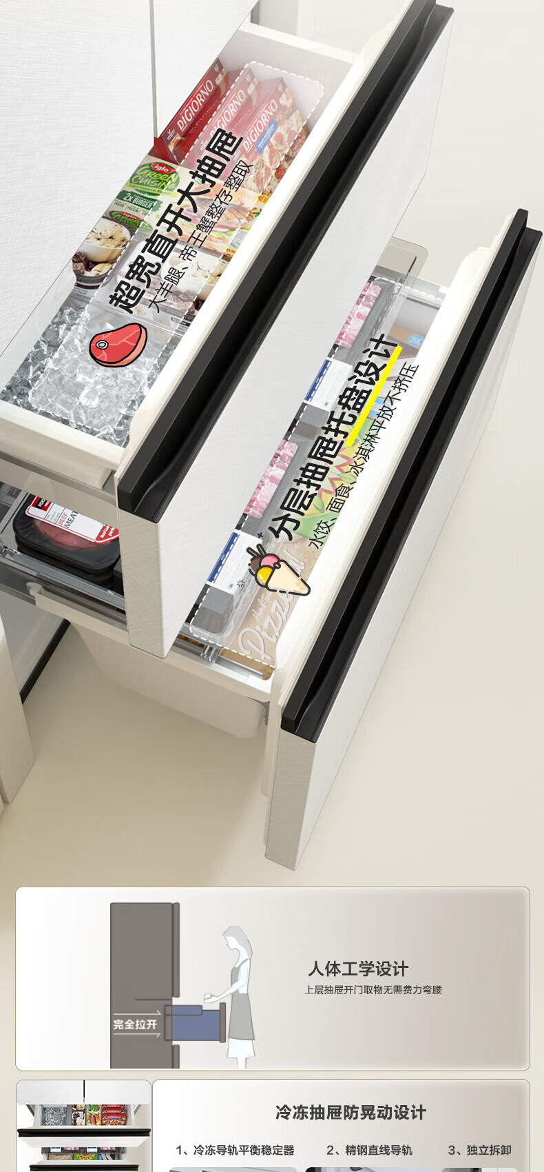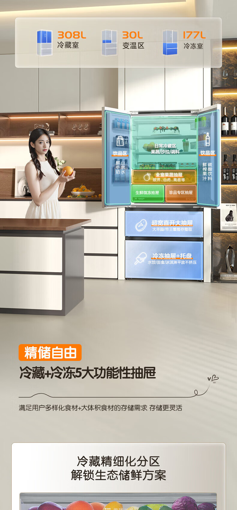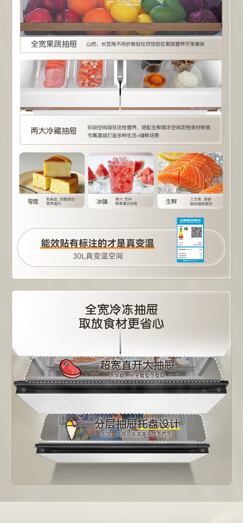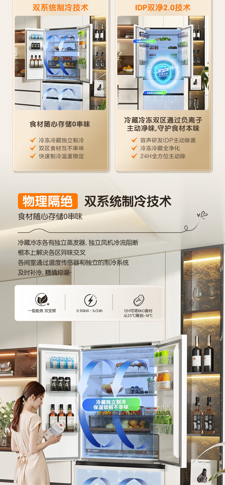 Rongsheng Cube Sugar 515L French-style multi-door refrigerator dual system ultra-thin zero-embedded household automatic ice making first-level energy efficiency BCD-515P60FZNAD white national subsidy World Cup 60cm true zero-embedded | bottom cooling ultra-clean automatic ice making