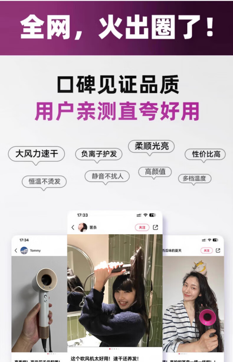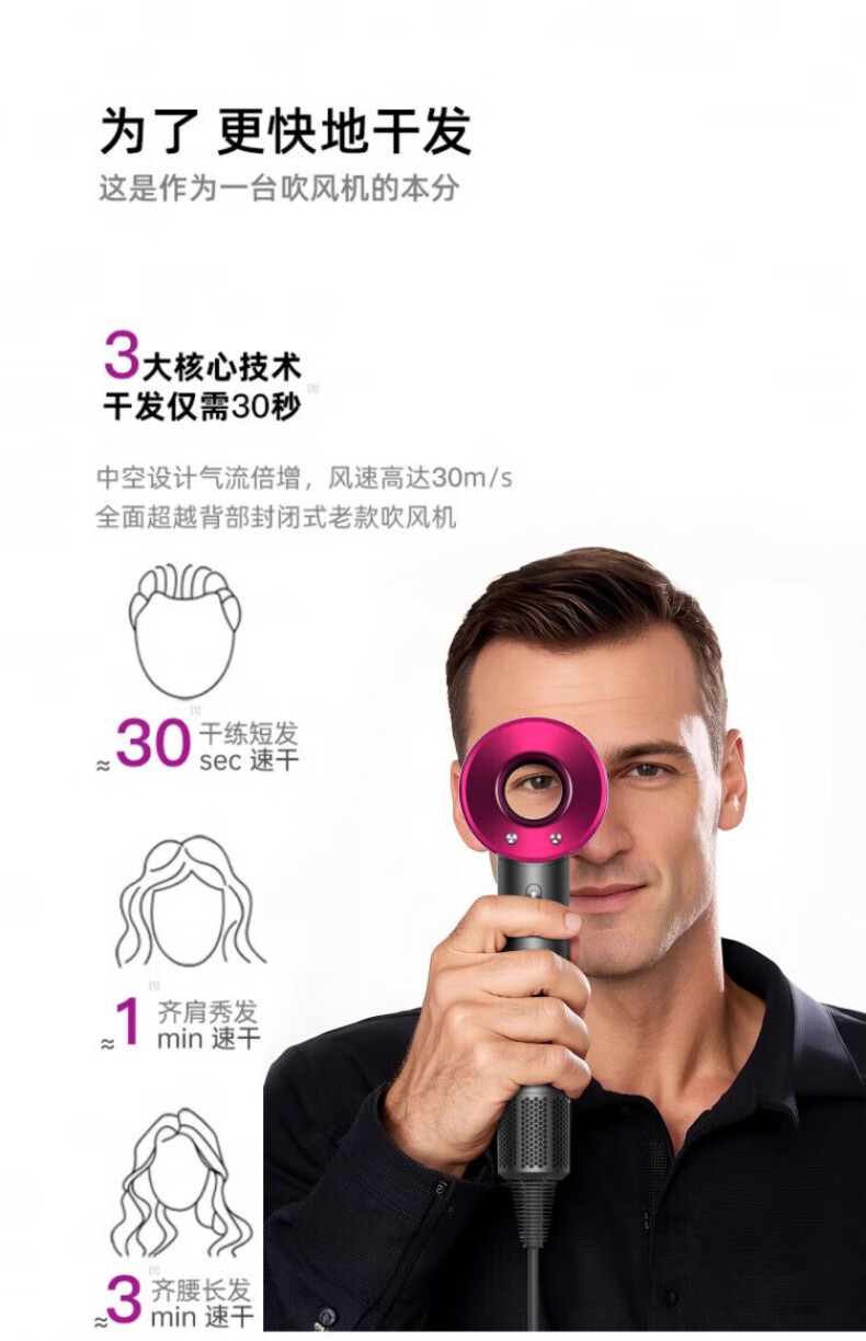 DIKTT German bladeless high-speed hair dryer for home use, silent, high-power, non-harming, constant temperature hair dryer, Huaqiangbei quick-drying baby barber shop hair salon hair dryer, rose red, single nozzle, 3 billion negative ions, 520 Valentine's Day gift