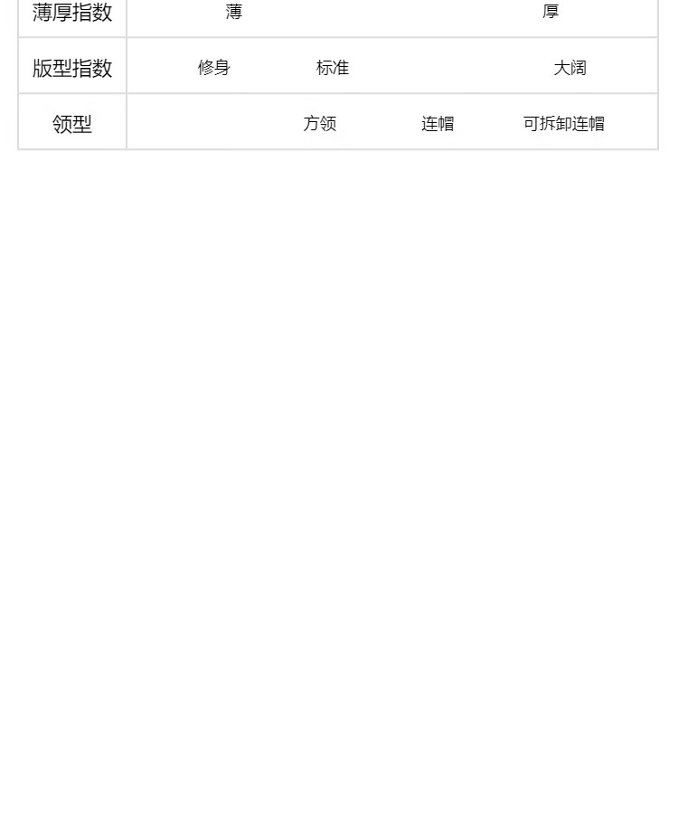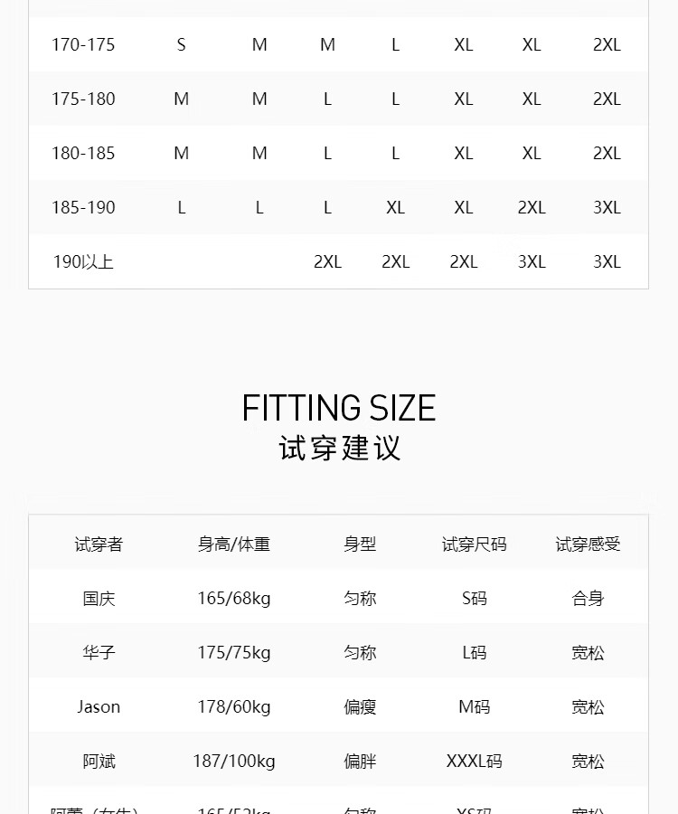 China (cm) 165 / 88-90 170 / 96-98 175 / 108-110 180 / 118-122 185 / 126-130