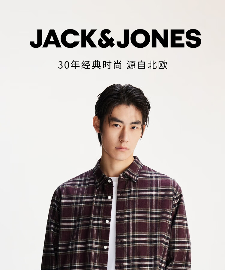 JACK&JONES men's spring new style pure cotton comfortable, soft and exquisite embroidery loose lapel long-sleeved shirt 225305006 F15 burgundy regular M