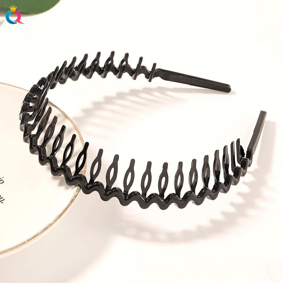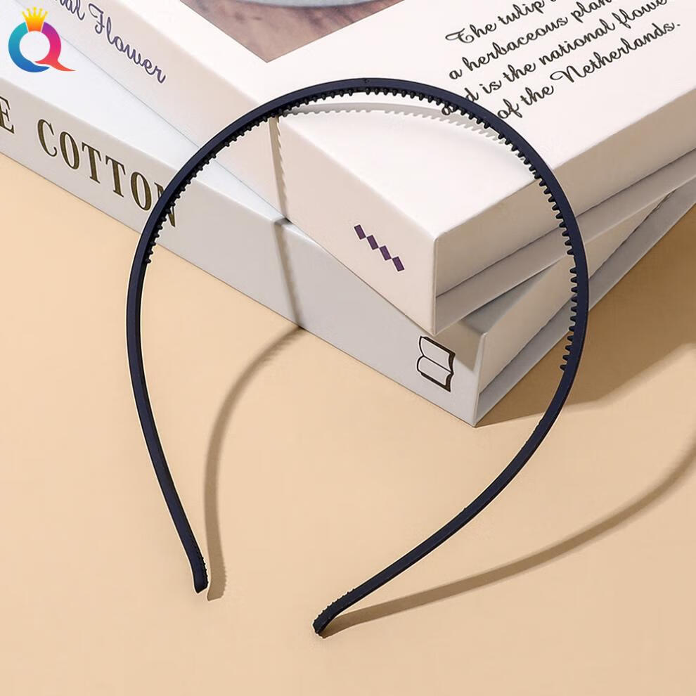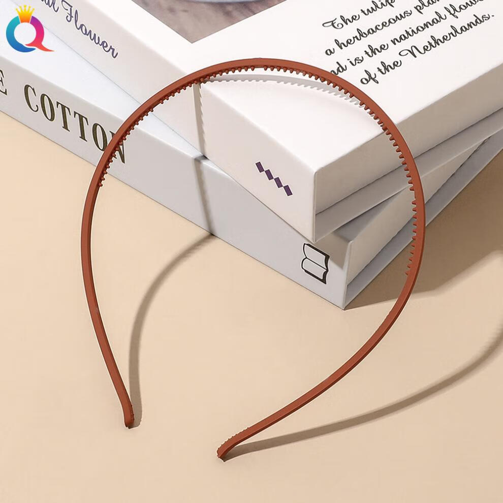 Non-slip toothed hair hoop to press bangs and broken hair, simple black brown face wash hair accessories for women, frosted small wavy hair hoop - black