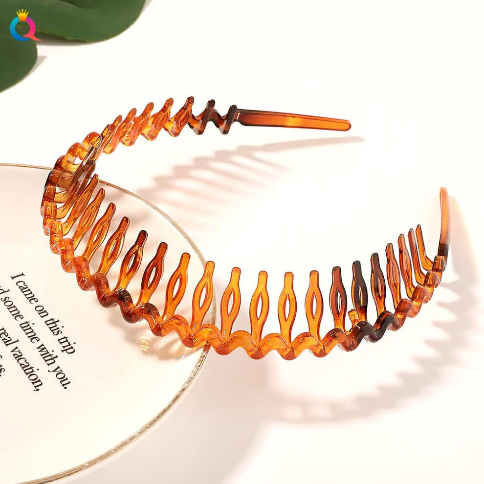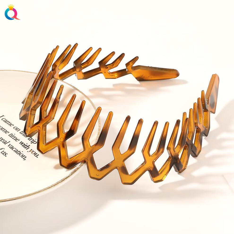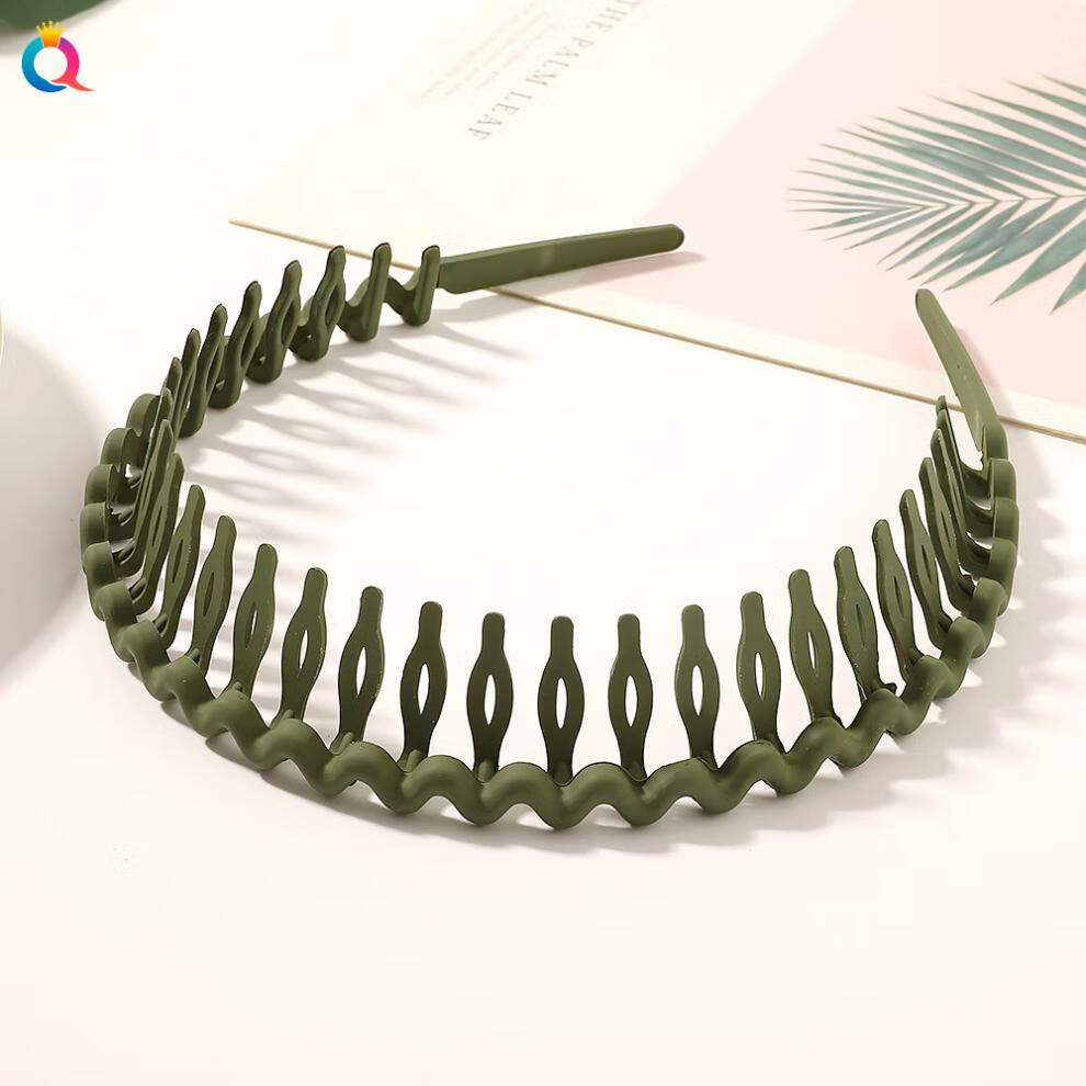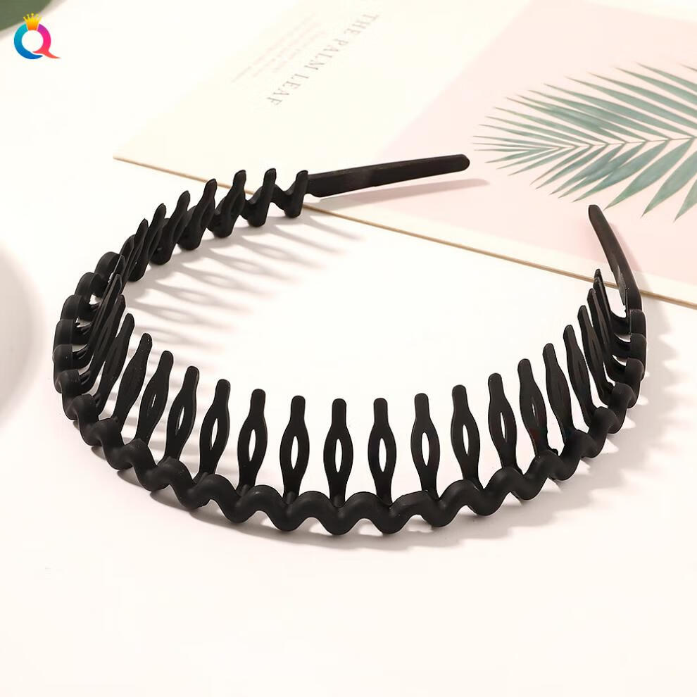 Non-slip toothed hair hoop to press bangs and broken hair, simple black brown face wash hair accessories for women, frosted small wavy hair hoop - black