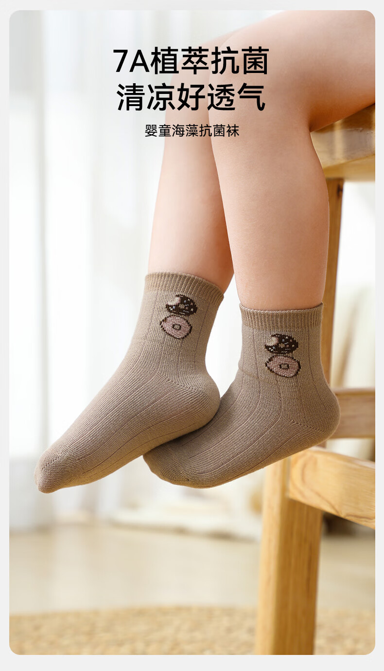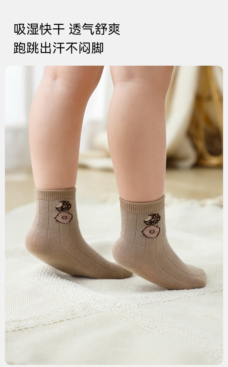 EMXEE baby normal tube socks spring and summer seaweed cooling fiber baby medium tube socks newborn baby socks donut + funny donut 6-12 months (suitable for feet 9-11cm long)