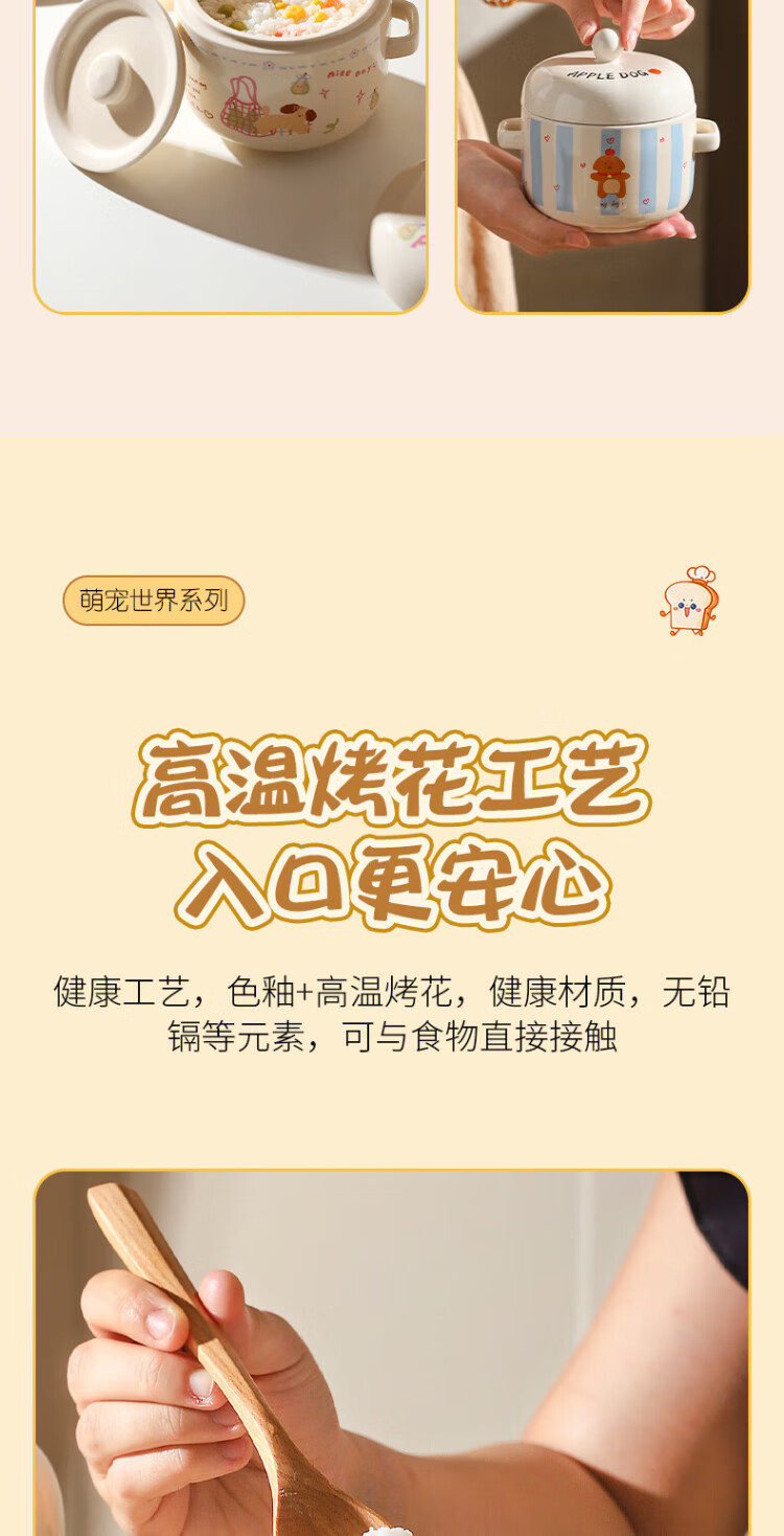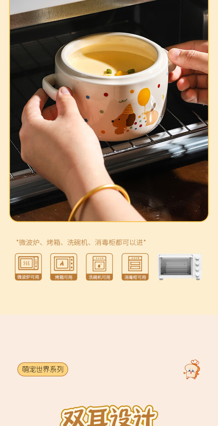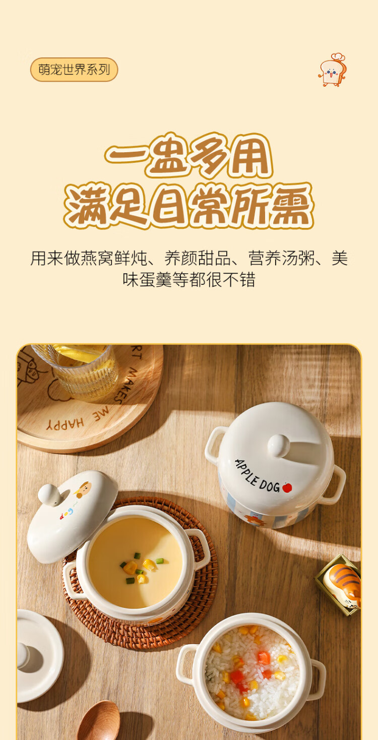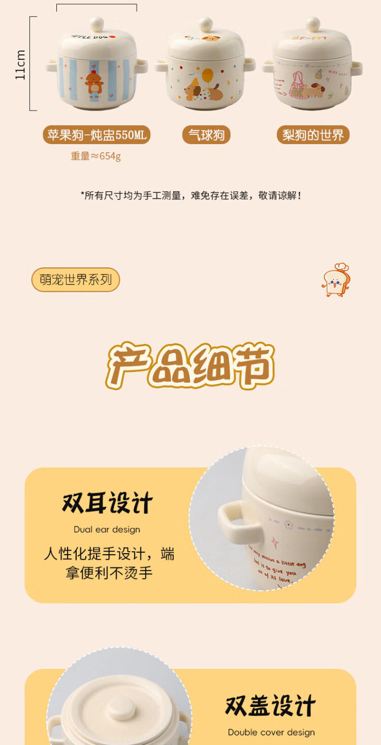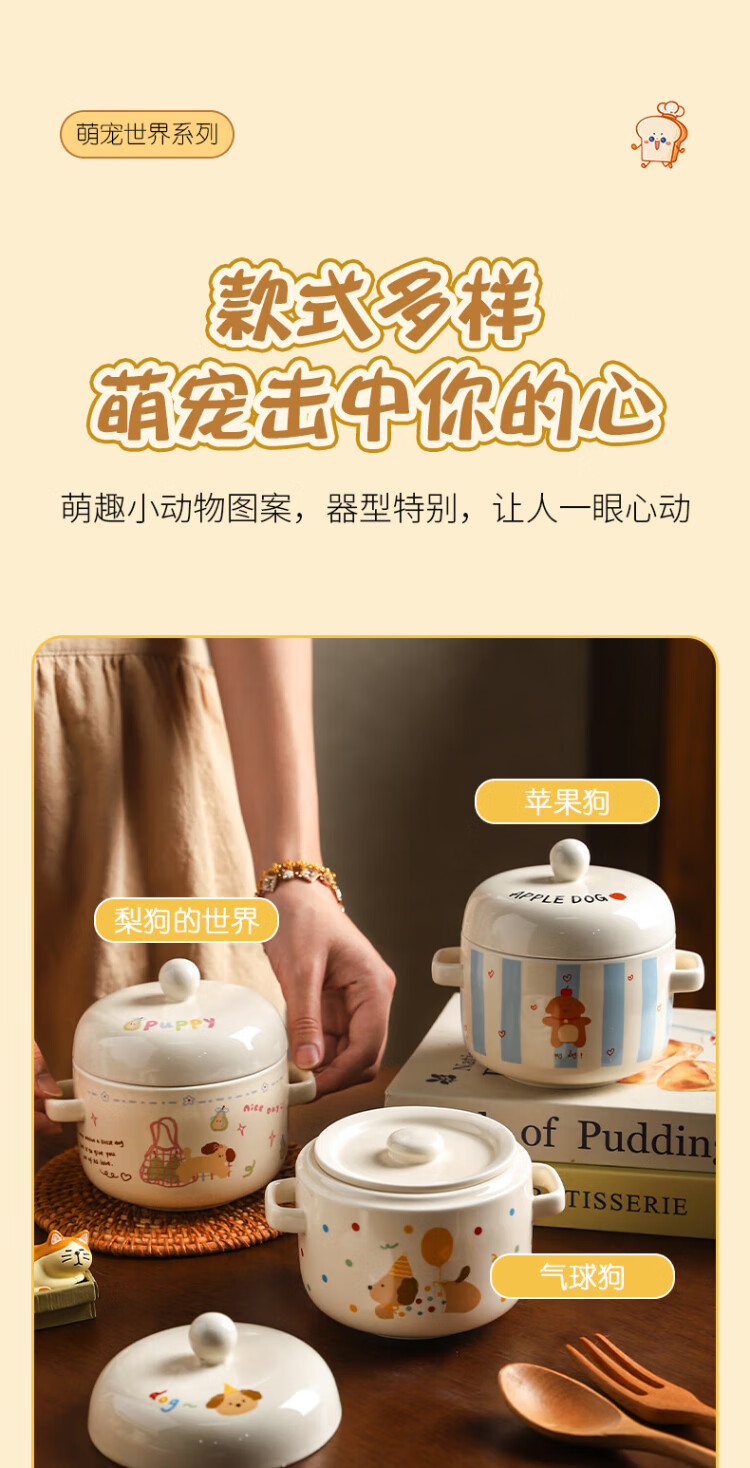 Sheli Cute Ceramic Stewing Cup Household Small Soup Cup with Cover Steamed Egg Bowl Isolated Water Stewing Steaming Cup Stewing Soup Crock Pot Stewing Bird's Nest Balloon Dog-Stewing Cup 550ML 500ml Can be steamed, baked or microwaved