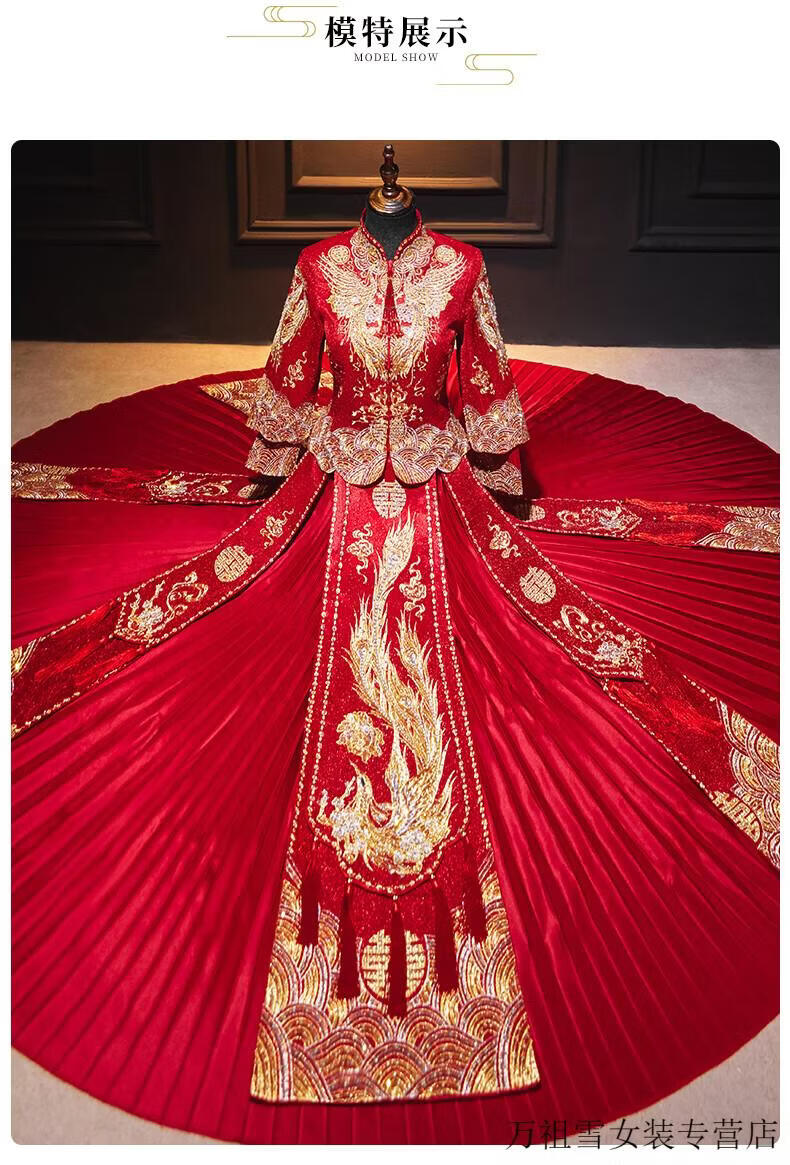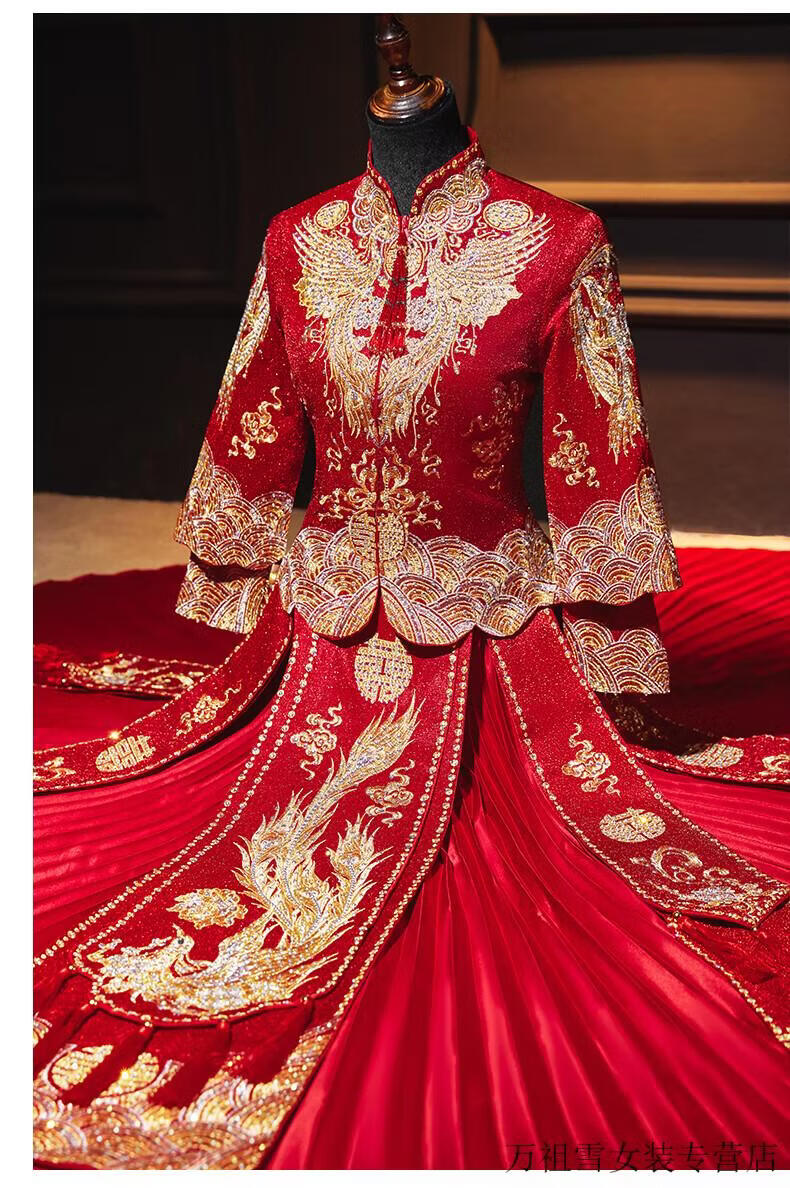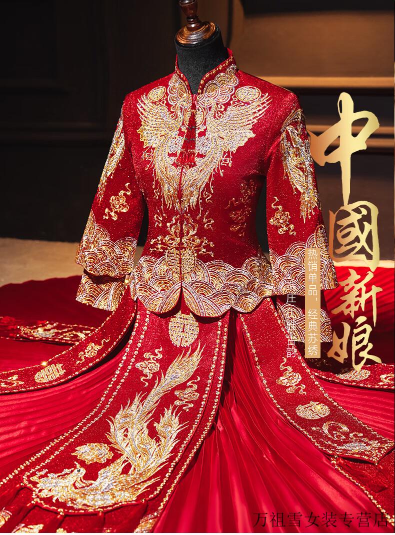 Woodpecker (TUCANO) Xiuhe Clothes Bridal 2026 New Wedding Clothes Dragon and Phoenix Gown Wedding Clothes Chinese Toast Clothing Small Kimono Summer Shawl Dance Phoenix Embroidery Style + Red Luan Headdress 3XL