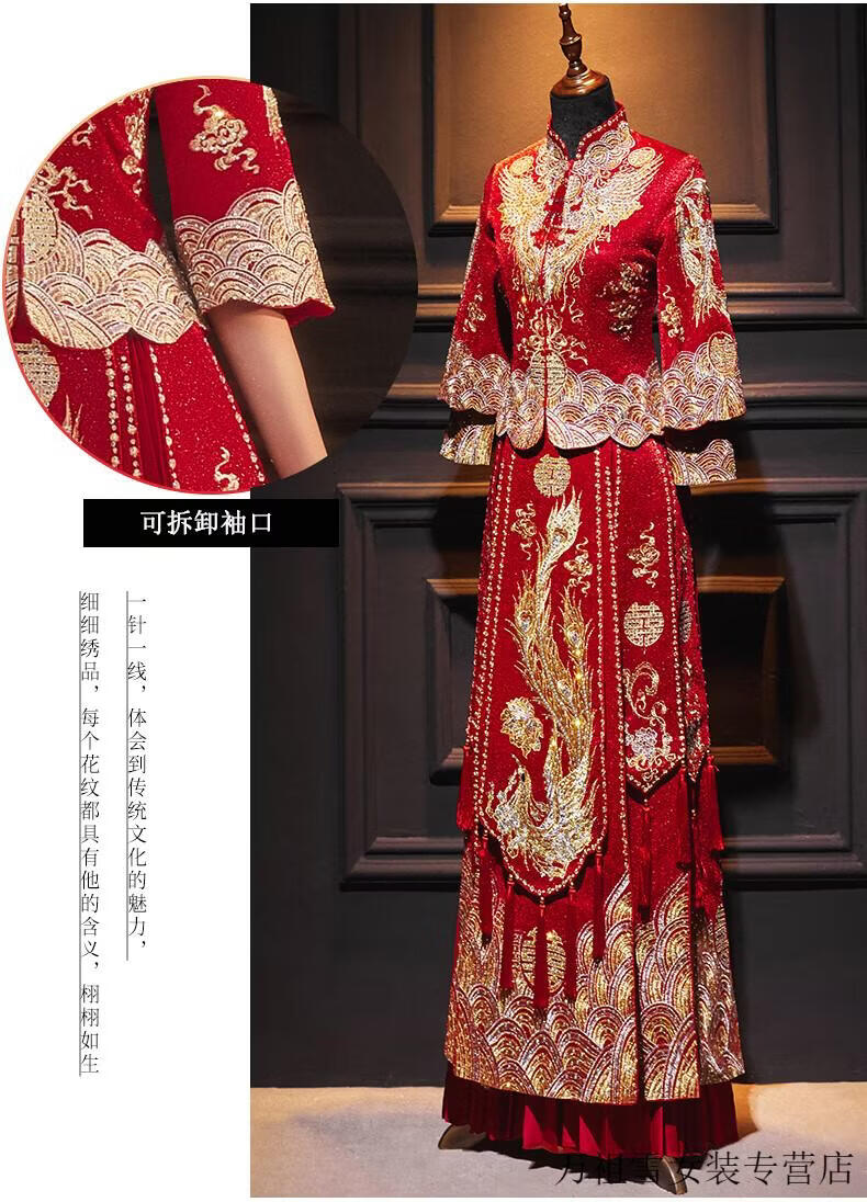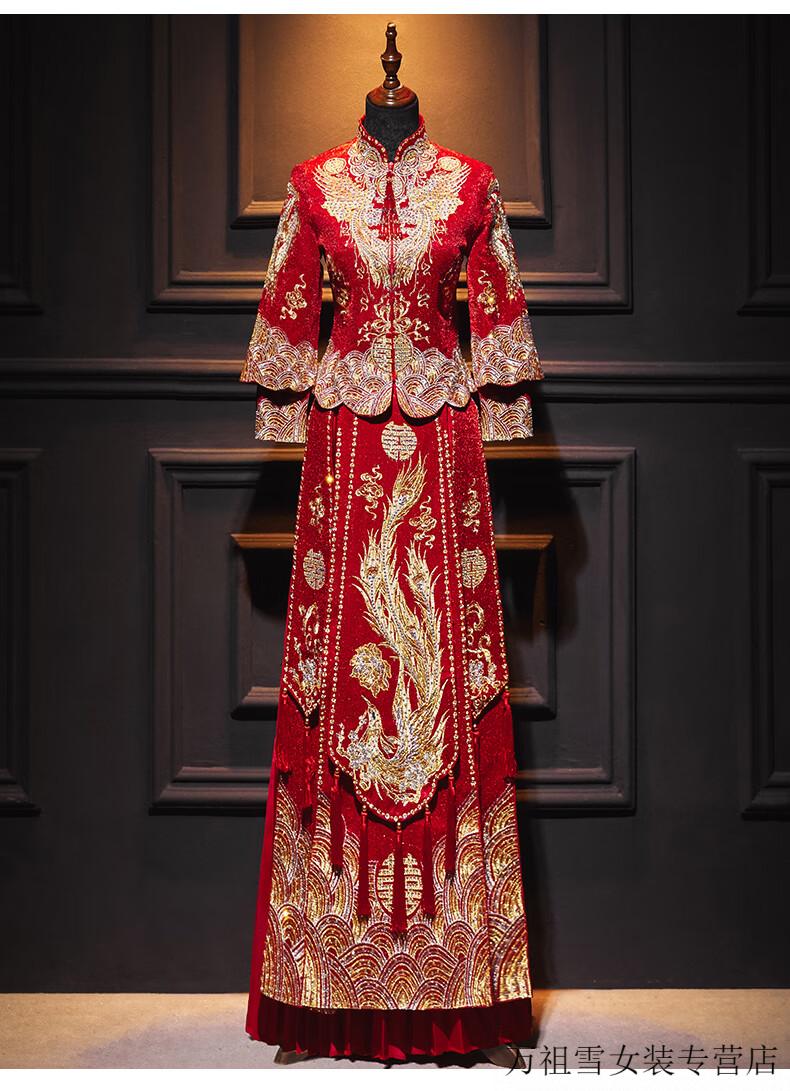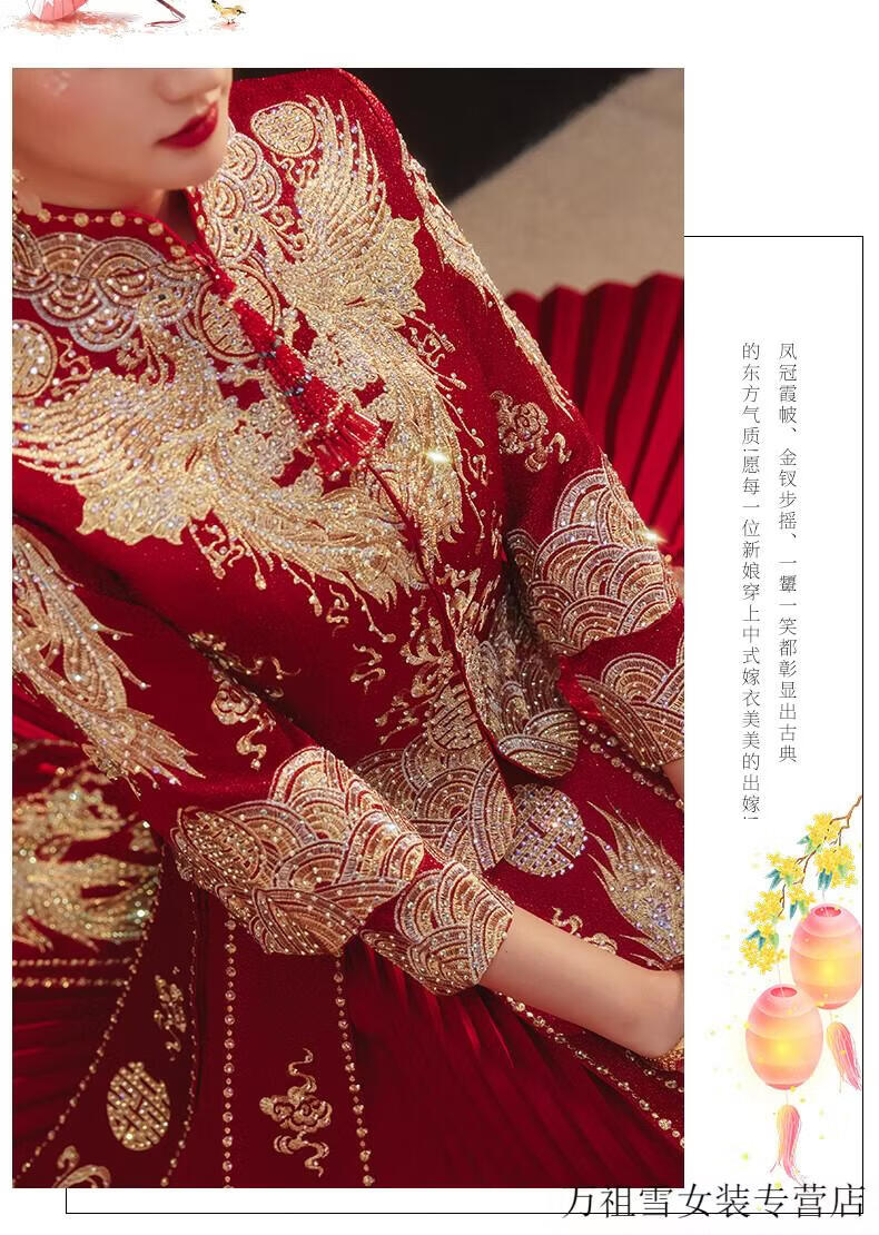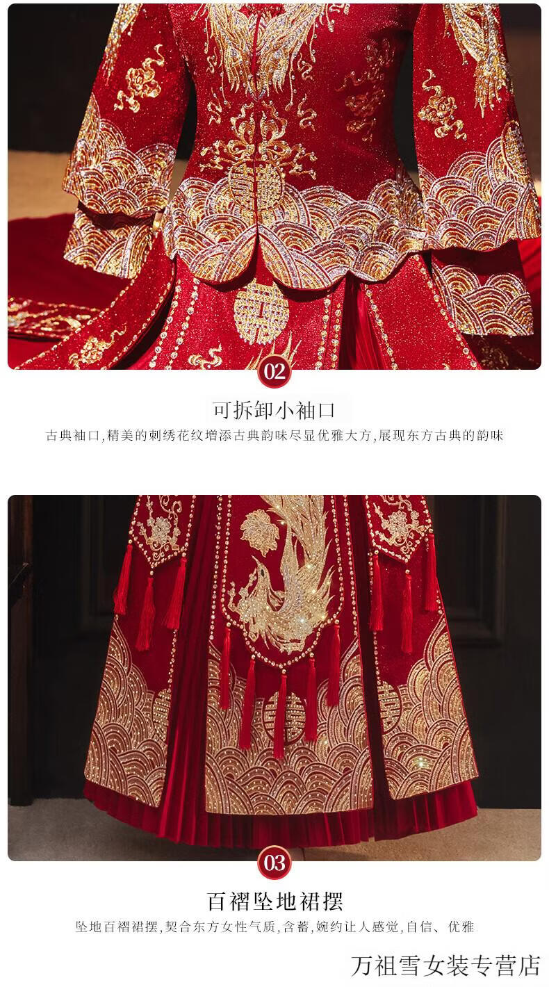 Woodpecker (TUCANO) Xiuhe Clothes Bridal 2026 New Wedding Clothes Dragon and Phoenix Gown Wedding Clothes Chinese Toast Clothing Small Kimono Summer Shawl Dance Phoenix Embroidery Style + Red Luan Headdress 3XL