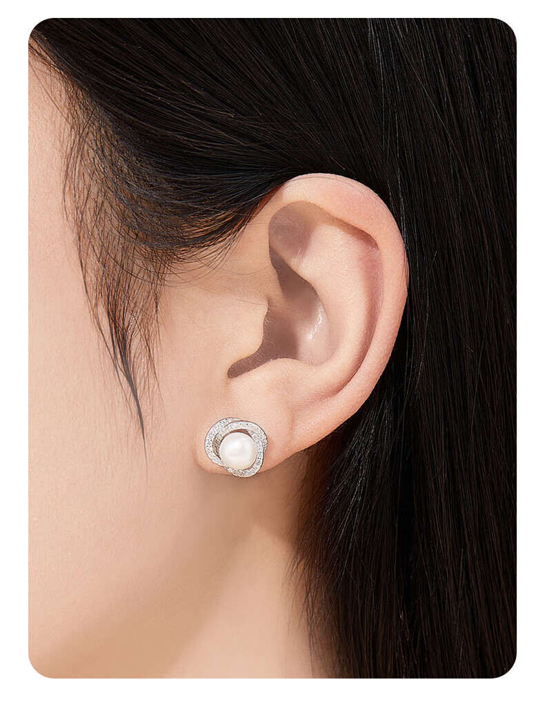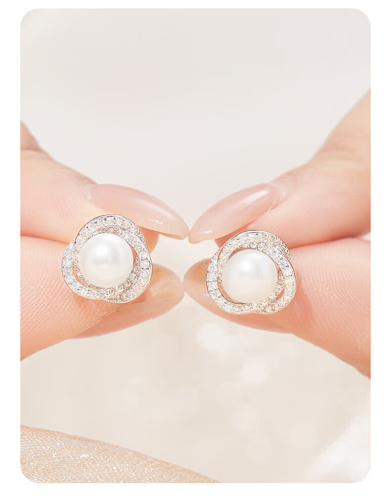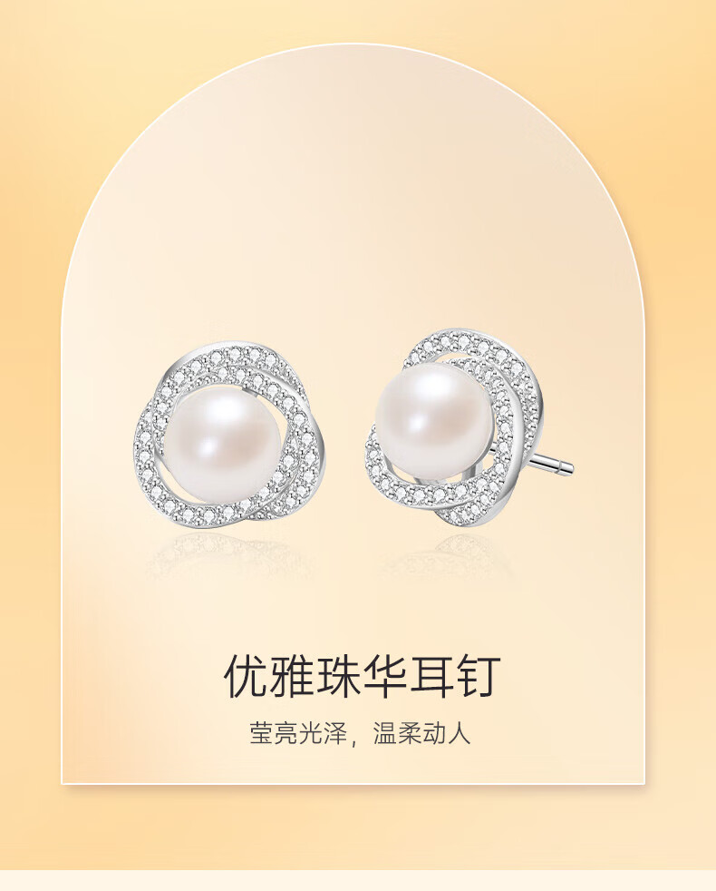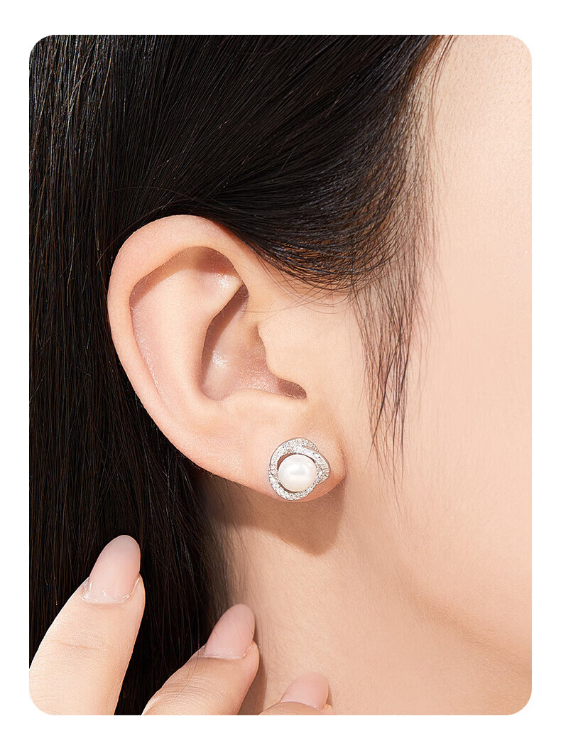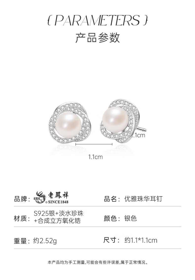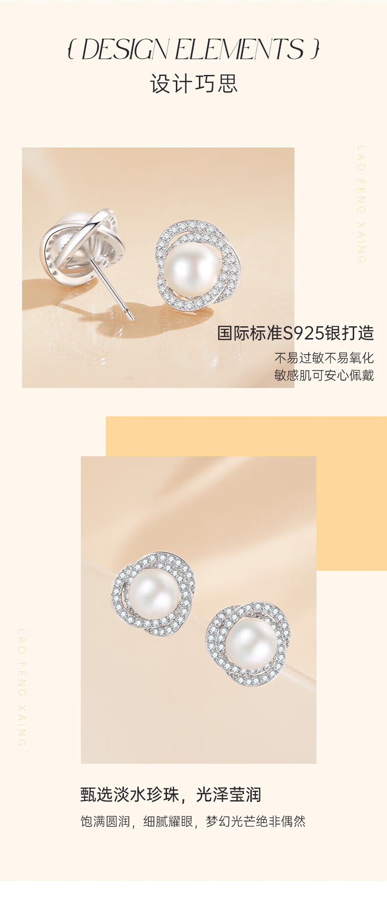 Lao Fengxiang Light Luxury Fashion Earrings Women's Pearl Silver Earrings 2025 New Earrings Birthday Anniversary Gifts for Girlfriend and Wife Bright and Flawless Pearl Earrings
