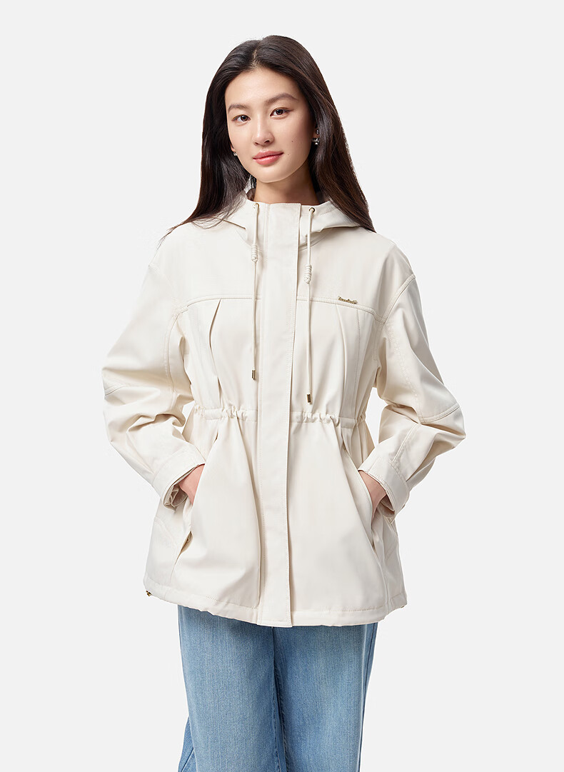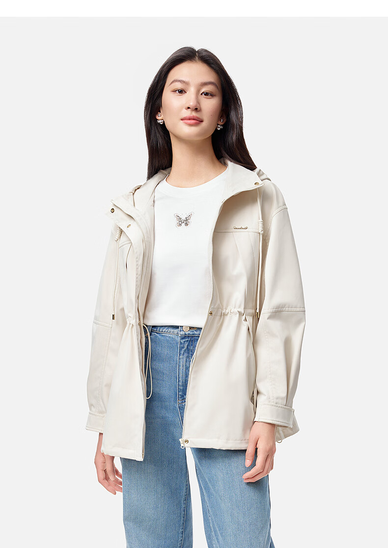 Kelaidier 2025 new autumn short coat women's waist thin medium and long casual windbreaker light orange yellow L
