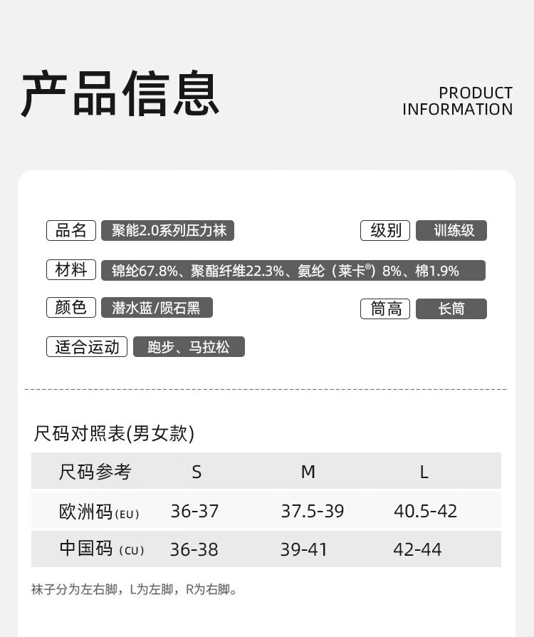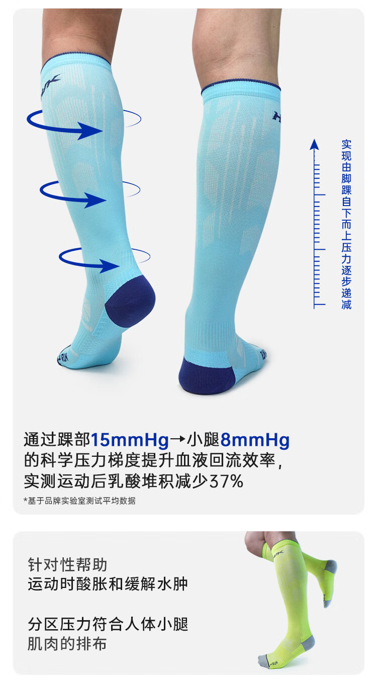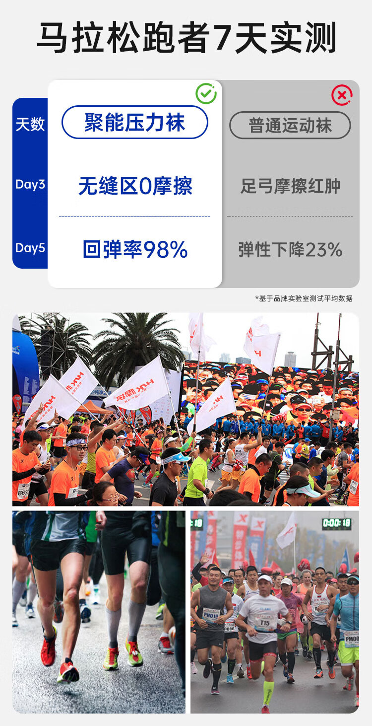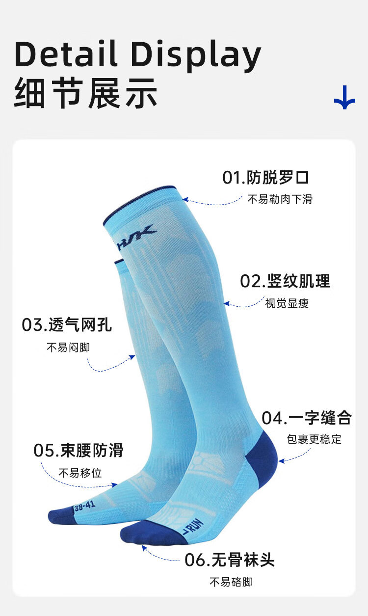 HNK professional marathon long running socks light pressure calf protection compression sports socks wear-resistant outdoor socks energy series black L size (42-44)
