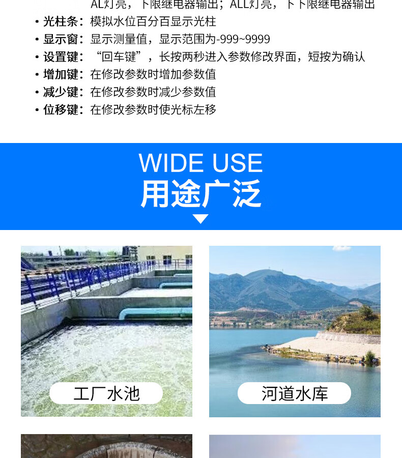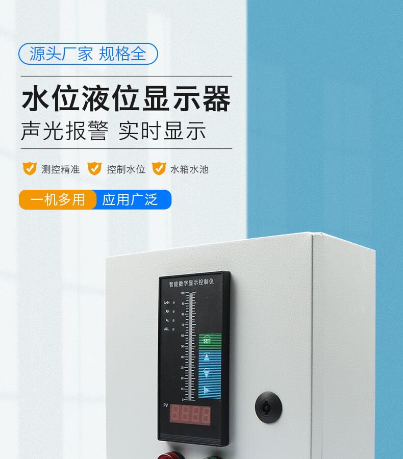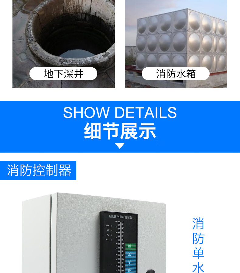 Liquid level water level controller fire water tank pool electronic alarm display liquid level meter sensor transmitter 5KW water pump control box + 5 meter probe
