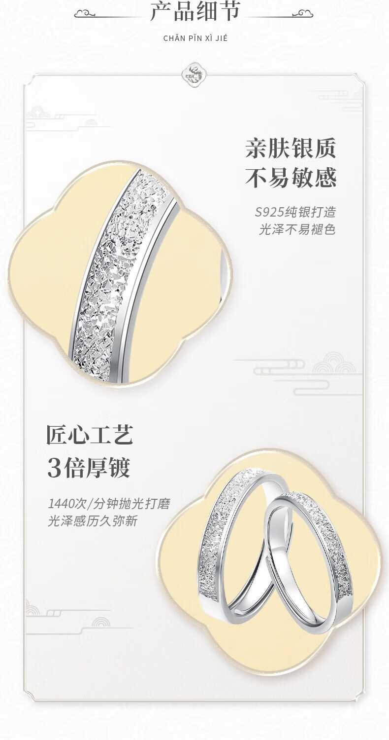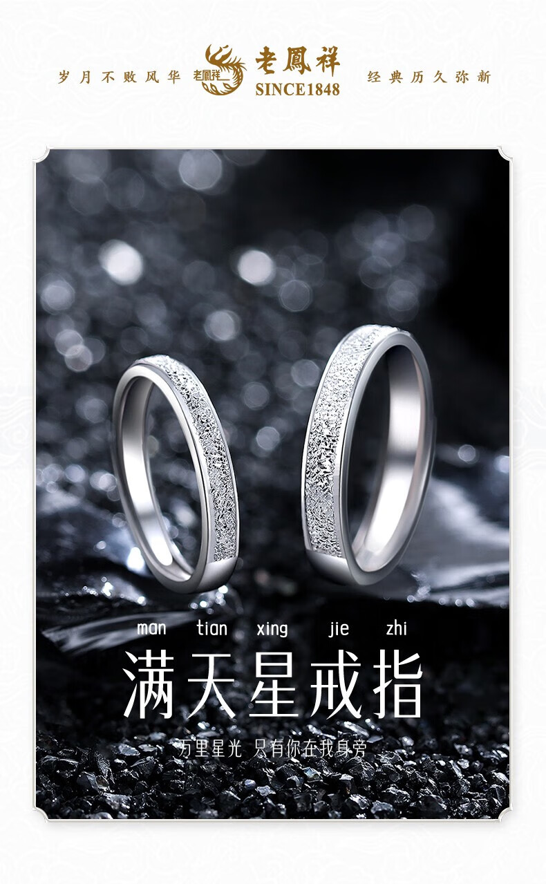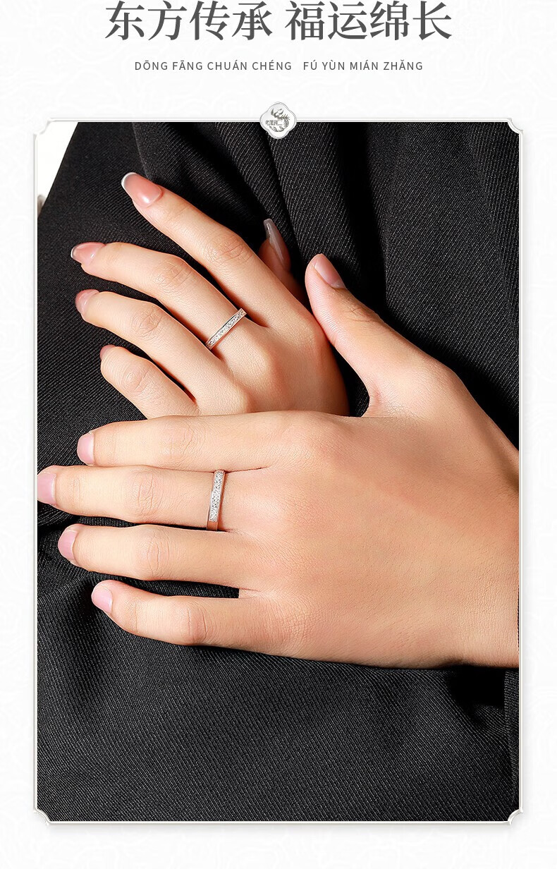 Lao Fengxiang's Gypsophila Couple Rings Sterling Silver Pair of Men's and Women's Rings Light Luxury Niche Chinese Valentine's Day Gift for Girlfriends Premium Gift Box Packaging Do not take a single photo without the product