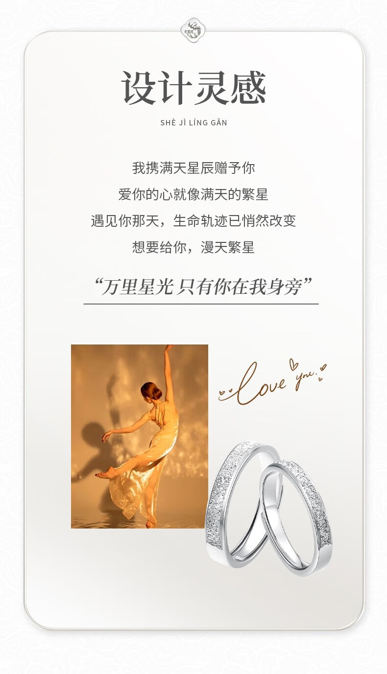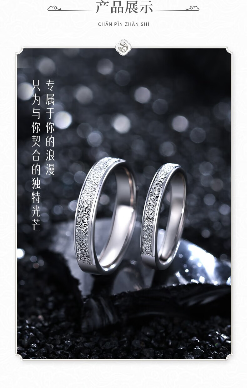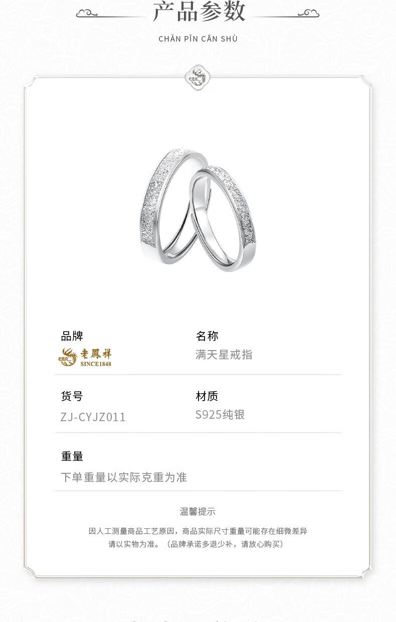 Lao Fengxiang's Gypsophila Couple Rings Sterling Silver Pair of Men's and Women's Rings Light Luxury Niche Chinese Valentine's Day Gift for Girlfriends Premium Gift Box Packaging Do not take a single photo without the product