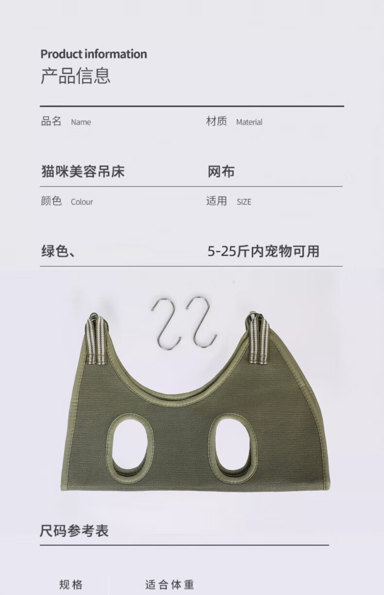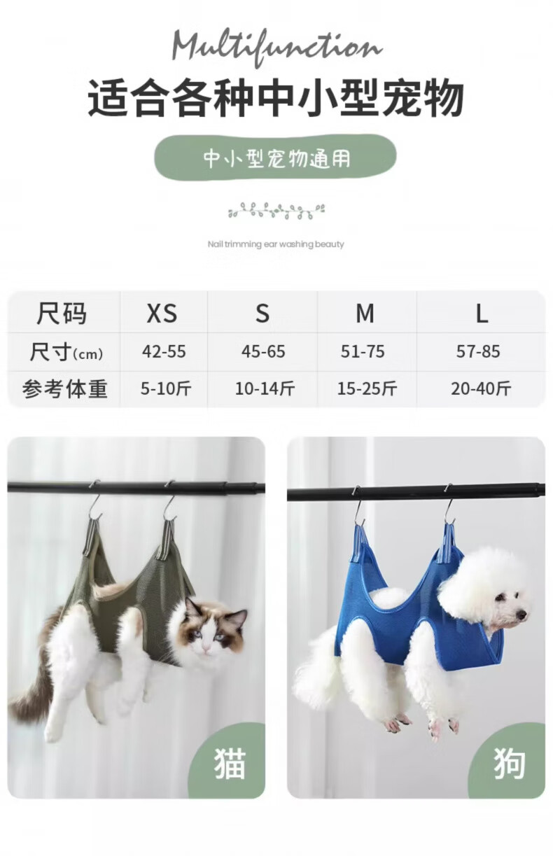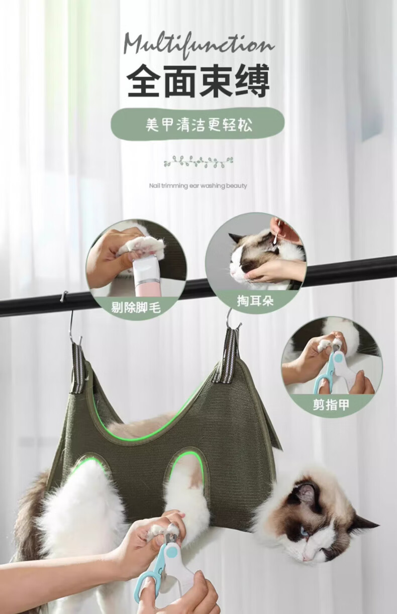 Bei Chuzhong cat nail clipper and anti-scratch artifact, cat washing bag, cat control, anti-bite fixed bag, pet grooming hammock, cat and dog supplies, suitable for 5-10 Jin Jin equal to 0.5 kg, olive green XS model, universal for cats and dogs, multi-functional, reinforced and anti-breakaway