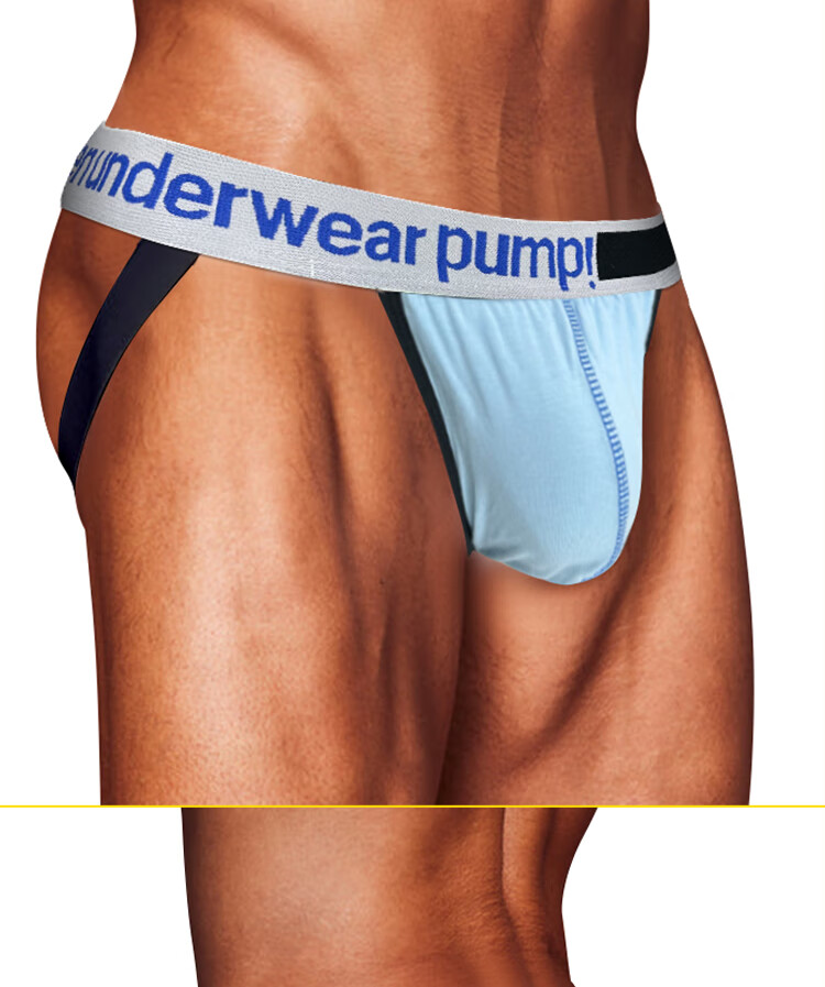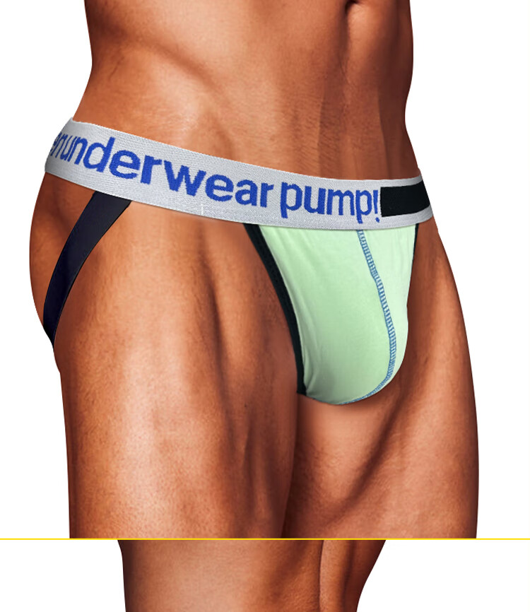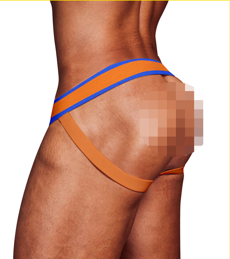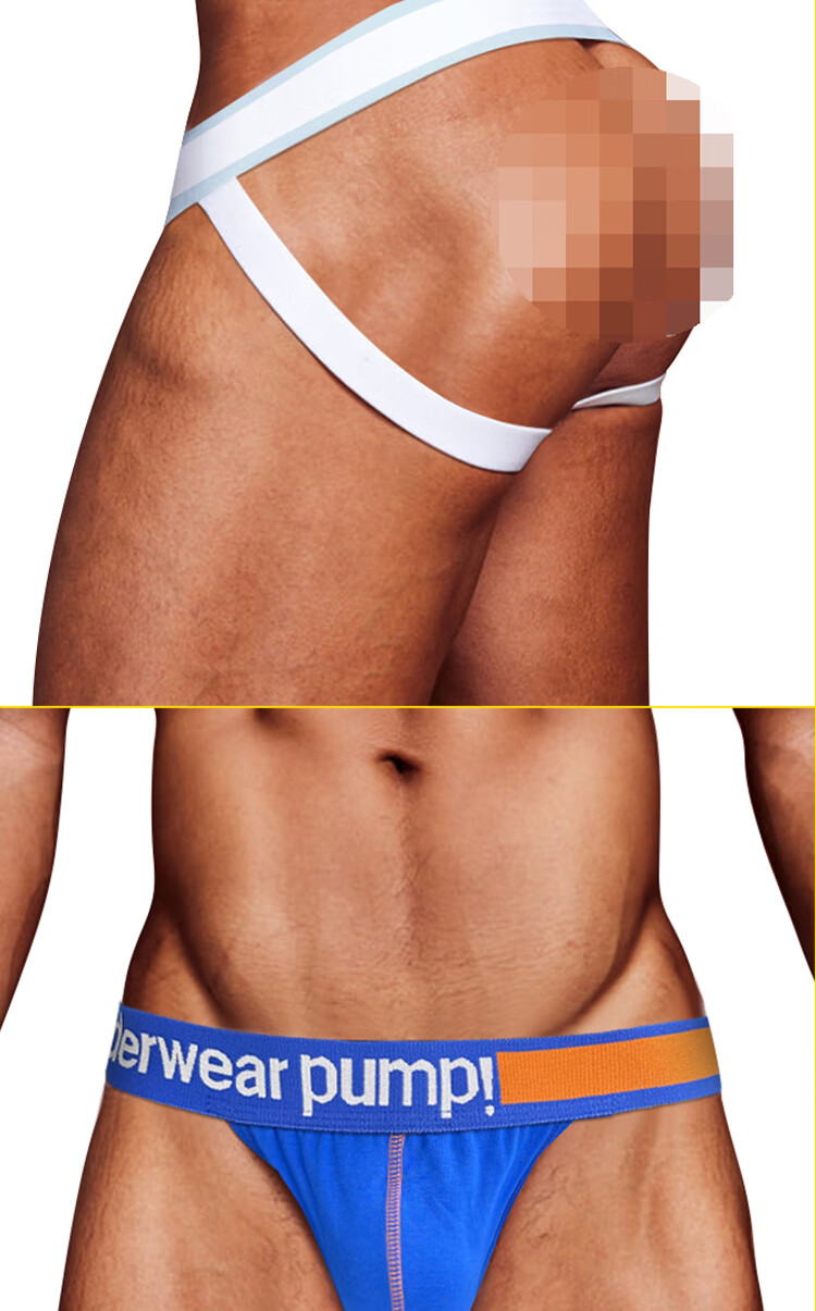 MEN UNDERWEAR PUMP! Men's solid color hollow double-butt underwear, pure cotton mesh thong, comfortable, breathable, sports quick-drying solid color shorts, 2 pairs (blue orange + white) L