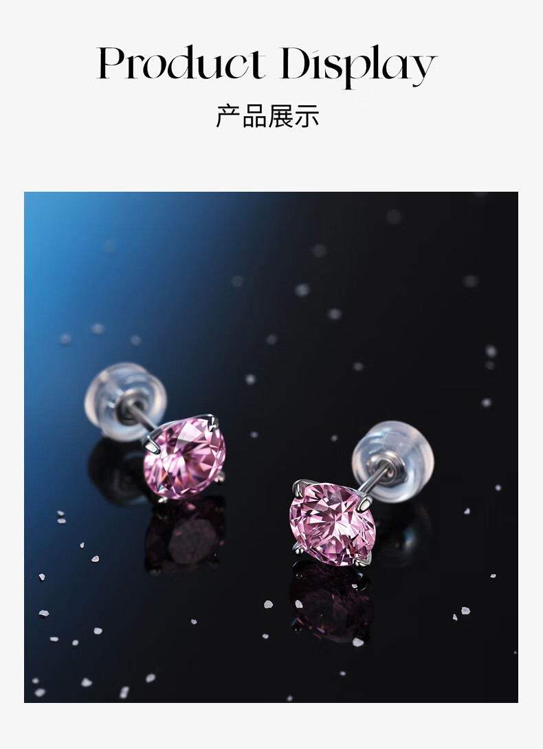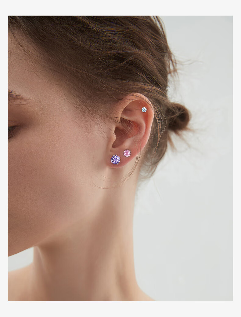 TFY Colorful Moissanite Earrings for Women S925 Sterling Silver Flashing Diamond Earrings Ear Bone Studs to Show Your Temperament as a Gift for Your Girlfriend Pink Moissanite 30 Minutes 4mm Pair