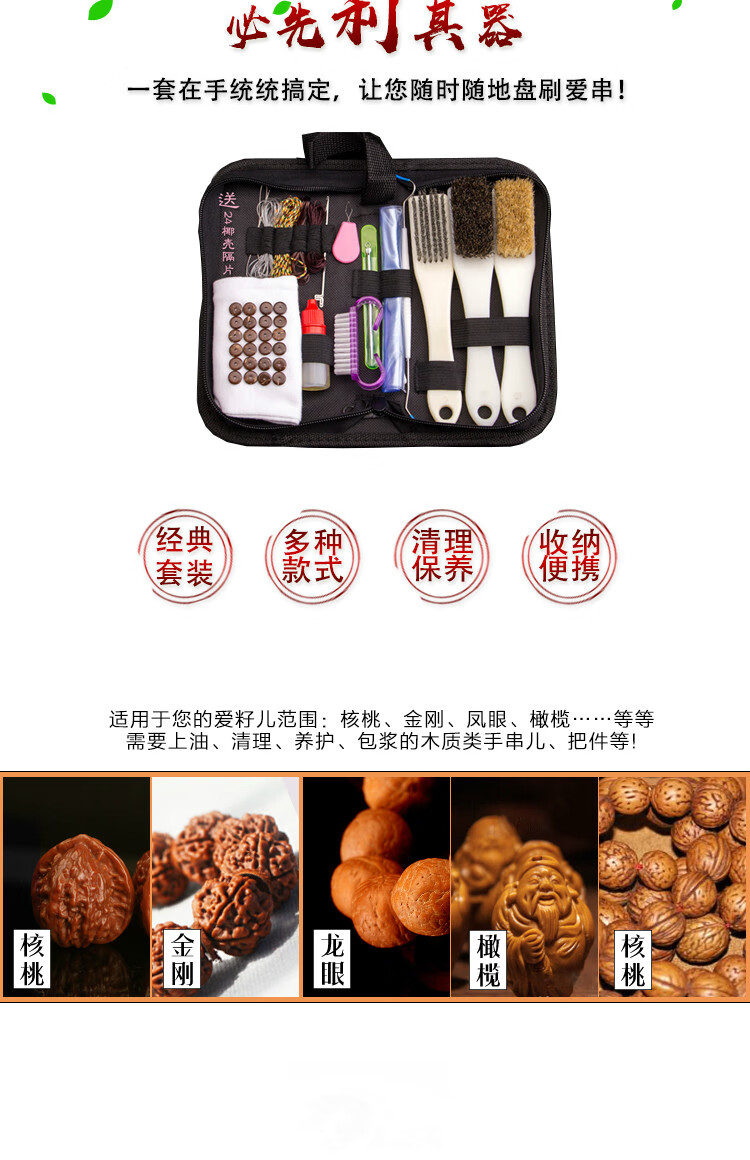 Tongru Biwen Brush Tool Set Large Rudraksha Olive Walnut Wire Brush Maintenance Cleaning Hard Bristle Set Fifteen Tool Kit Set Entry Level