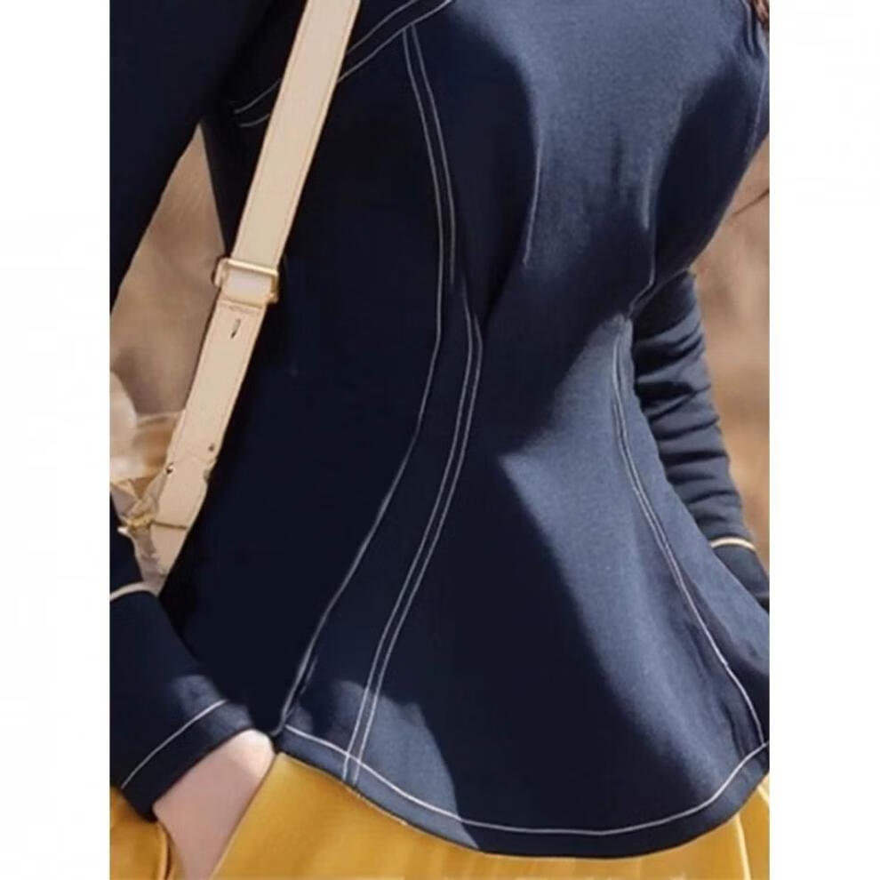 Hengyuanxiang Spring and Autumn New New Chinese Style National Style Unique and Chic Denim Stand Collar Disc Button Waist Slim Shirt Women's Top Blue XL 115-125Jin Jin is equal to 0.5 kg