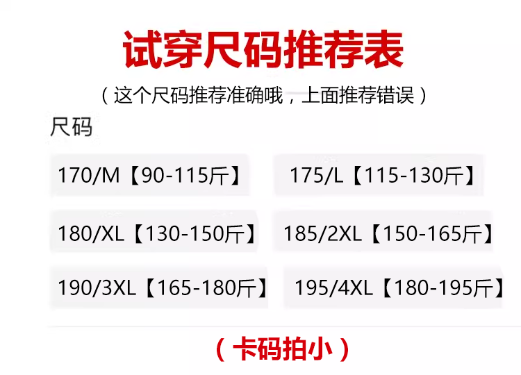 China (cm) 165 / 88-90 170 / 96-98 175 / 108-110 180 / 118-122 185 / 126-130